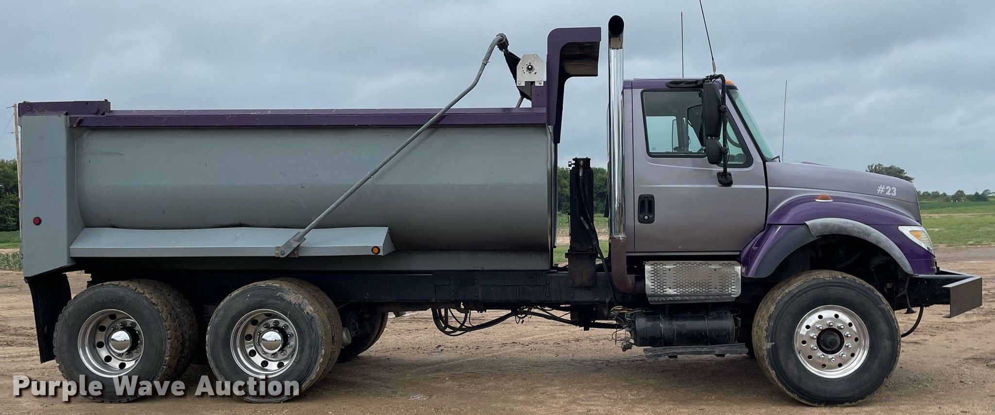 Purple Wave is selling a used Construction Dump Truck in Kansas. This item is a 2007 International 7600 dump truck with the following: Miles: 132,500 on odometer, Hours: 13,029 on meter, VIN: 1HTWYSBT47J470268