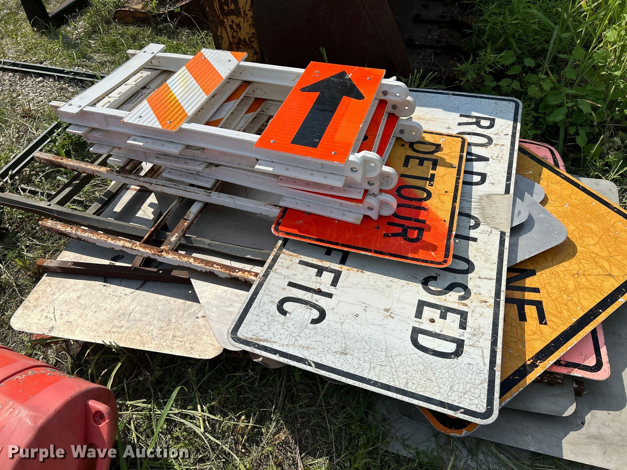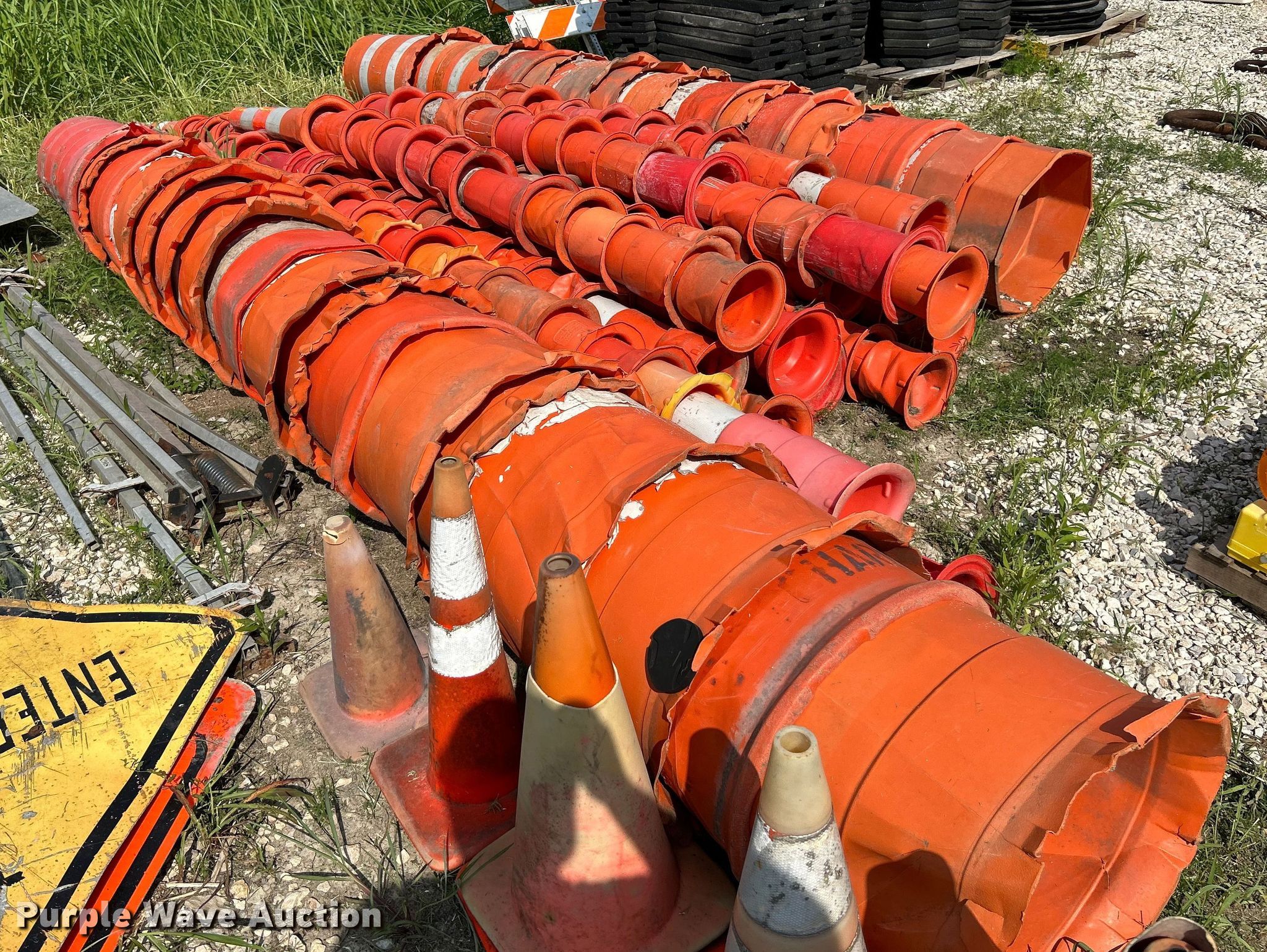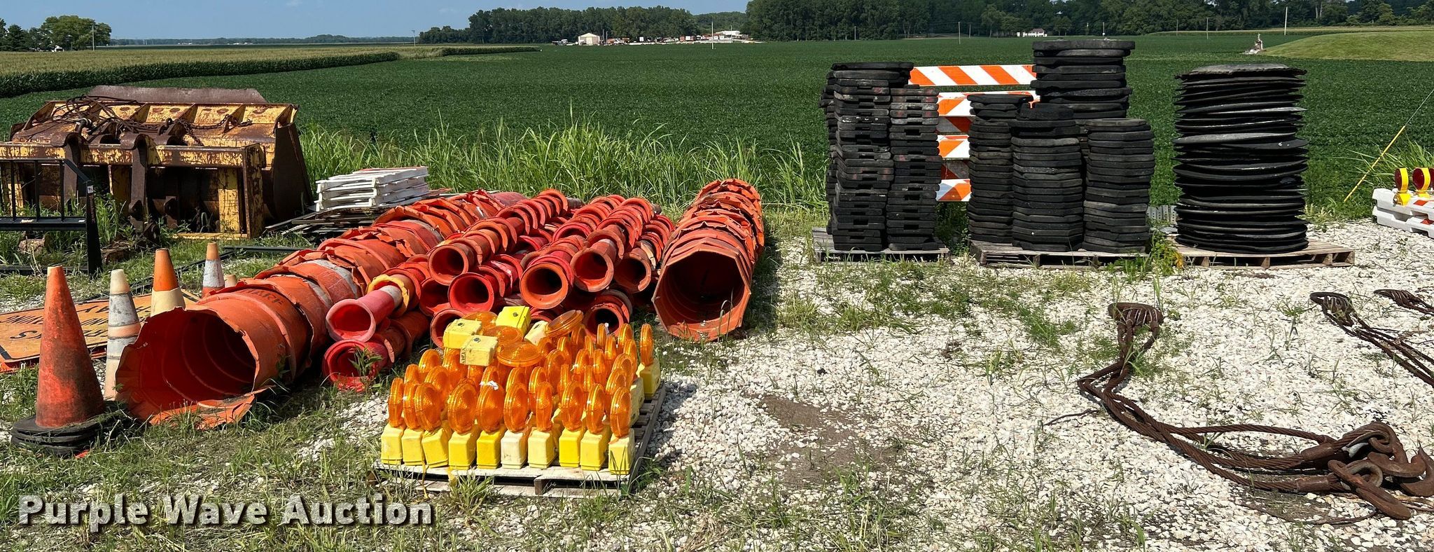 Purple Wave is selling a used Road Safety Equip. in Missouri. This item is a Road safety equipment with the following: Cones, Cone bases, Barricades, Lights, Signs