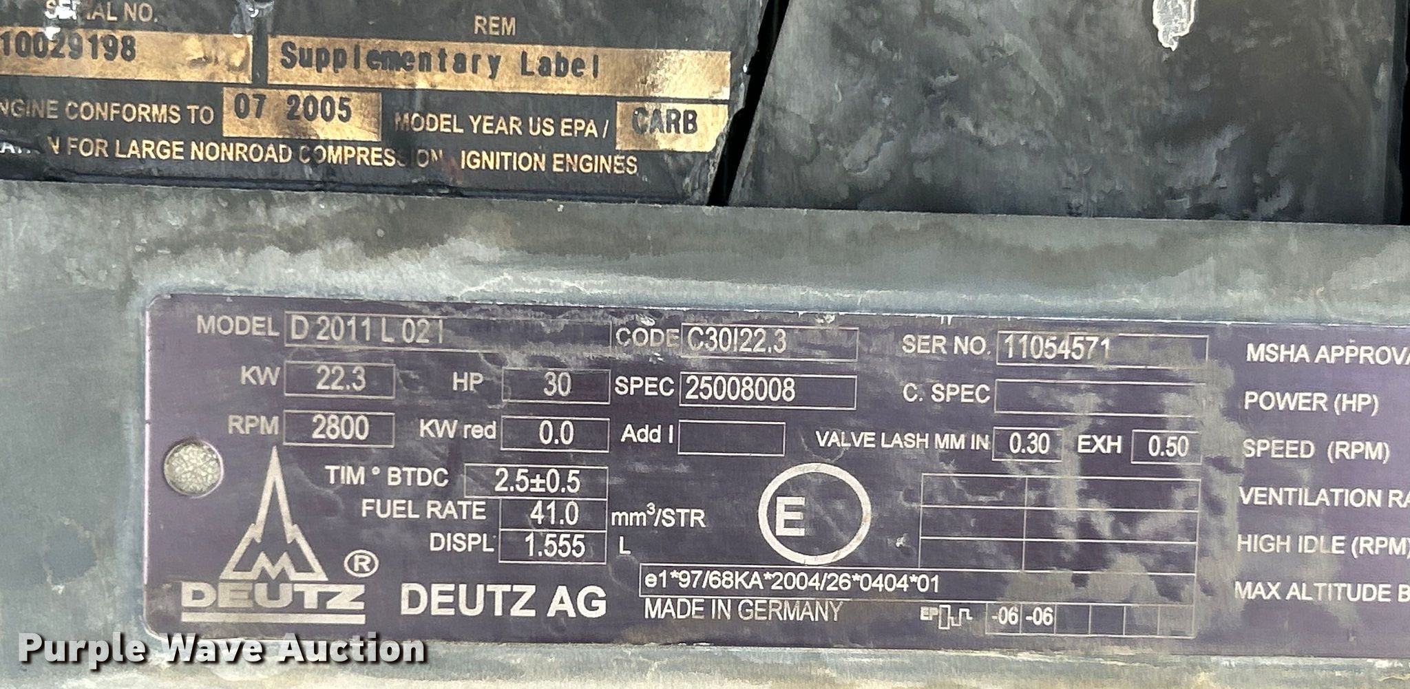 2005 Haulotte Compact 2668RT scissor lift. Hours: 3,362 on meter, Serial: CD107688. Engine Deutz F2L2011, Displacement: 1.555L, Cylinders: 2, Fuel type: Diesel, HP: 27. Chassis Four wheel drive. Features Maximum lift capacity: 1,245 lbs, Maximum reach length: 32', Maximum lift height: 27', Hydraulic outriggers, Platform: 96" L x 57" W, AC power outlet, Controls: Platform, Ground, Platform extensions: Manual. Tires Tire size: 26x12-16.5. Old Monroe Lumber Co. 1380 Meier Rd. Old Monroe, MO 63369