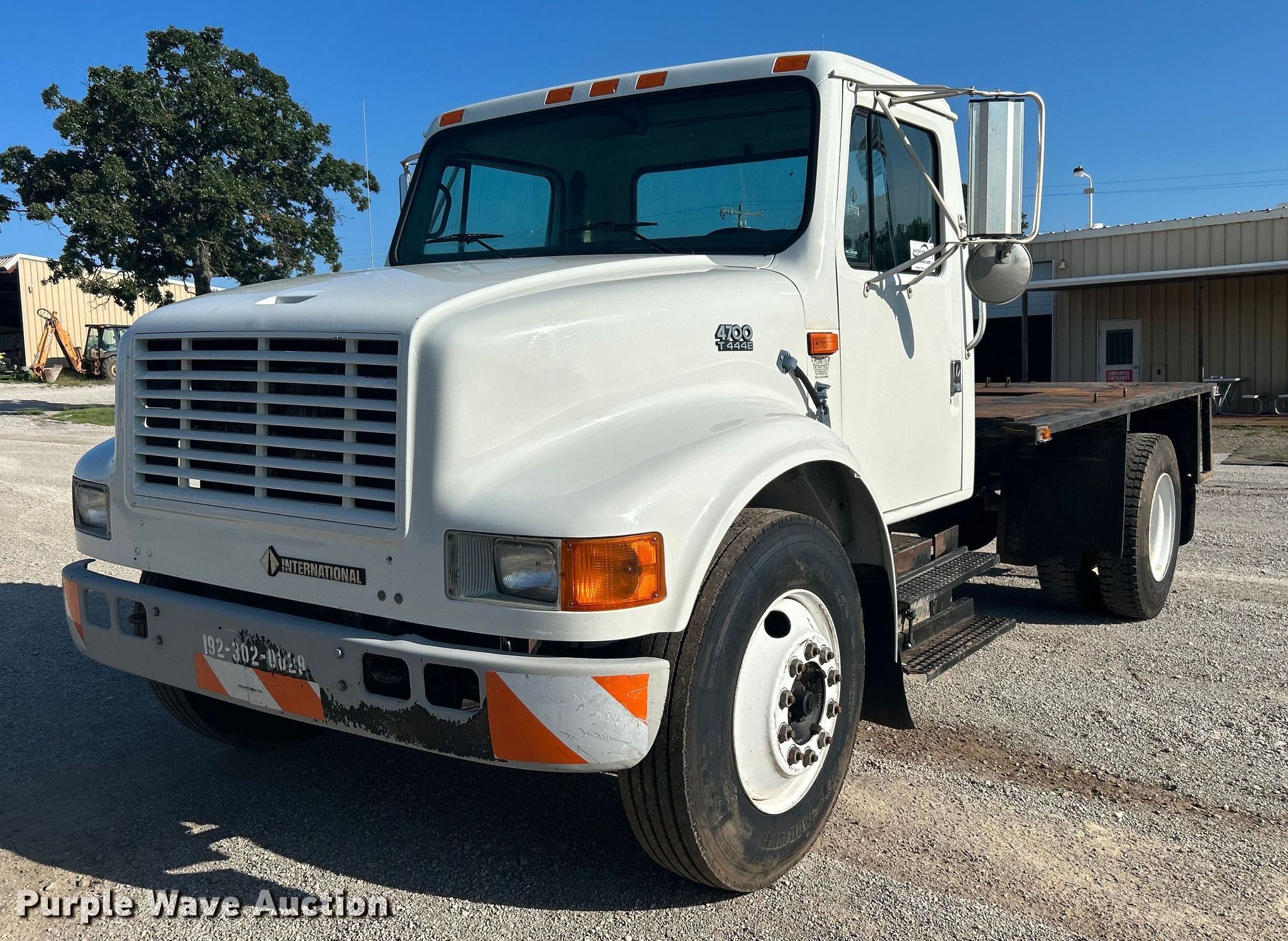 This 2000 International 4700 flatbed truck will sell to the highest bidder regardless of price.