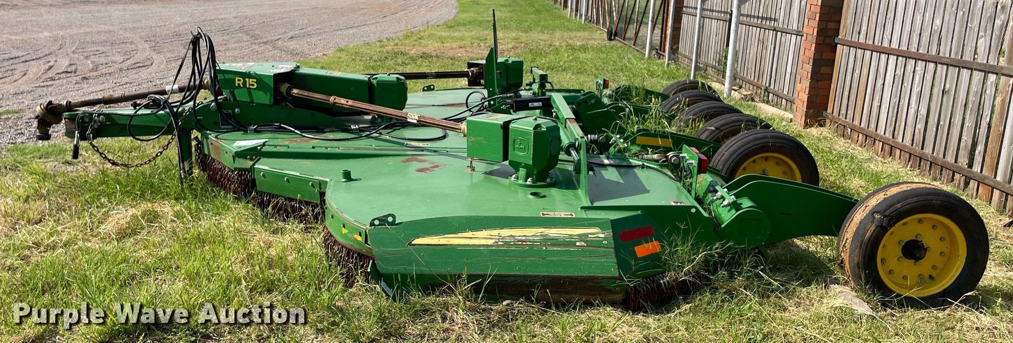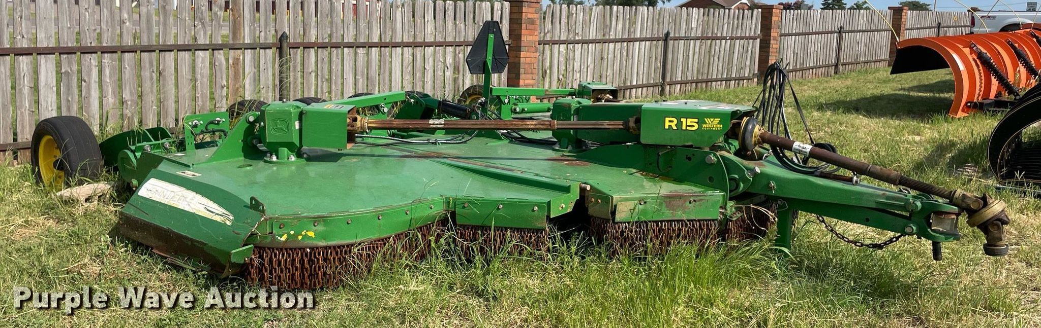 Purple Wave is selling a used Mower, Cutter, Shredder in Oklahoma. This item is a John Deere R15 batwing rotary mower with the following: Serial: 1P00R15GKJC000009