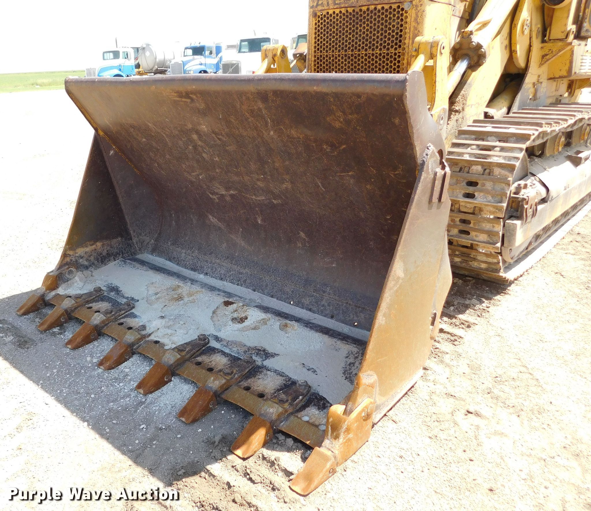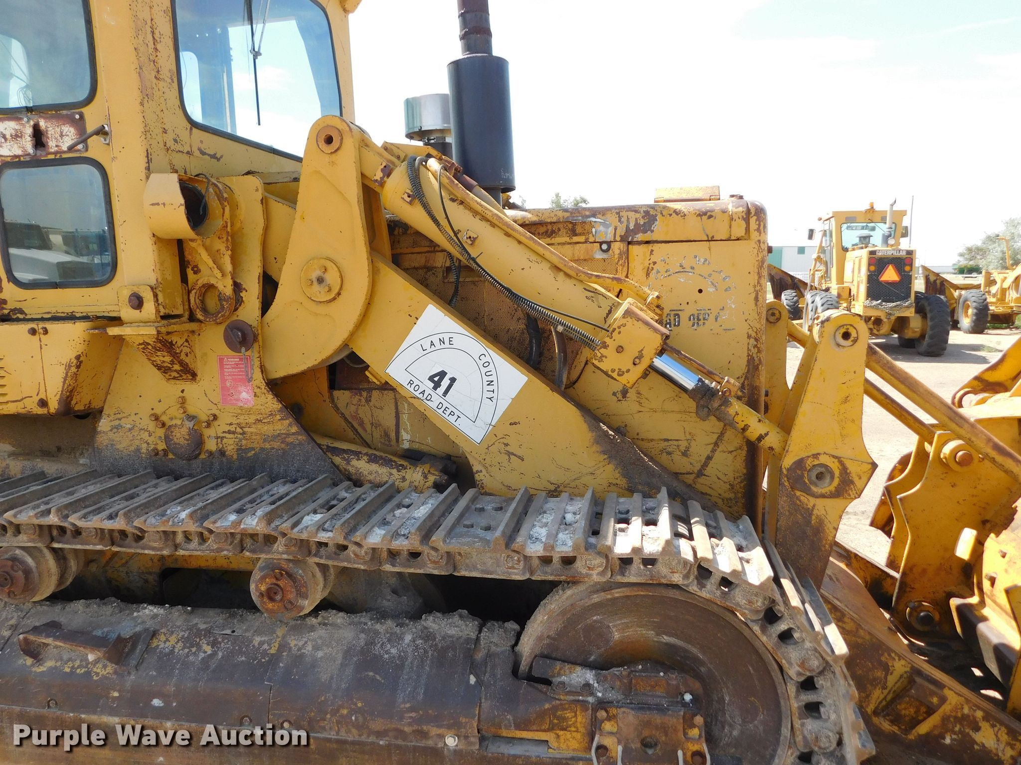 1975 Caterpillar 977L track loader. Hours: 5,029 on meter, Serial: 70J3090, Unit #: 41. Engine Caterpillar 3306, Serial: 44V6489, Cylinders: 6, Fuel type: Diesel. Transmission Powershift, 3F - 3R. Operators station EROPS, Bucket controls: Two-lever. Features Bucket Width: 96", Teeth: 8, Rear ripper Pockets: 5, Shanks: 2. Tracks Width: 18", Grouser pads: Triple. Lane County Public Works. 755 7th St. Dighton, KS 67839