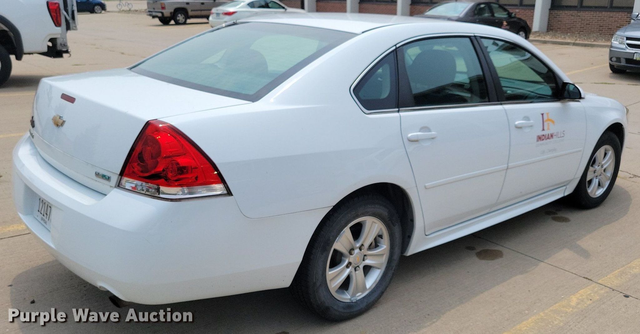 2013 Chevrolet Impala. Miles: 140,094 on odometer, VIN: 2G1WF5E30D1221576. Engine Displacement: 3.6L V6 DOHC, Cylinders: 6, Fuel type: Gas. Transmission Automatic. Interior AC, Heat, Seat: Power driver, Power windows, Power locks, Cruise control. Tires Size: P225/60R16. Notes Dash warning indicator: TPMS. Iowa title. [govtitledist. Indian Hills Community College. 525 Grandview Ave. Ottumwa, IA 52501