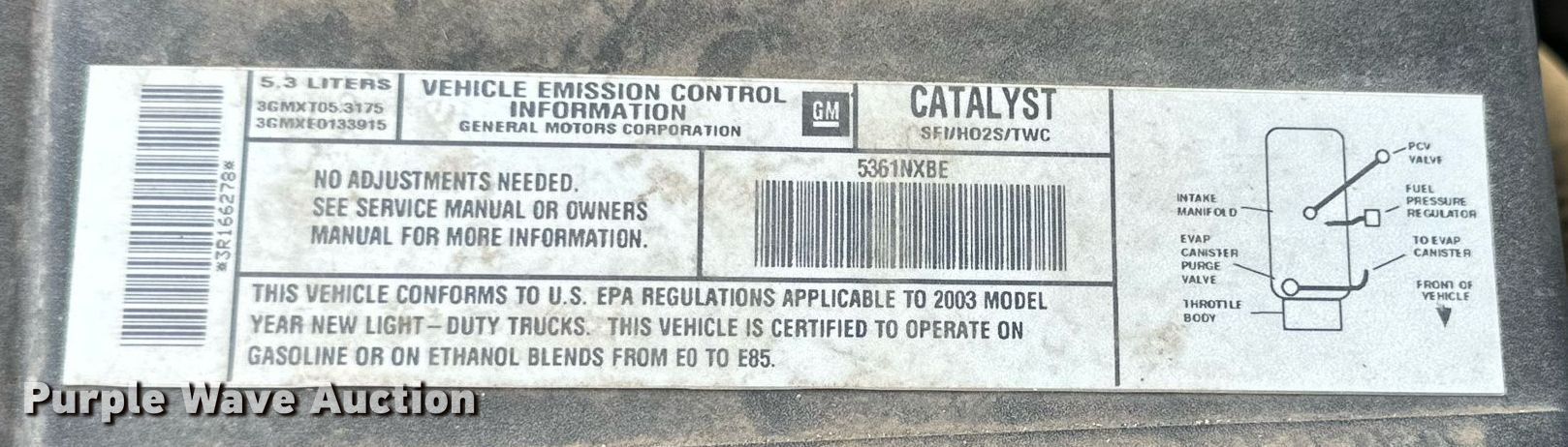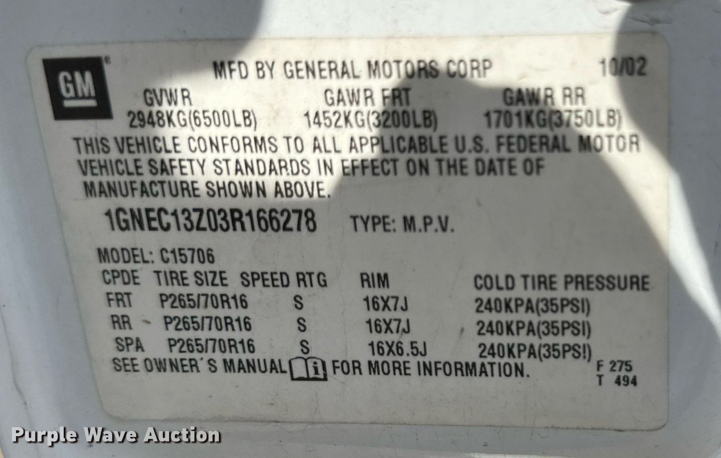 Purple Wave is selling a used Passenger Vehicle in Texas. This item is a 2003 Chevrolet Tahoe SUV with the following: Miles: 125,158 on odometer, VIN: 1GNEC13Z03R166278