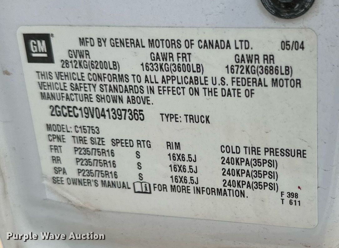Purple Wave is selling a used 1/2 Ton Pickup or Van in Texas. This item is a 2004 Chevrolet Silverado 1500 Ext. Cab pickup truck with the following: Miles: 202,411 on odometer, VIN: 2GCEC19V041397365