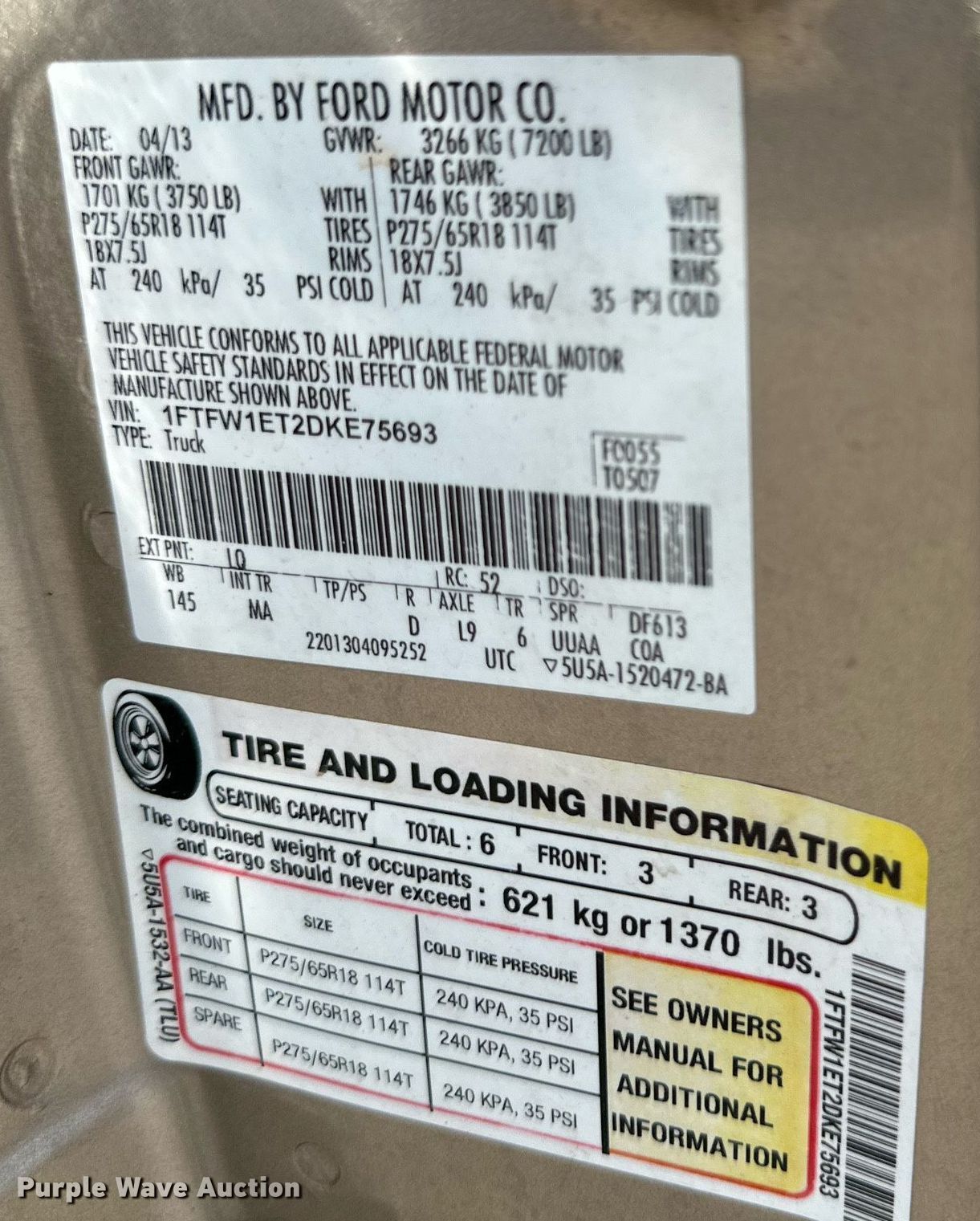 Purple Wave is selling a used 1/2 Ton Pickup or Van in Texas. This item is a 2013 Ford F150 SuperCrew pickup truck with the following: Miles: 107,247 on odometer, Miles or hours may vary, unit still in use, VIN: 1FTFW1ET2DKE75693