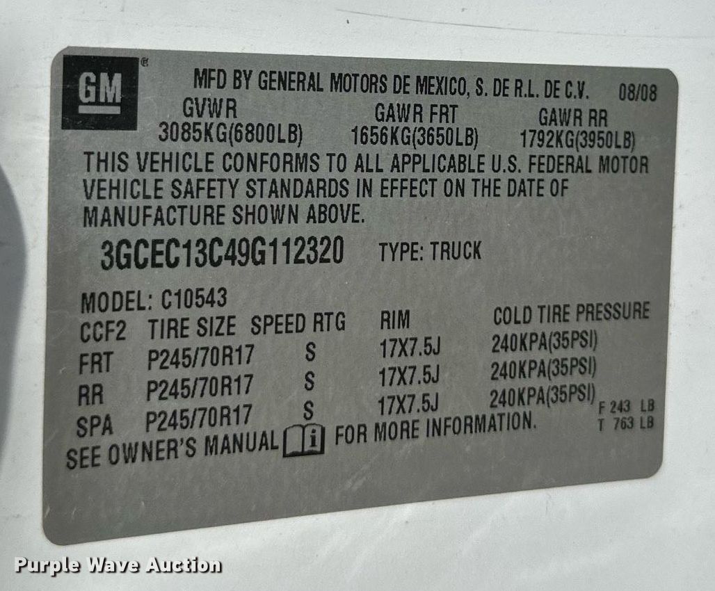 Purple Wave is selling a used 1/2 Ton Pickup or Van in Texas. This item is a 2009 Chevrolet Silverado 1500 Crew Cab pickup truck with the following: Miles: 108,656 on odometer, VIN: 3GCEC13C49G112320