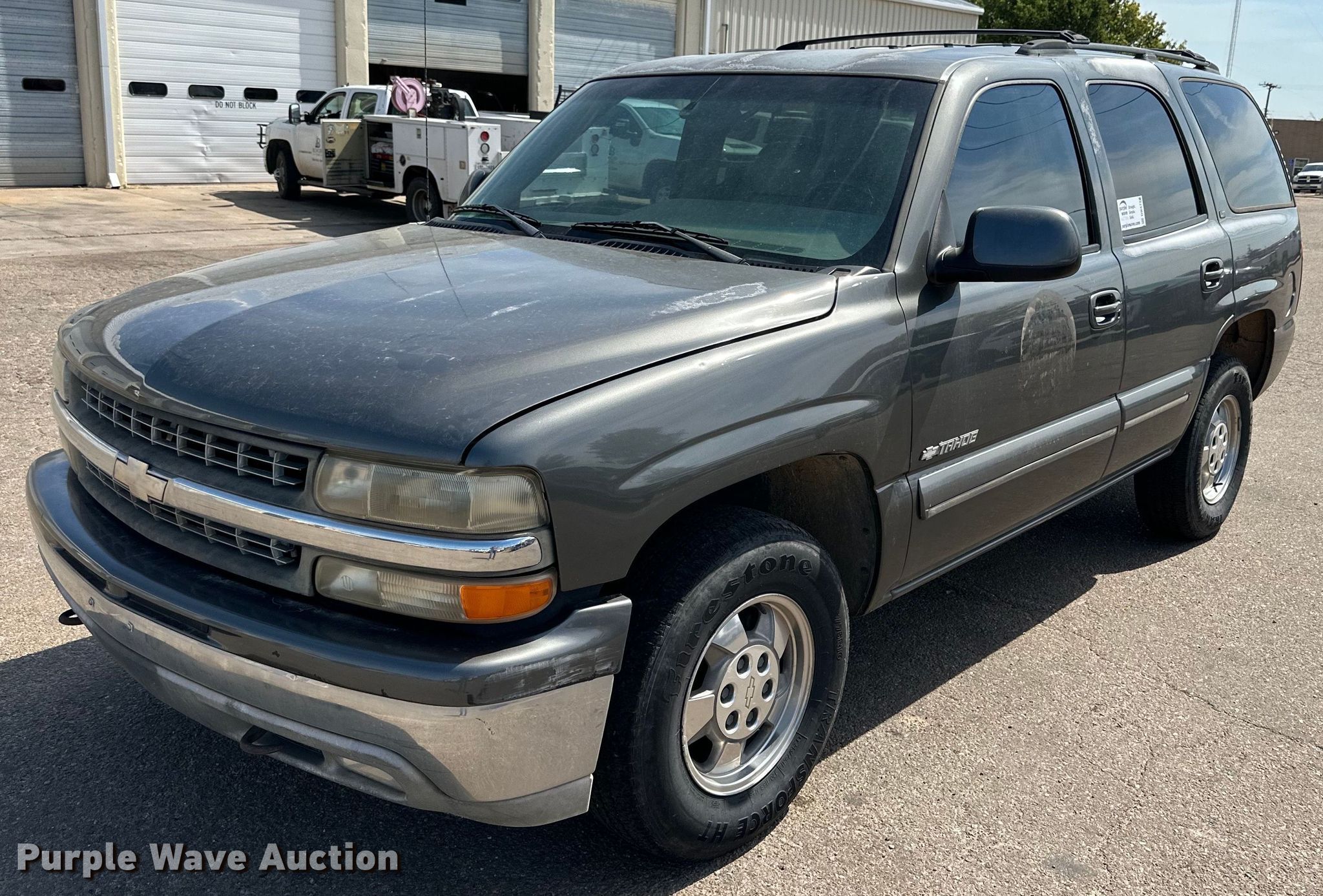 2000 Chevrolet Tahoe SUV. Miles: 162,792 on odometer, VIN: 1GNEK13T5YJ161887. Engine Displacement: 5.3L V8 OHV, Cylinders: 8, Fuel type: Gas. Transmission Automatic, Four wheel drive. Interior AC, Heat, Seat: Power driver, Power passenger, Power windows, Power locks, Cruise control. Tires Size: 245/75R16. Notes Windshield chipped or cracked, Engine issues, dies intermittently. Texas title. City of Borger. 801 N Florida St. Borger, TX 79007