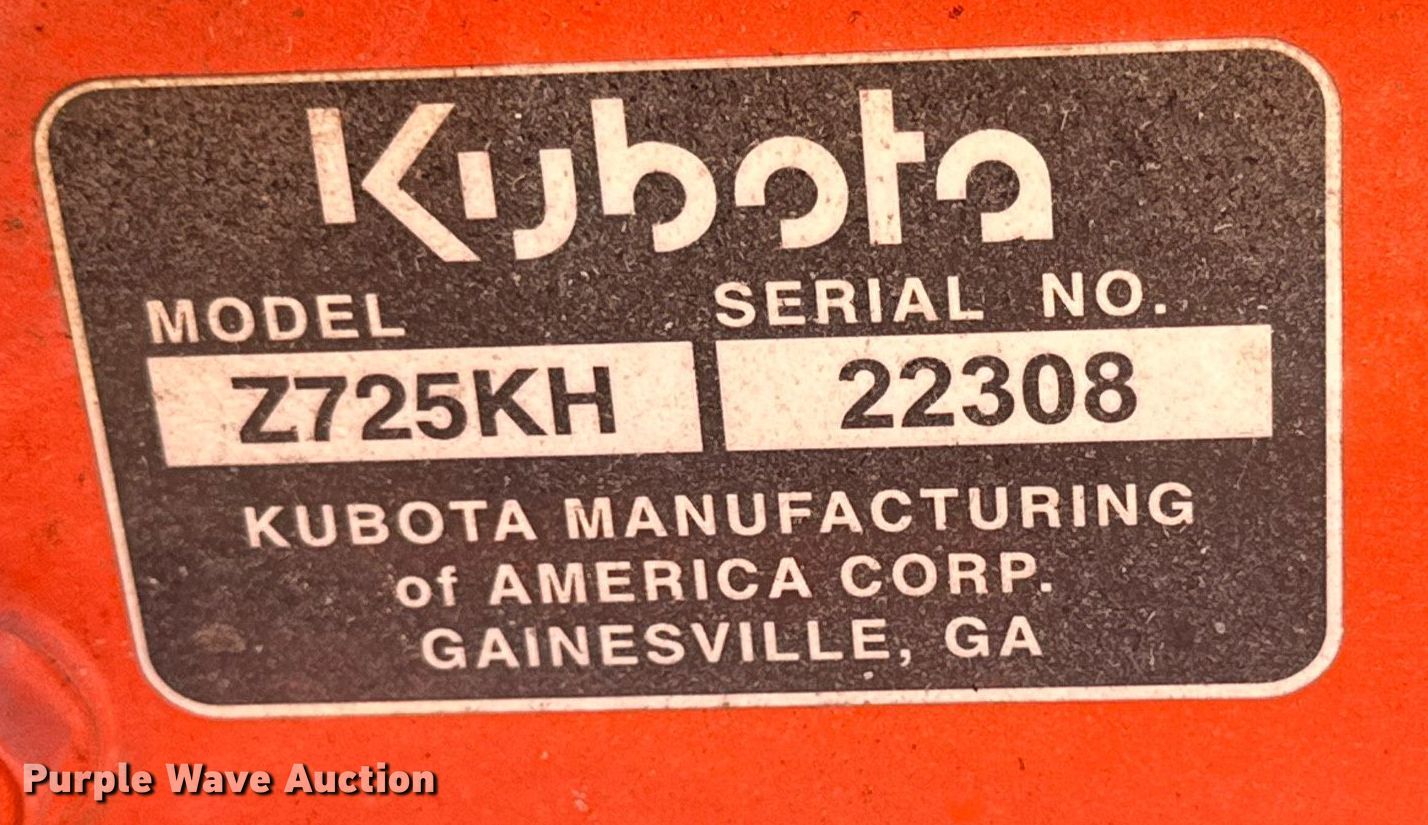 Purple Wave is selling a used Commercial Turf Mower in Texas. This item is a Kubota Z725KH ZTR lawn mower with the following: Hours: 1,135 on meter, Cutting width: 60", Serial: 22308