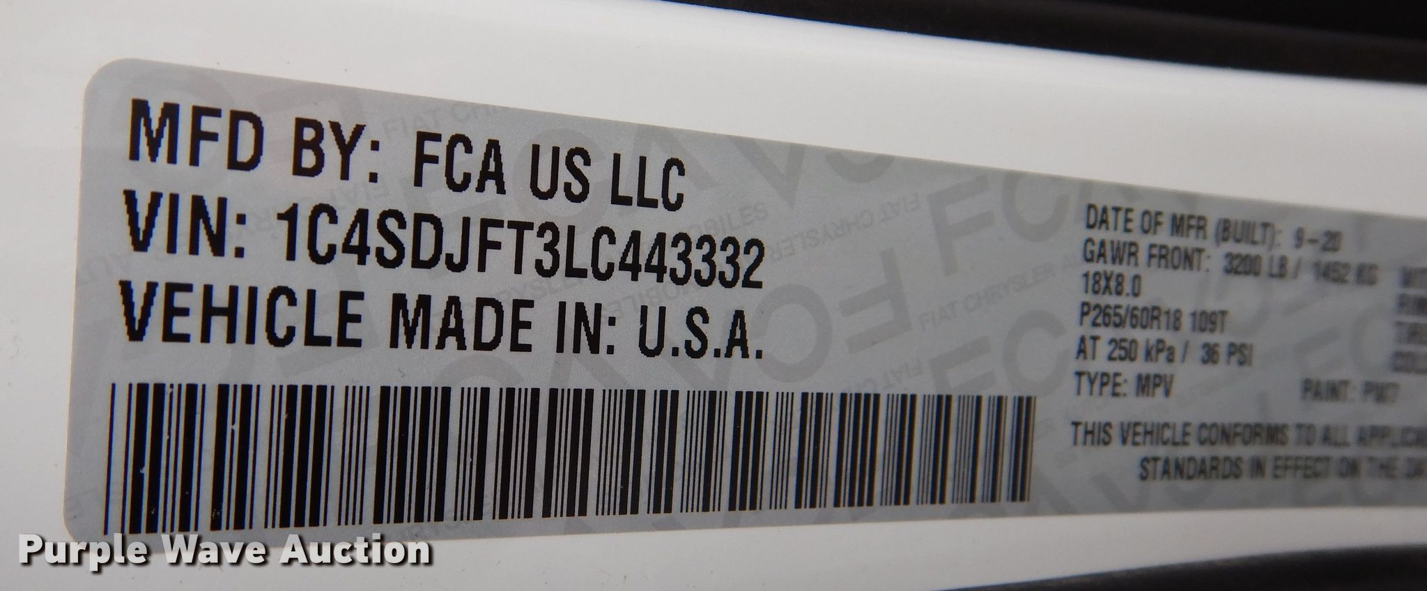 Purple Wave is selling a used Passenger Vehicle in Kansas. This item is a 2020 Dodge Durango H4 SUV with the following: Miles: 37,574 on odometer, VIN: 1C4SDJFT3LC443332, Unit #: 20-392