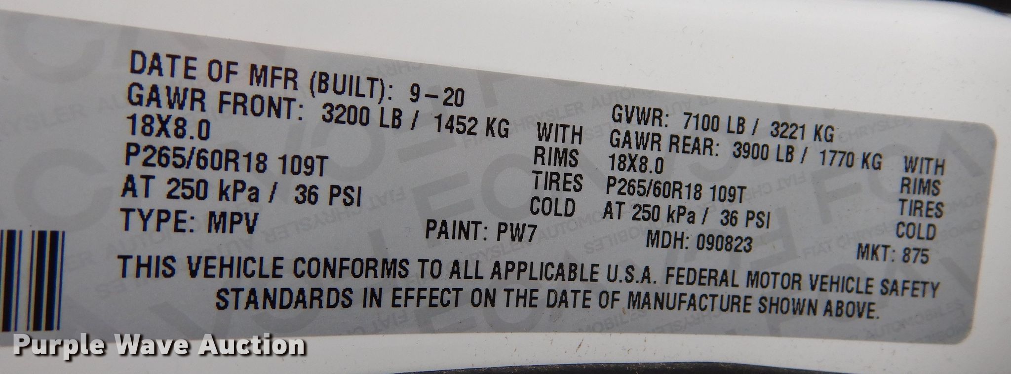 2020 Dodge Durango H4 SUV. Miles: 37,574 on odometer, VIN: 1C4SDJFT3LC443332, Unit #: 20-392. Engine Displacement: 5.7L V8 OHV, Cylinders: 8, Fuel type: Gas. Transmission Automatic. Interior AC, Heat, Seat: Power driver, Power windows, Power locks, Cruise control. Tires Size: 265/60R18. Notes Windshield chipped or cracked, Dead battery, Wrecked unit, Under carriage damage, Airbags deployed, No center console, Non-operational unit. Kansas title. Title distribution may be delayed up to 14 days from verification of funds. Kansas Highway Patrol. Topeka, KS 66616