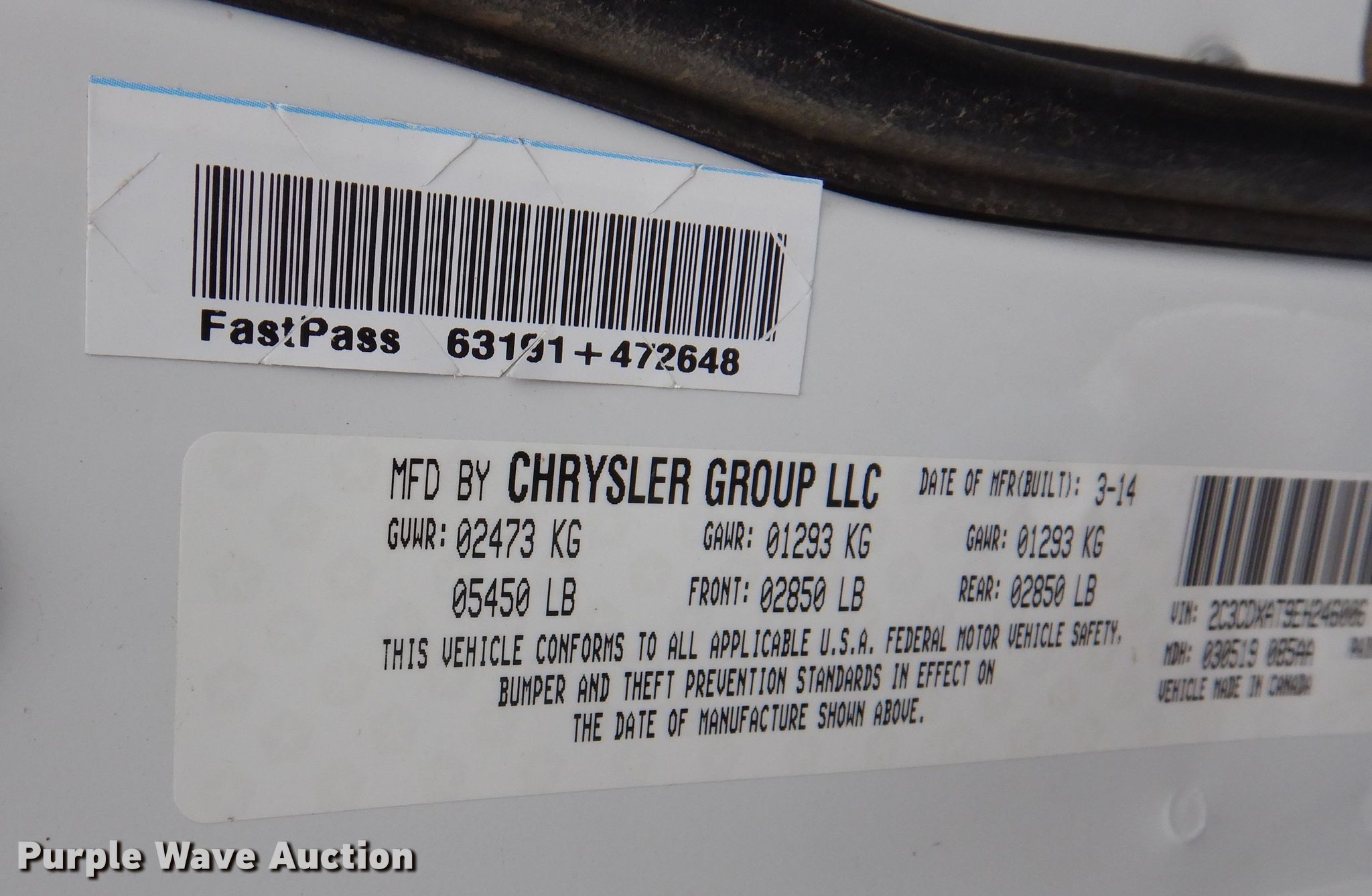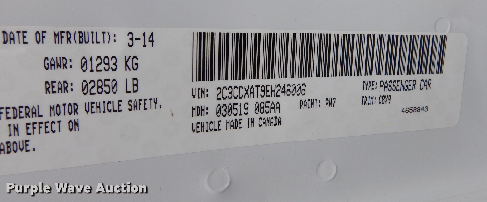 - VIN: 2C3CDXAT9EH246006