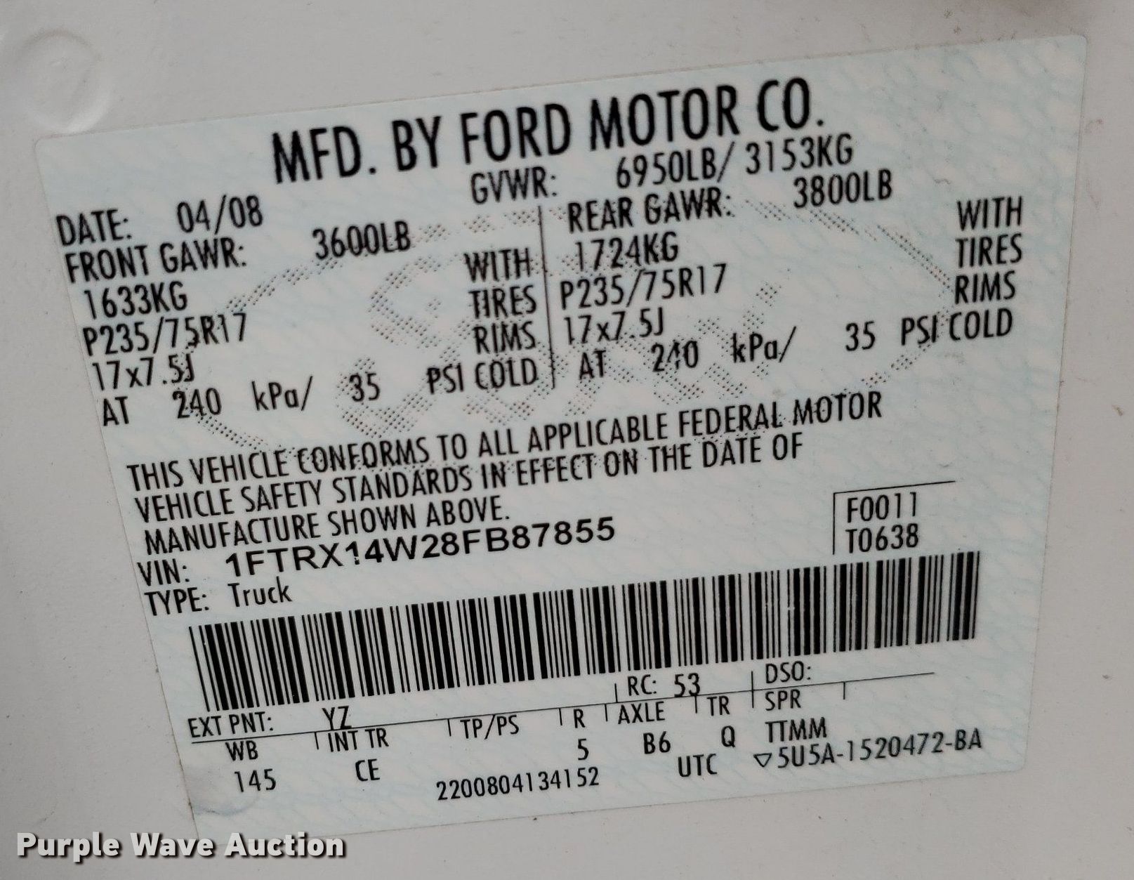 Purple Wave is selling a used 1/2 Ton Pickup or Van in Kansas. This item is a 2008 Ford F150 SuperCab pickup truck with the following: Miles: 119,711 on odometer, VIN: 1FTRX14W28FB87855