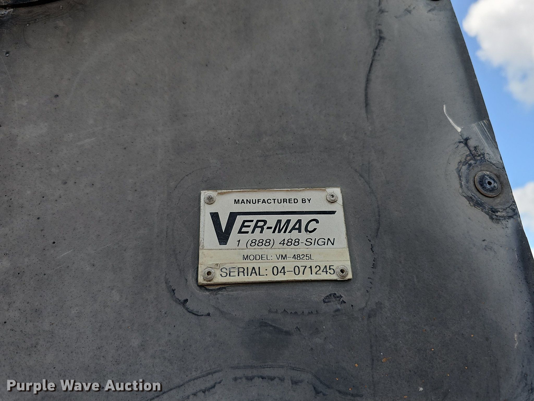 Purple Wave is selling a used Road Safety Equip. in Nebraska. This item is a 2004 Ver-Mac ST-4825 arrow board trailer with the following: VIN: 2S9US11194S132551, Unit #: 92211