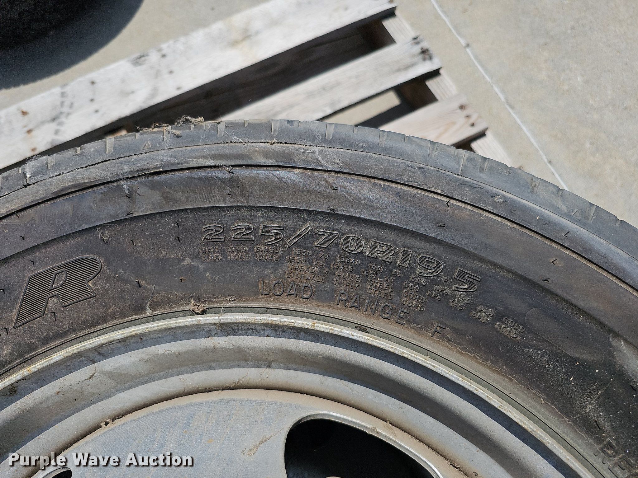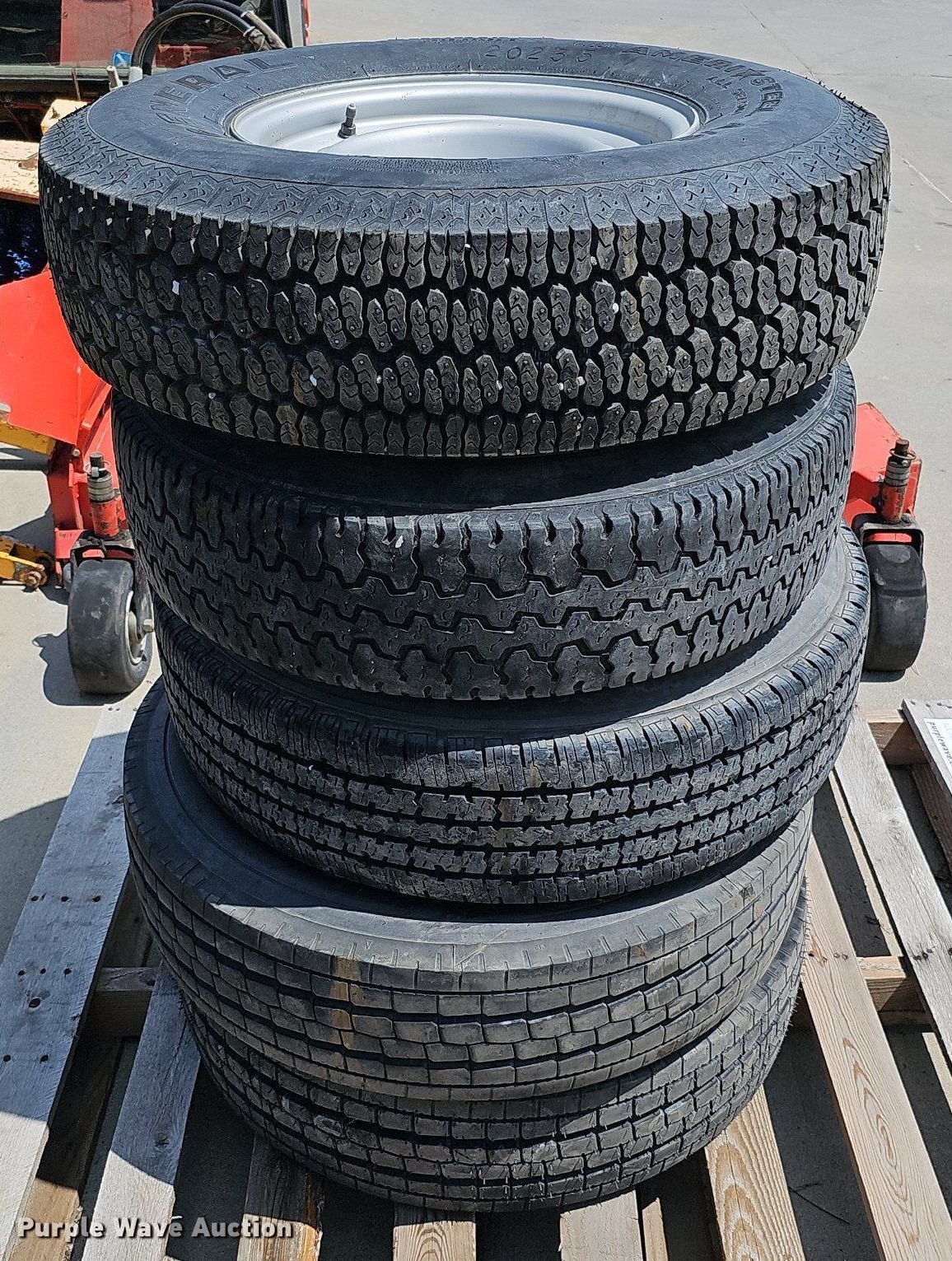 Purple Wave is selling a used Fleet Tires in Nebraska. This item is a (5) tires and wheels with the following: (2) Goodyear G647RSS 225/70/R19.5, (2) 235/85R16, LT215/85R16
