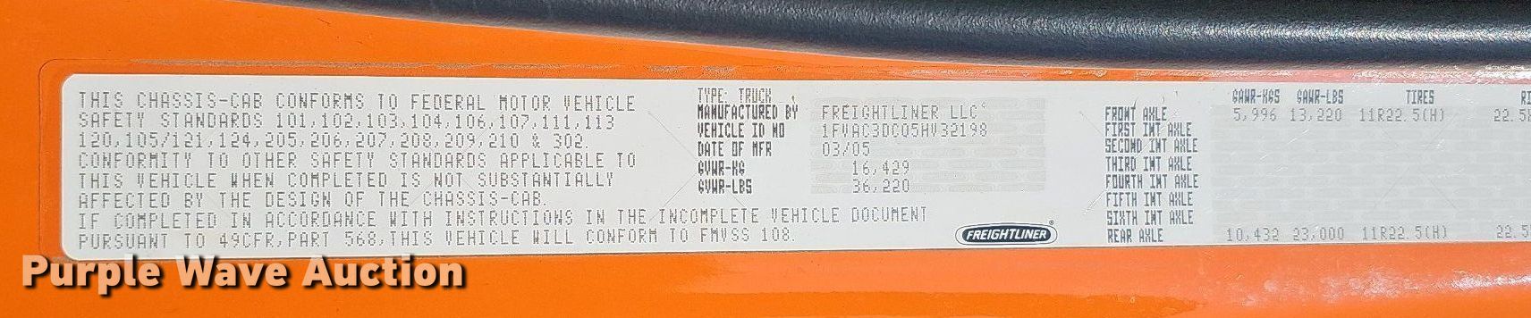 - VIN: 1FVAC3DC05HV32198