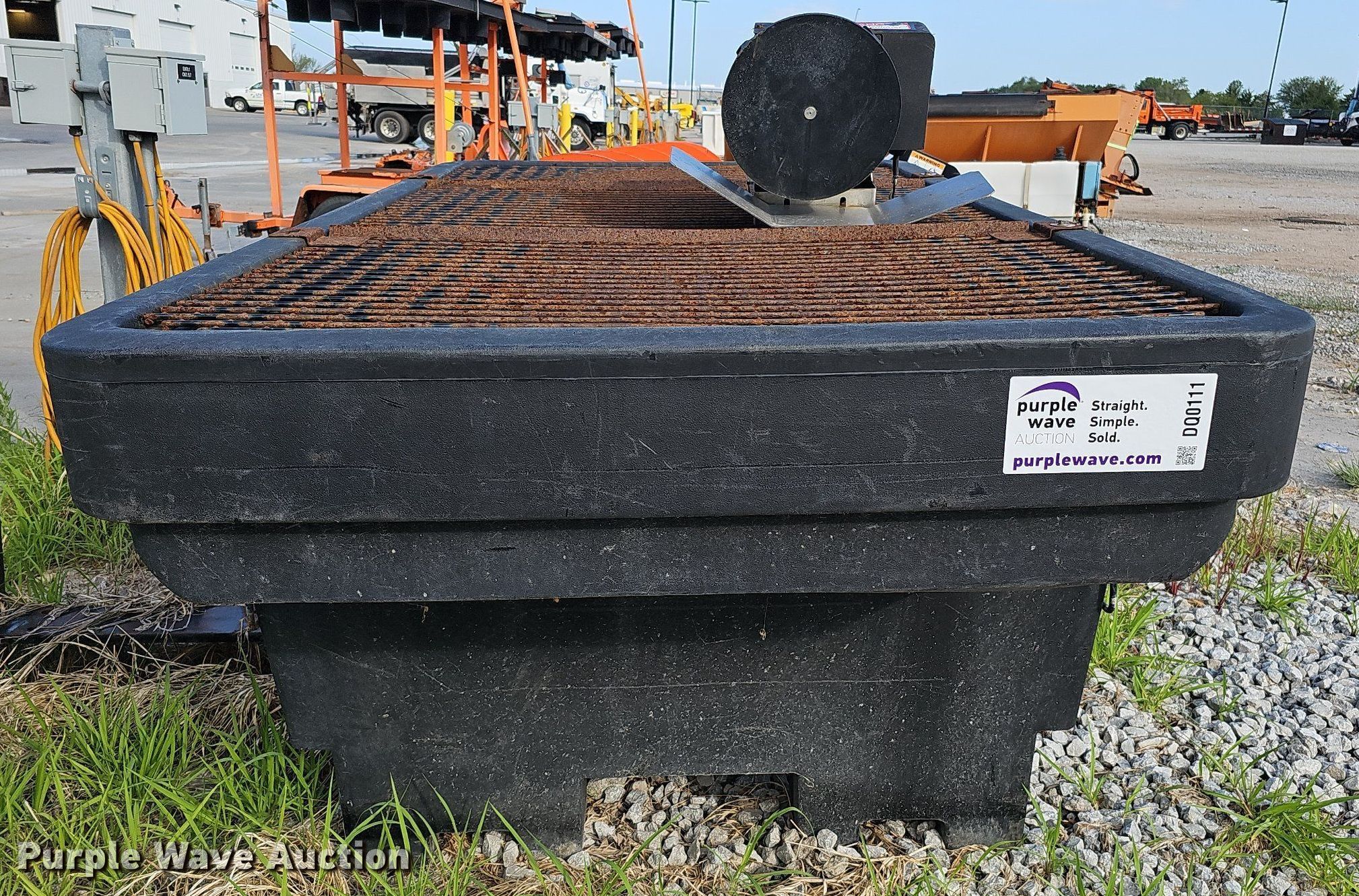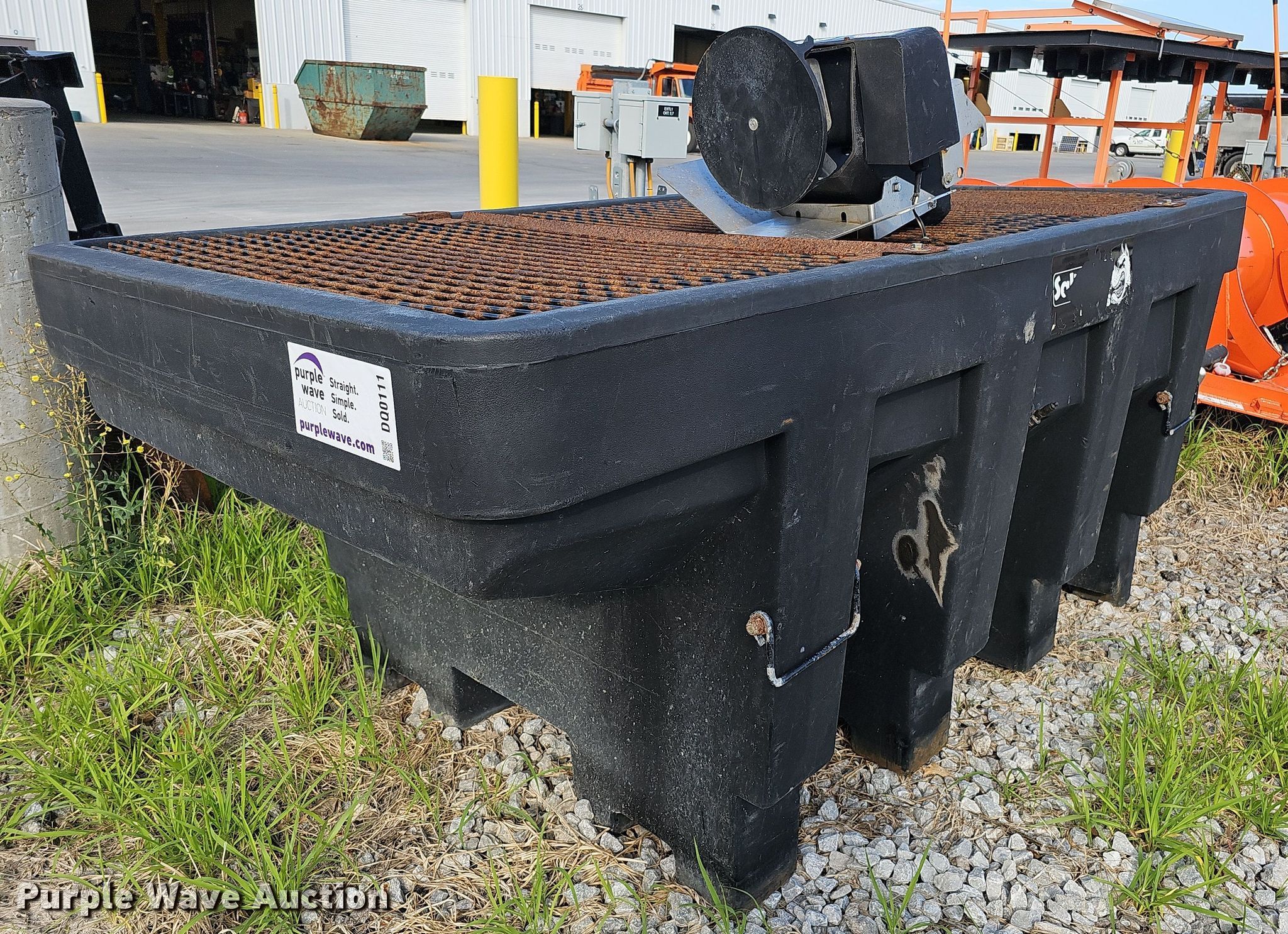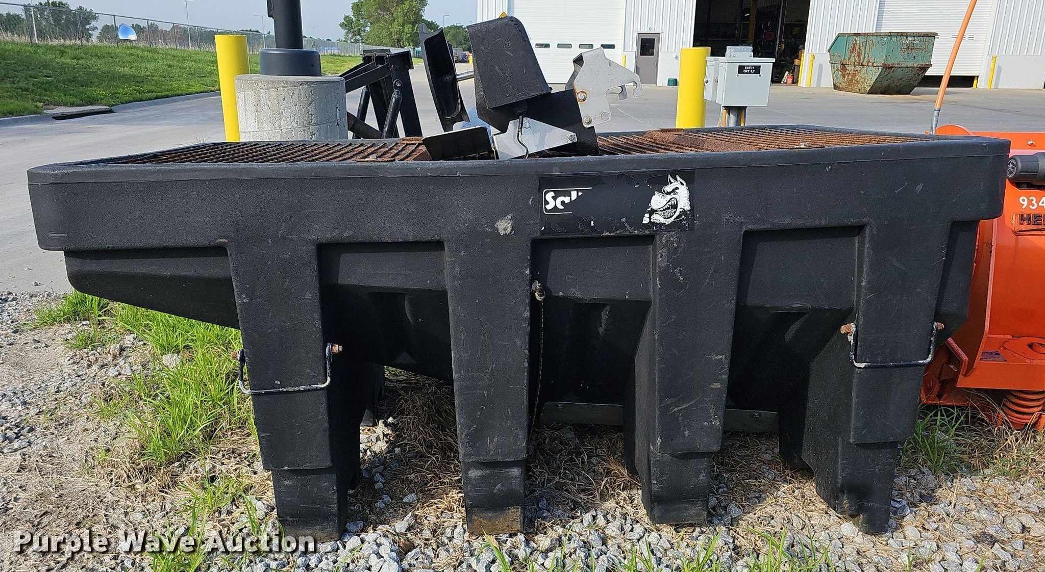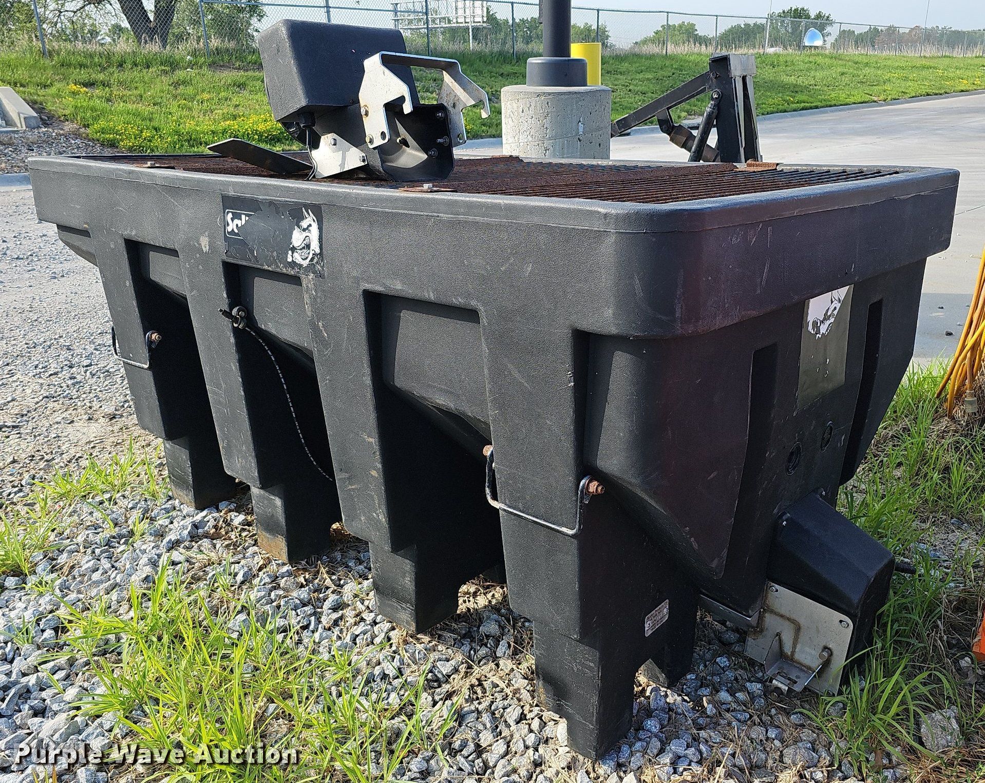 SaltDogg SHPE 1500 spreader. Serial: 2414. Features 87" L x 50" W, Side height: 37.5", Spinner: 11.5" D. Notes No cab controls. Lincoln Fleet Services. 901 West Bond Street. Lincoln, NE 68521