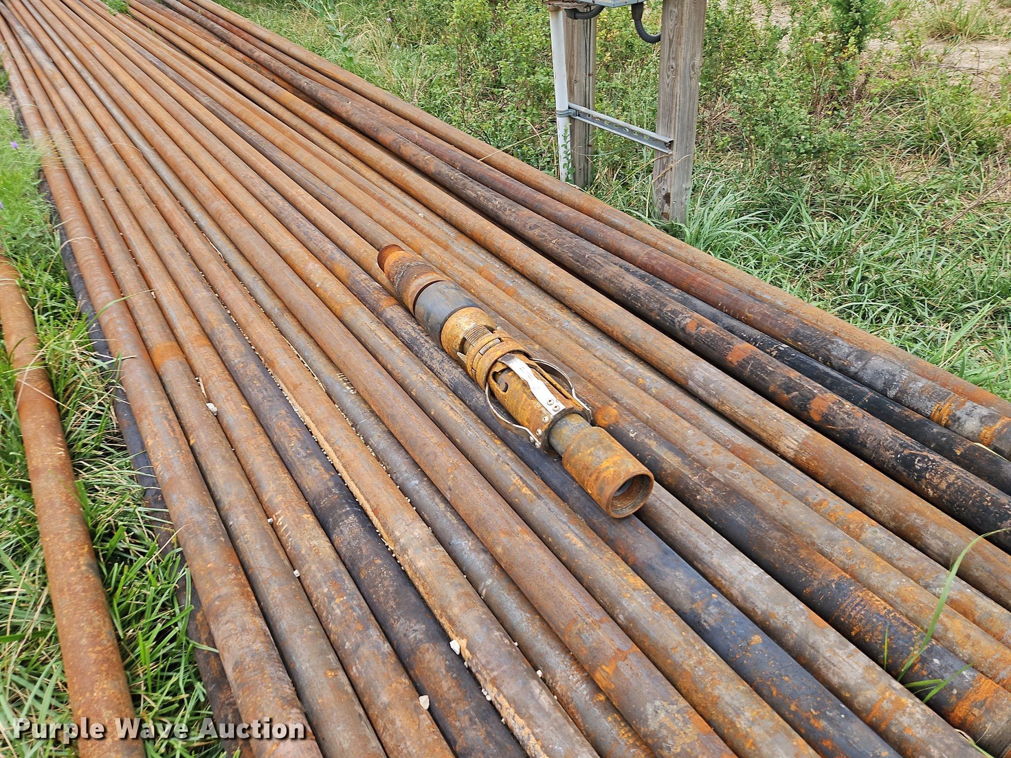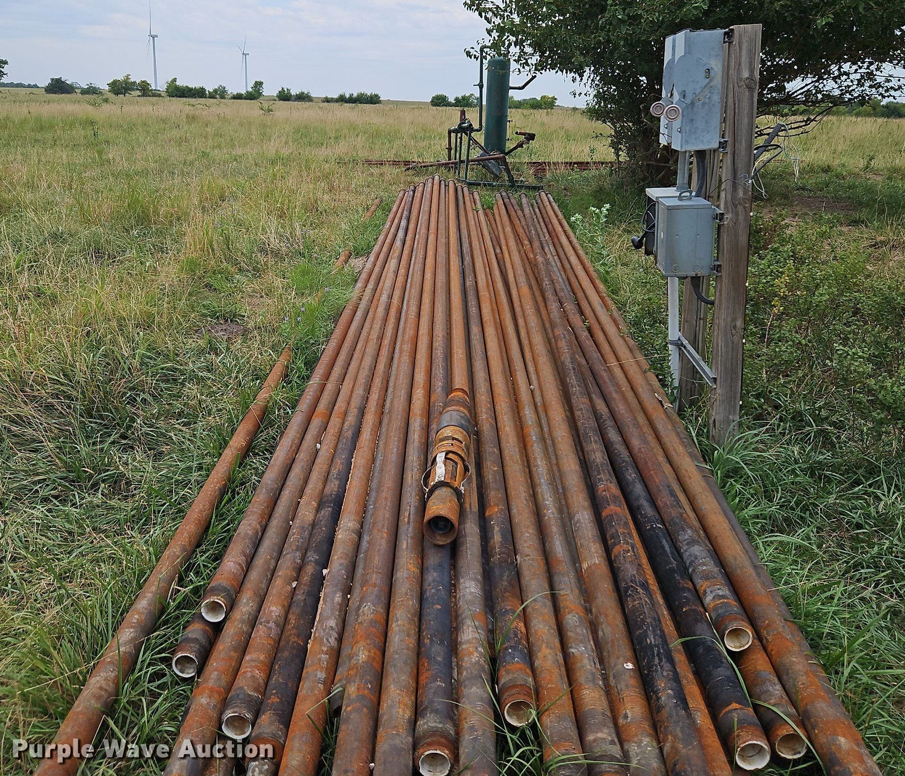Purple Wave is selling a used Other Industrial or Business in Kansas. This item is a Oilfield equipment with the following: (2) fiberglass tanks, Capacity: 100 BBL, Capacity: 200 BBL, Dump valve, Approx. 55 joints of tubing, Approx. 33'L x 2 7/8" diameter, Approx. 43 joints of tubing, Approx. 33'L x 2 3/8" diameter, Approx. 52 rods, Approx. 25'L x 3/4" diameter, Packer, Unit #: 2023FP3-02 - Kunkel