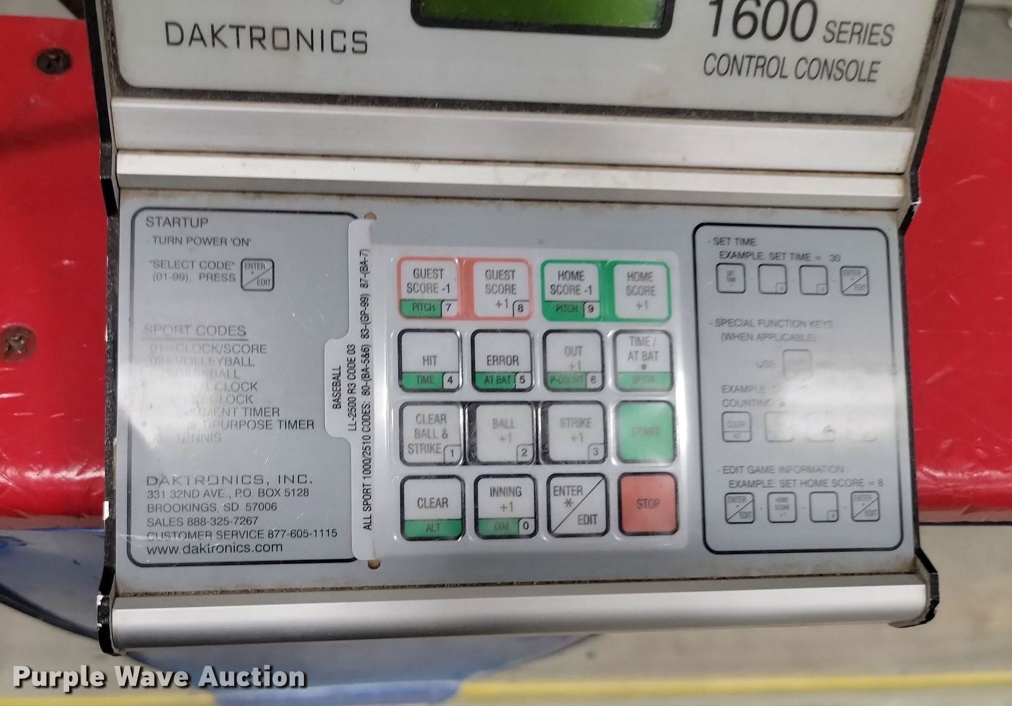 Purple Wave is selling a used Sporting Goods in South Dakota. This item is a Daktronics scoreboard with the following: 14' L x 60" H, Daktronics All Sport 1600 Series controller