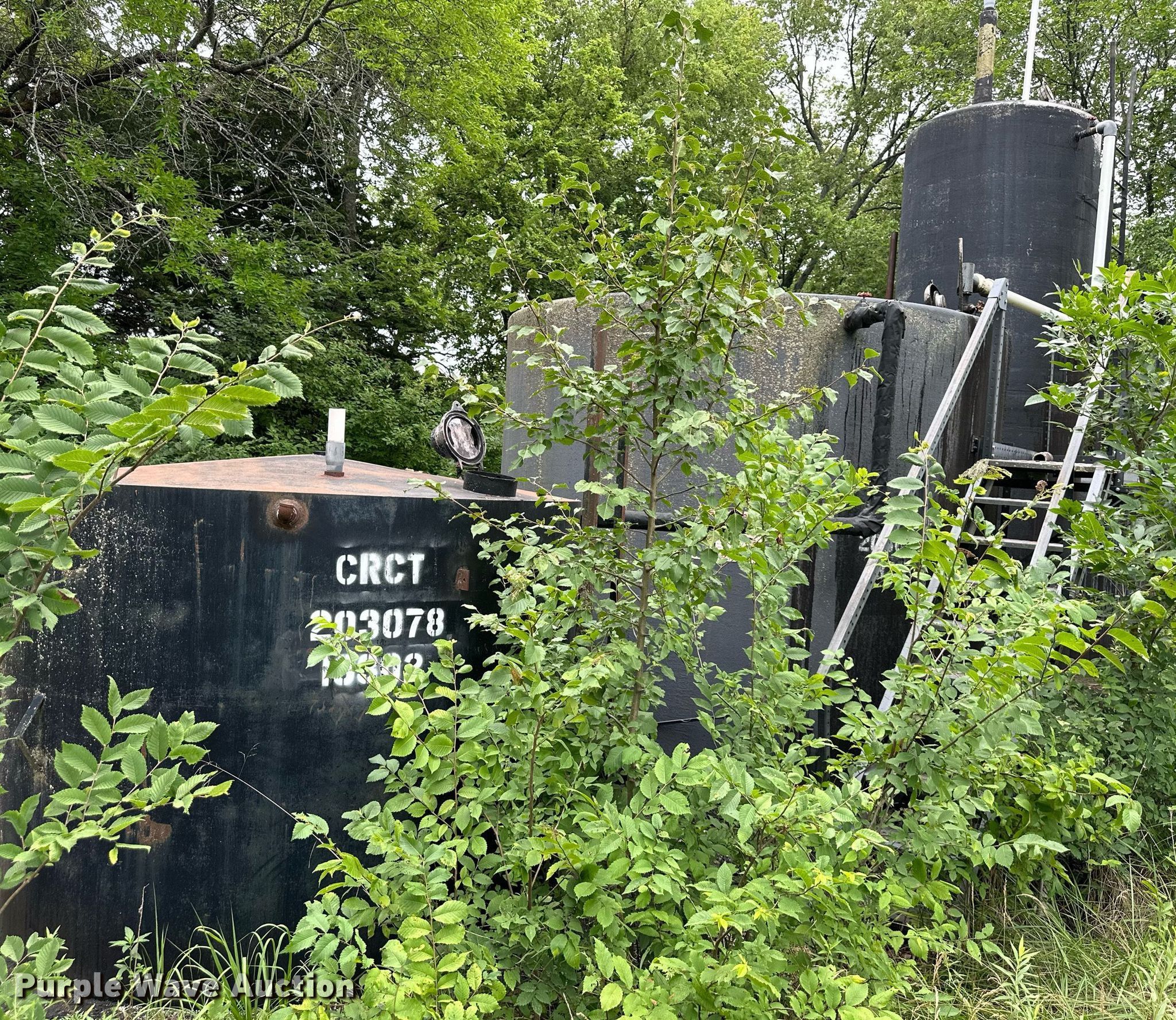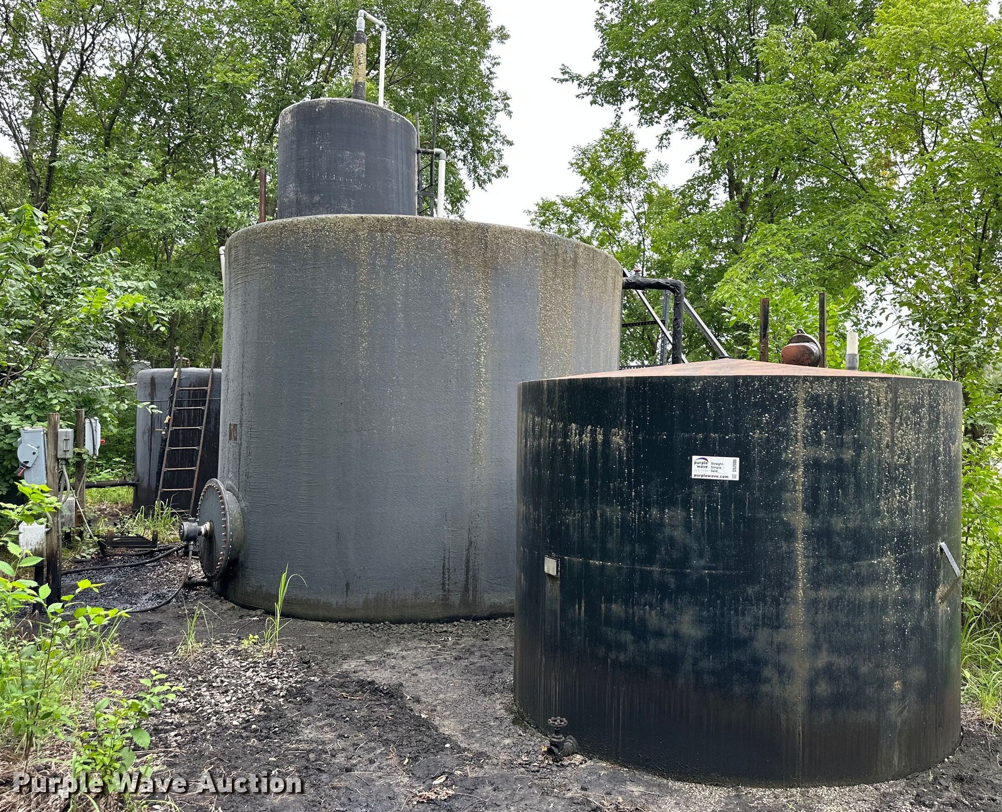 Oilfield equipment. Fiberglass gun barrel Capacity: 80 BBL, Fiberglass stock tank Capacity: 200 BBL, Steel stock tank Capacity: 50 BBL, Fiberglass brine tank Capacity: 100 BBL, Control house, Injection pump/manifold, (3) disconnect boxes, Unit #: 2023FP3-01 - South Peterson / Peterson-Pesnell. Tanks have not been cleaned, possible residue. Unknown amount or type of contents in tanks.. All aspects of disassembly and removal are the sole responsibility of the purchaser. KCC Conservation Division Oilfield Salvage Disposal. Eudora, KS 66025