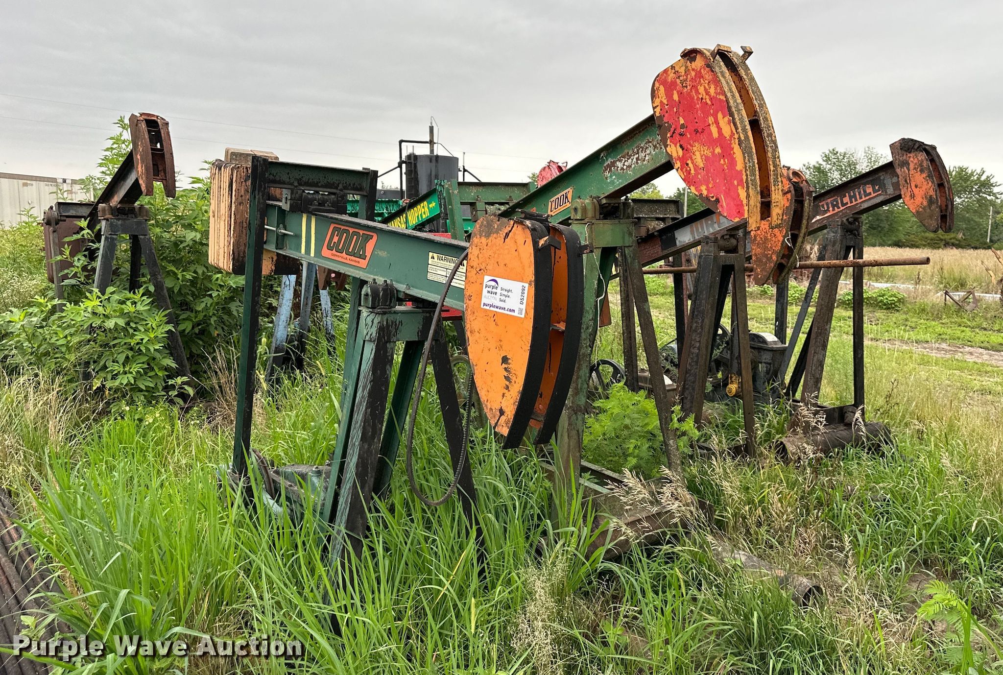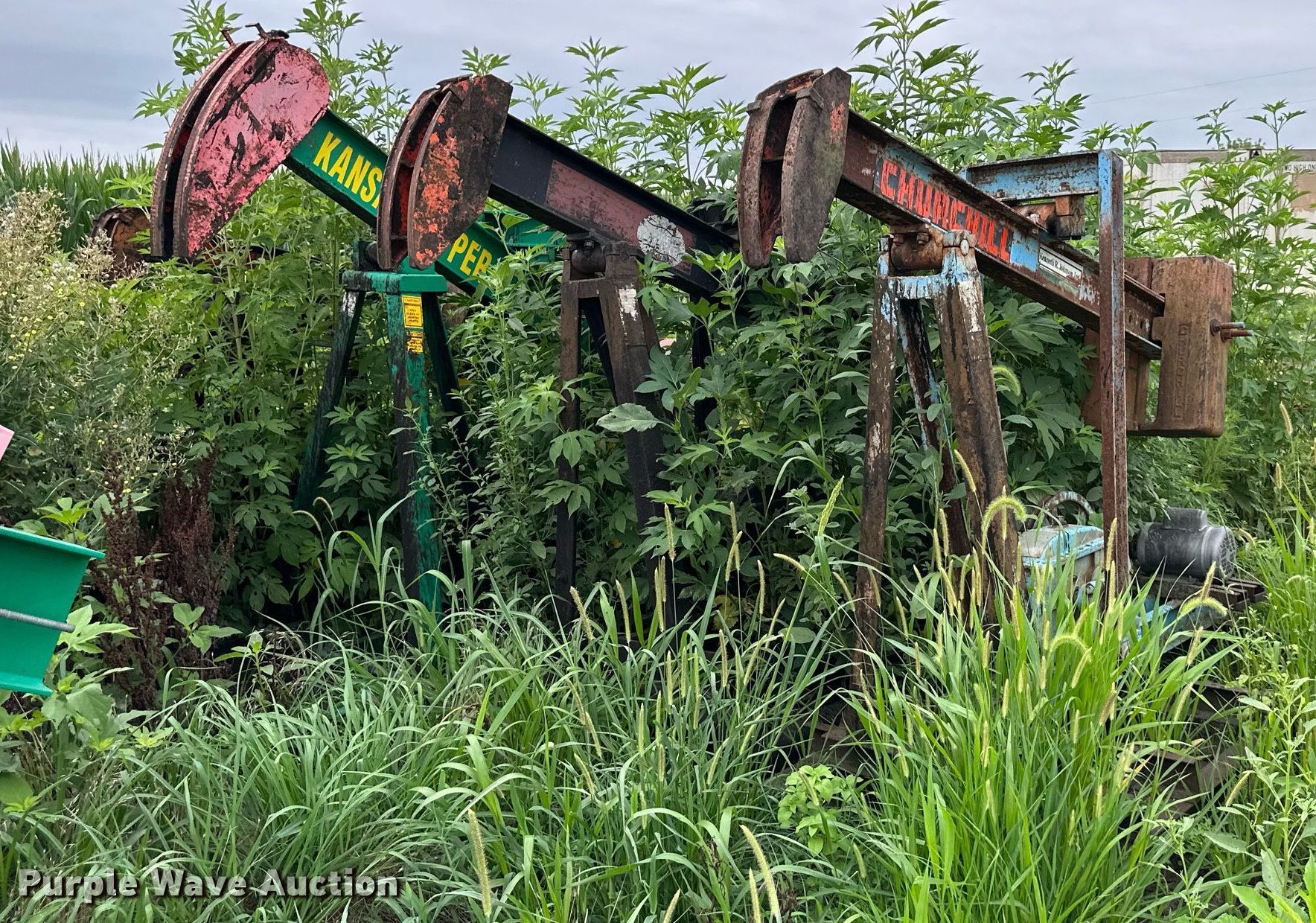 Purple Wave is selling a used Other Industrial or Business in Kansas. This item is a (11) pump jacks with the following: (3) Cook, (2) electric motors, (5) Churchill, Electric motors, (3) Kansas Hopper, One with electric motor, (5) disconnect boxes, Unit #: 2023FP3-01 - Neis