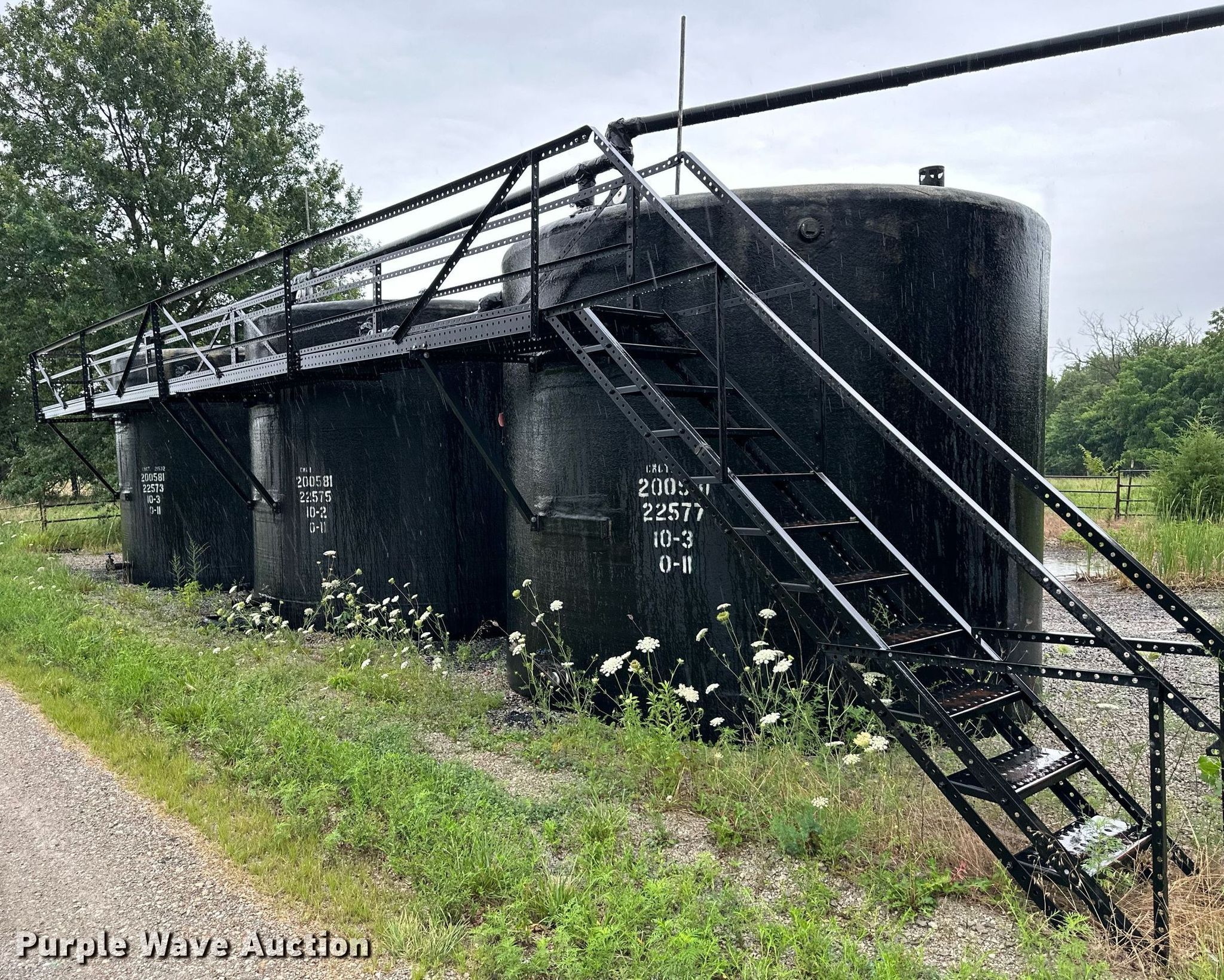 Purple Wave is selling a used Other Industrial or Business in Kansas. This item is a Oilfield equipment with the following: Fiberglass gun barrel, Capacity: 130 BBL, (3) fiberglass stock tanks, Capacity: 200 BBL, (2) fiberglass brine tanks, Capacity: 200 BBL, Control house, Injection pump/manifold, (3) disconnect boxes, Unit #: 2023FP3-01 - Thoren