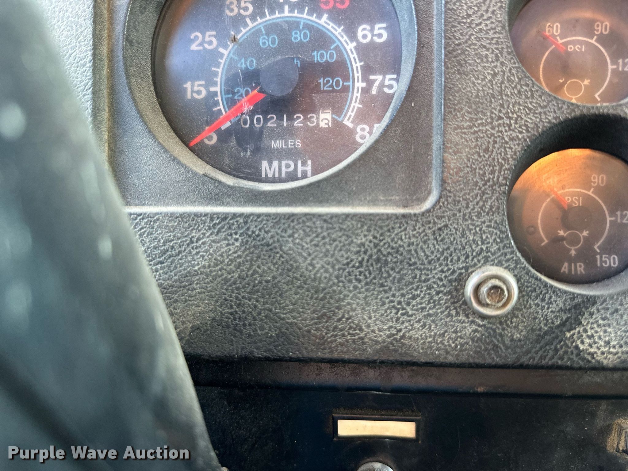 1984 International S2554 dump truck. Miles: 2,123 on odometer Actual miles unknown, Hours: 7,618 on meter, VIN: 1HTZLTVR2EHA56009. Engine International DT466, Cylinders: 6, Fuel type: Diesel. Transmission Automatic. Chassis Axles: Single, Suspension: Spring, Brakes: Air, Front mount PTO. Interior Heat. Features Dump bed 10' L x 96" W, Side height: 34", Bed type: Steel, Ram: Single , End gate: Manual, Plow Width: 120". Tires Front: 12R22.5, Rear: 11R22.5. Kansas title. Mileage has not been verified. Exempt will be written in the odometer disclosure on the title. Title distribution may be delayed up to 14 days from verification of funds. City of Mcfarland. 518 Rock Is Rd. McFarland, KS 66501