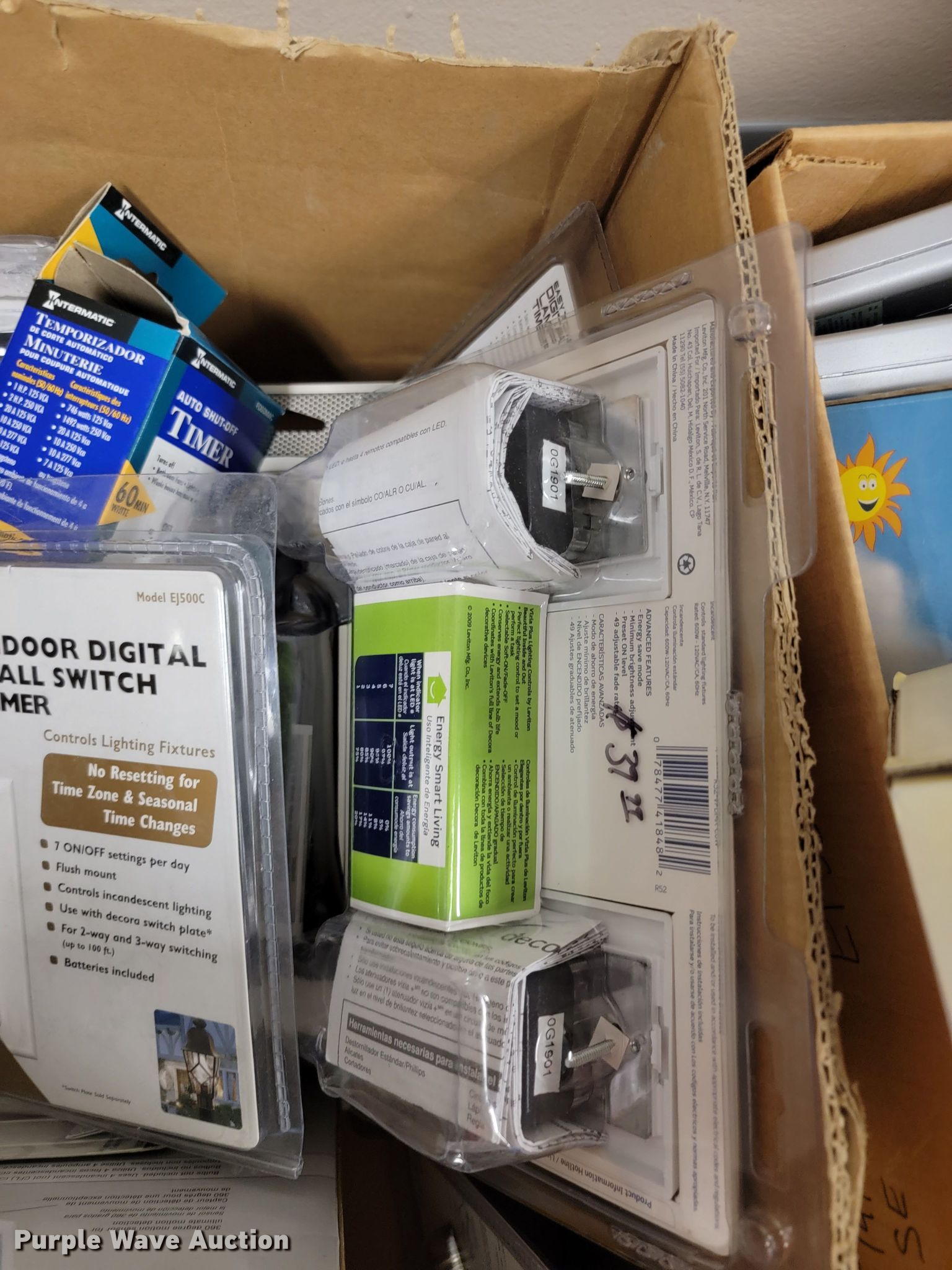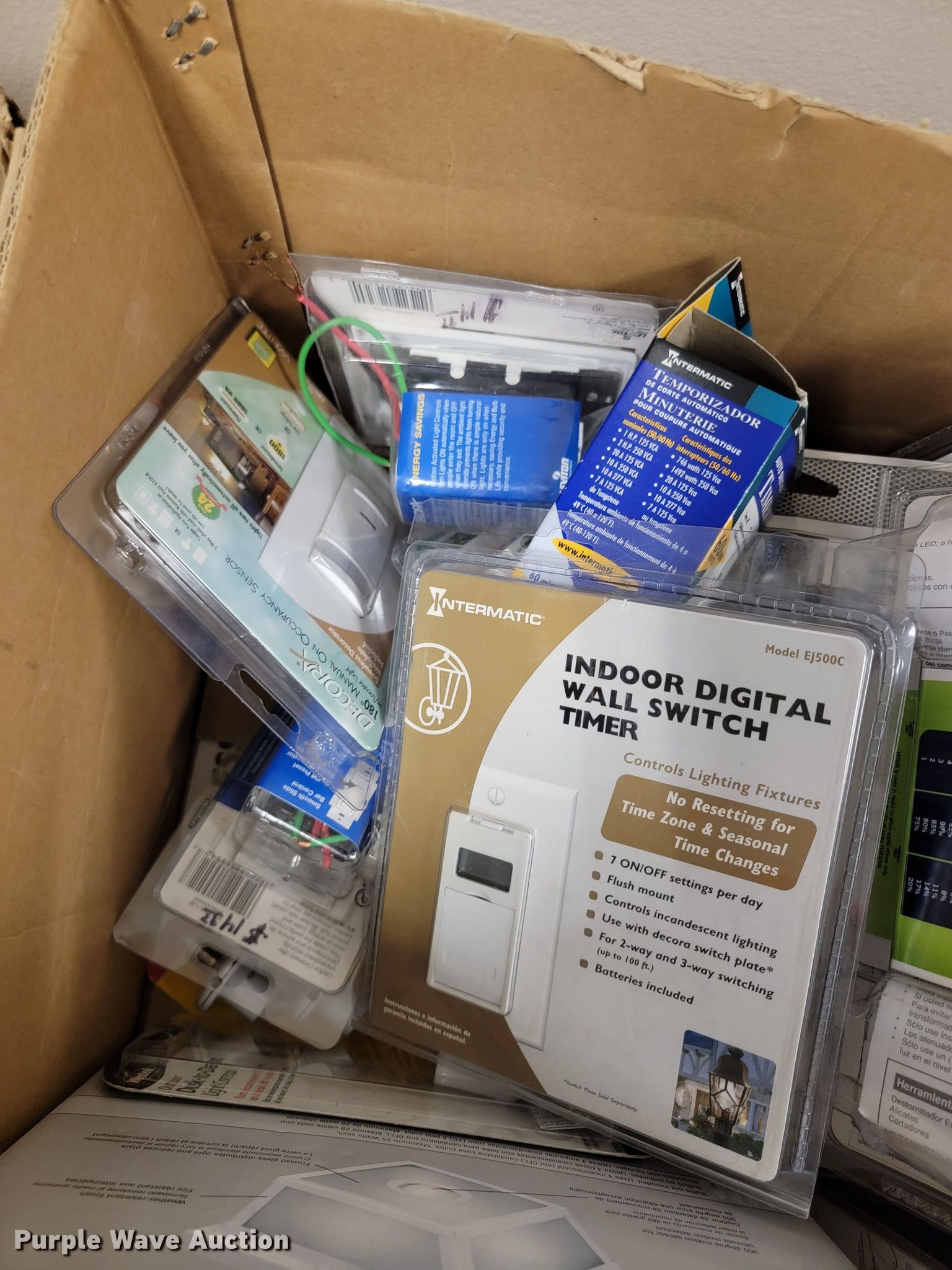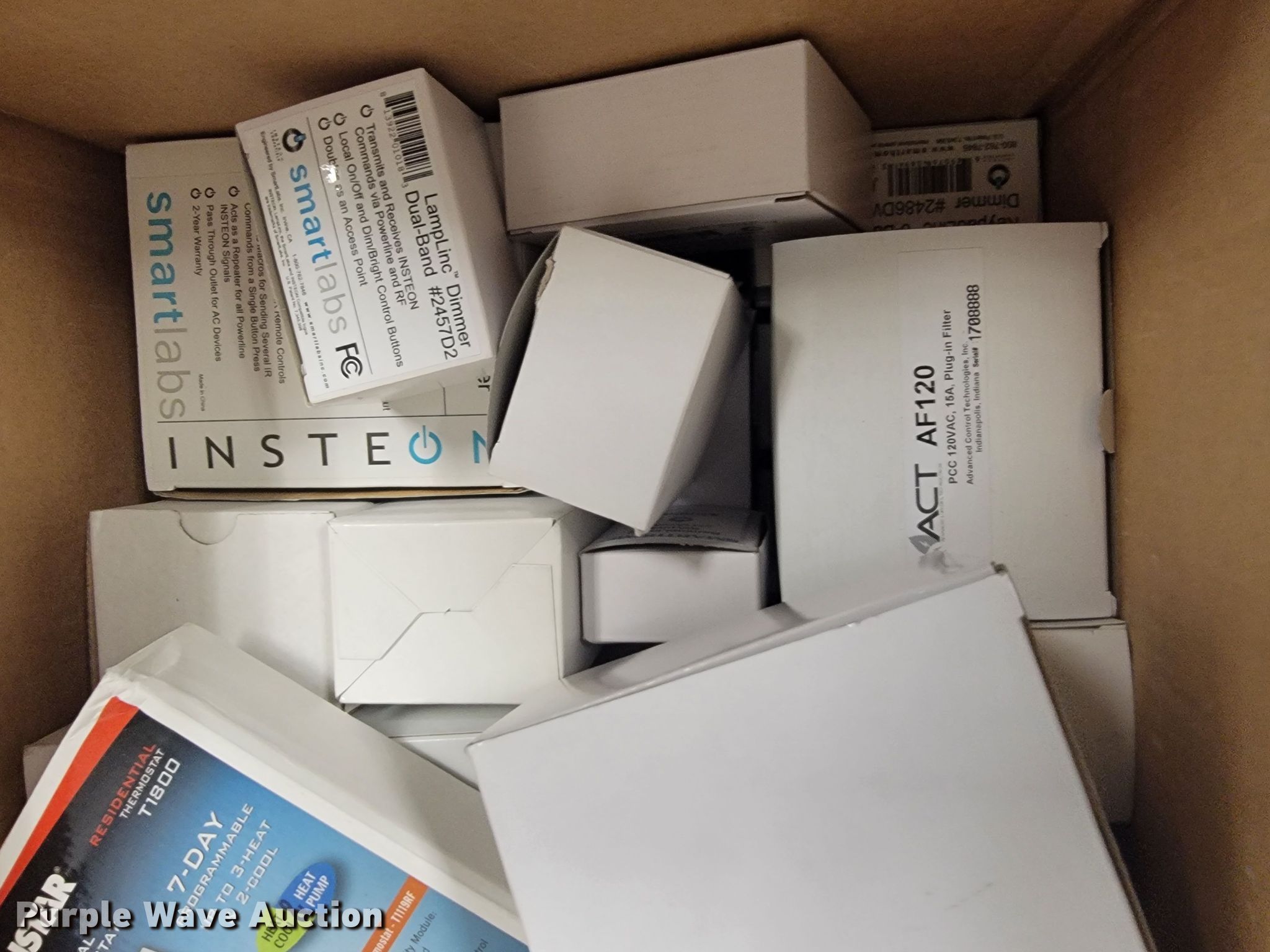 Purple Wave is selling a used Building Materials in Kansas. This item is a Building materials with the following: (2) in-ceiling speakers, Barking dog alarm, Dual band responders, Thermostat, Approx. 50 dimmer switches, Lights, Outdoor outlet timers, Security cameras and more