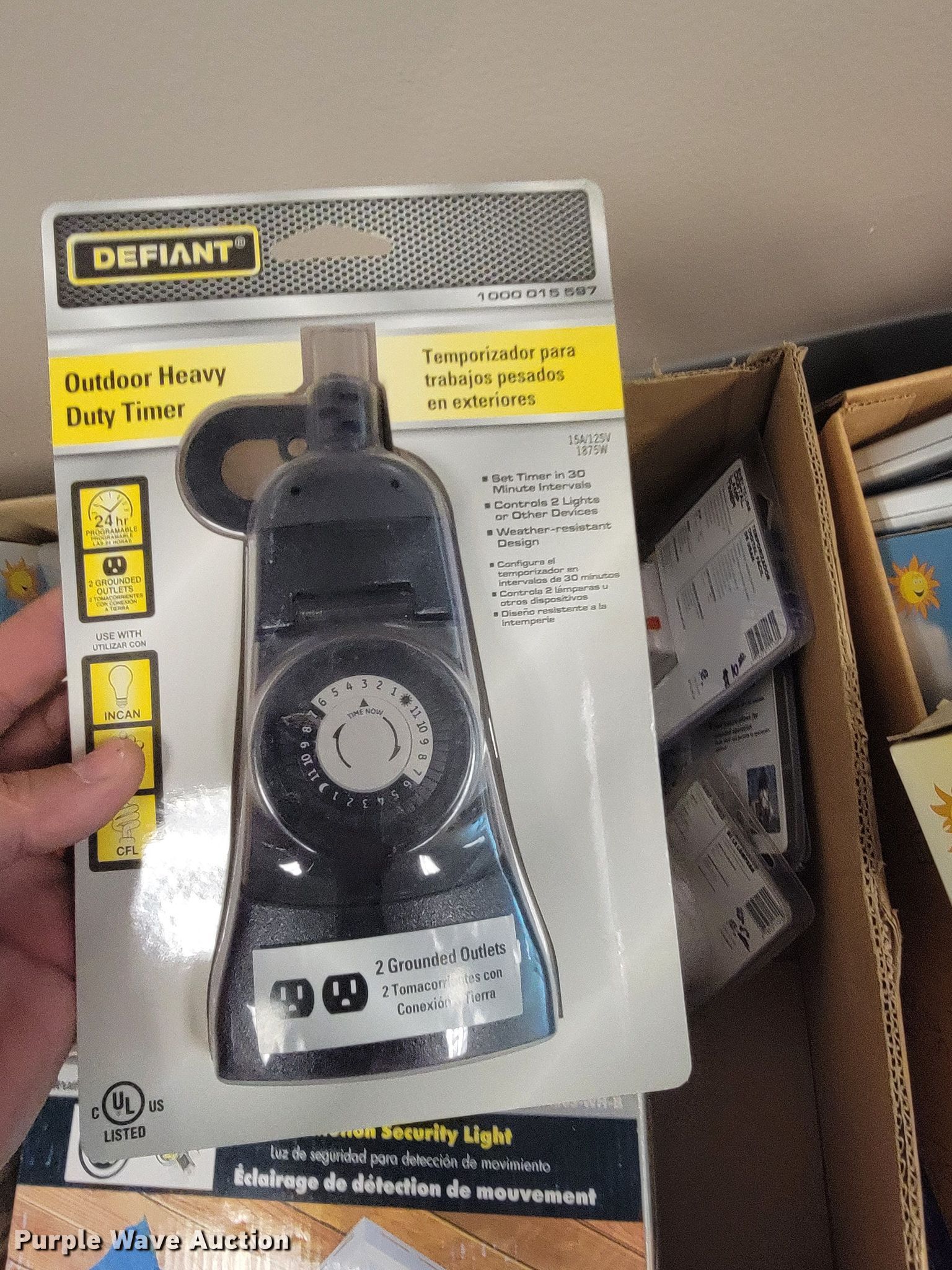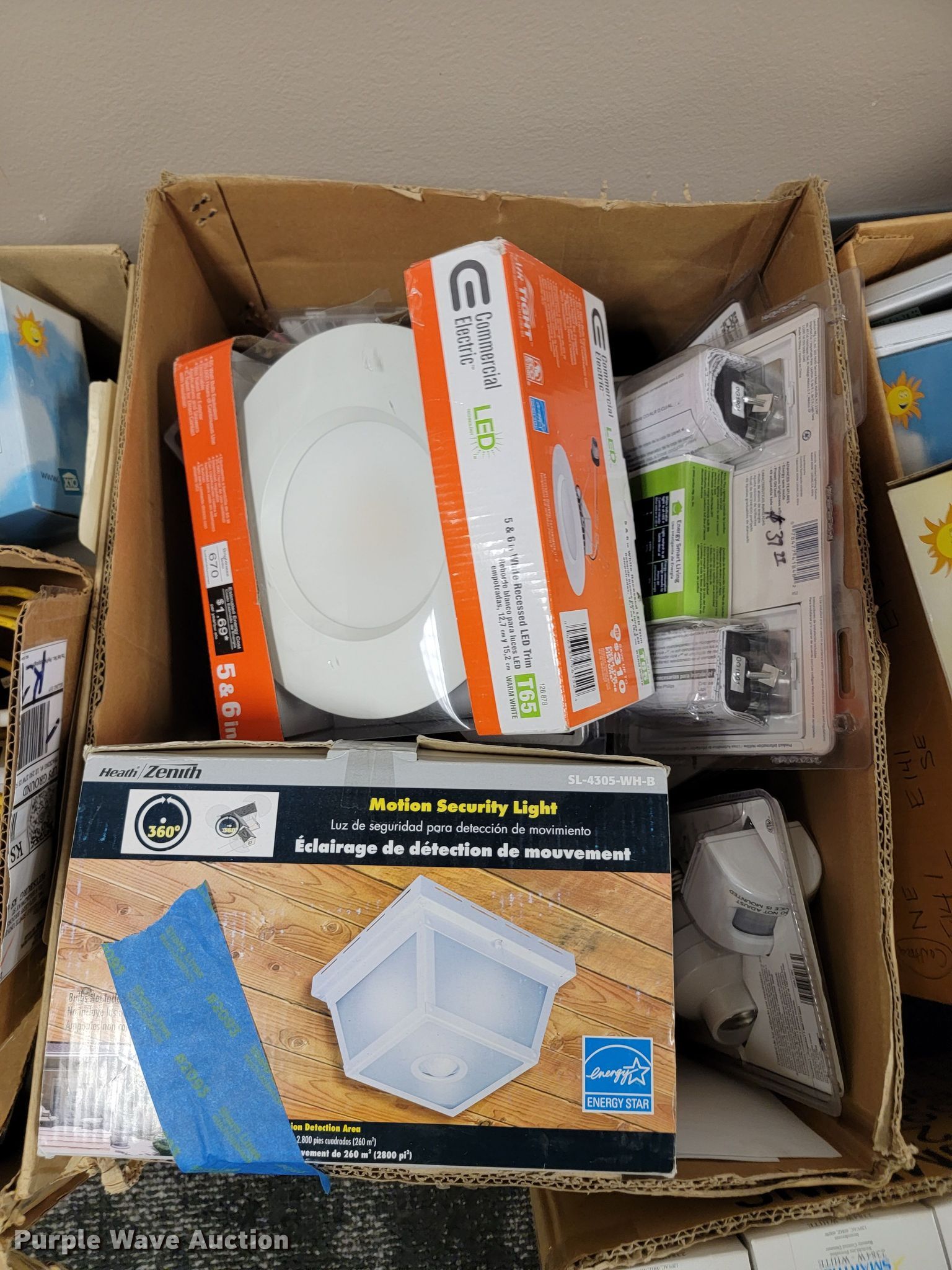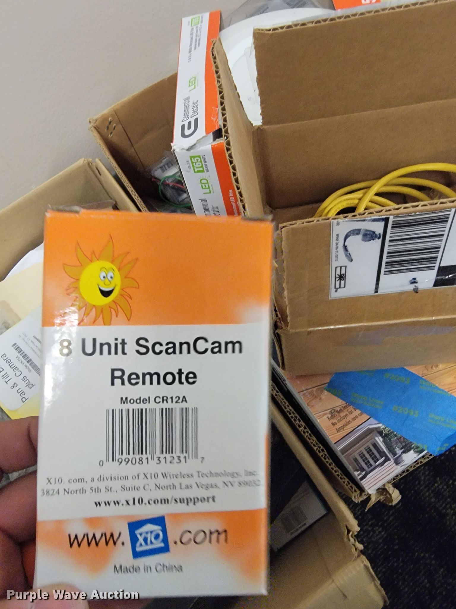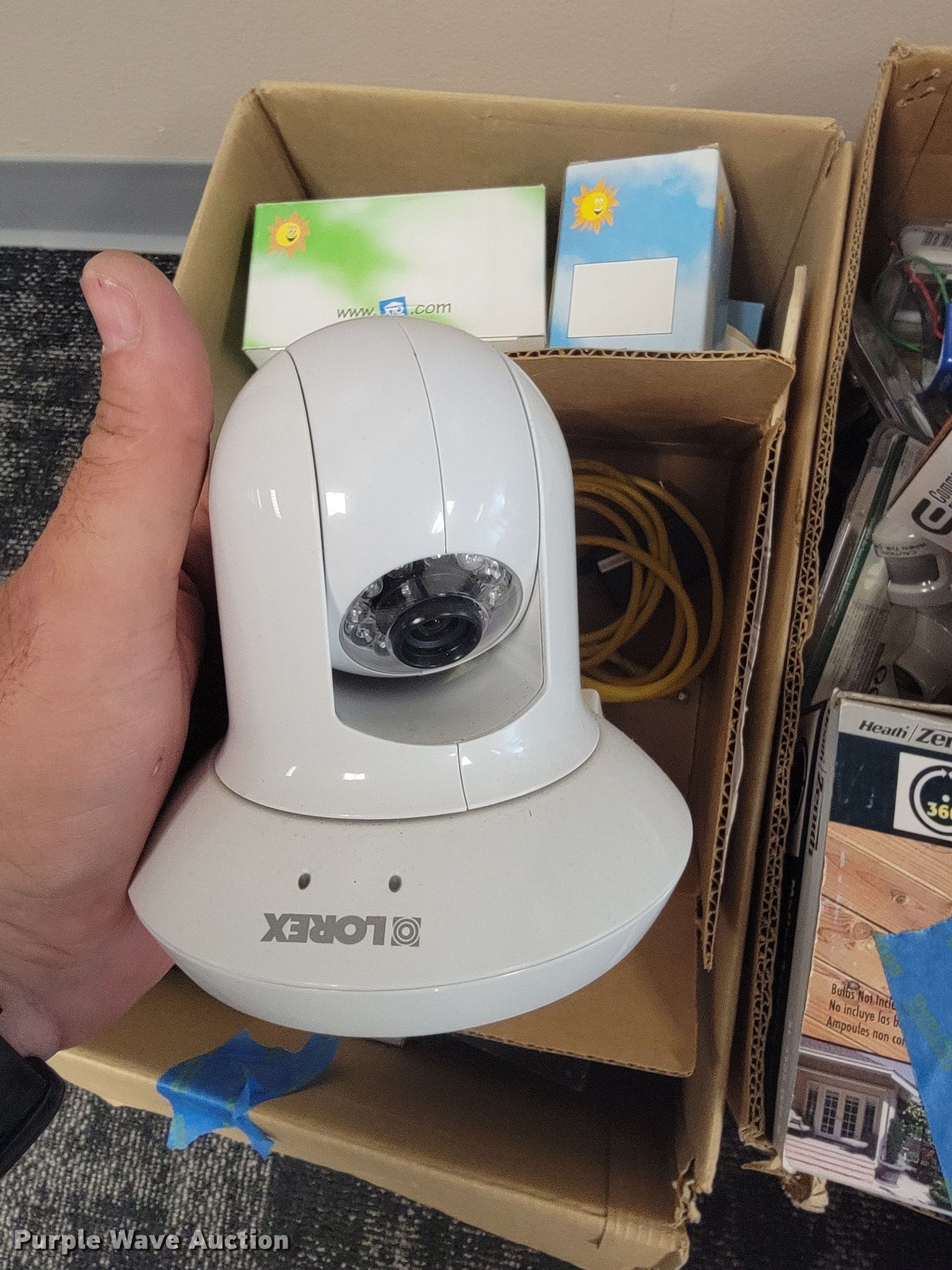Purple Wave is selling a used Building Materials in Kansas. This item is a Building materials with the following: (2) in-ceiling speakers, Barking dog alarm, Dual band responders, Thermostat, Approx. 50 dimmer switches, Lights, Outdoor outlet timers, Security cameras and more