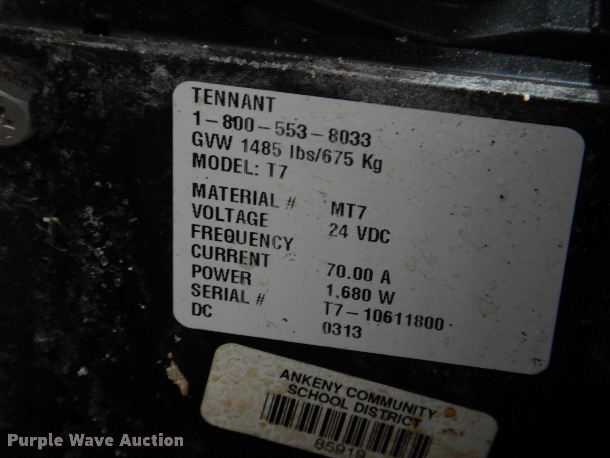 Purple Wave is selling a used All Other Household Items in Iowa. This item is a Tennant T7 floor scrubber with the following: Hours: 2,575 on meter, Serial: T7-10611800, Charger