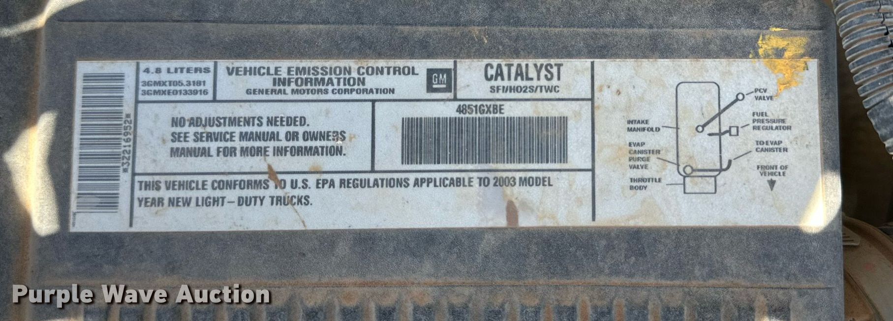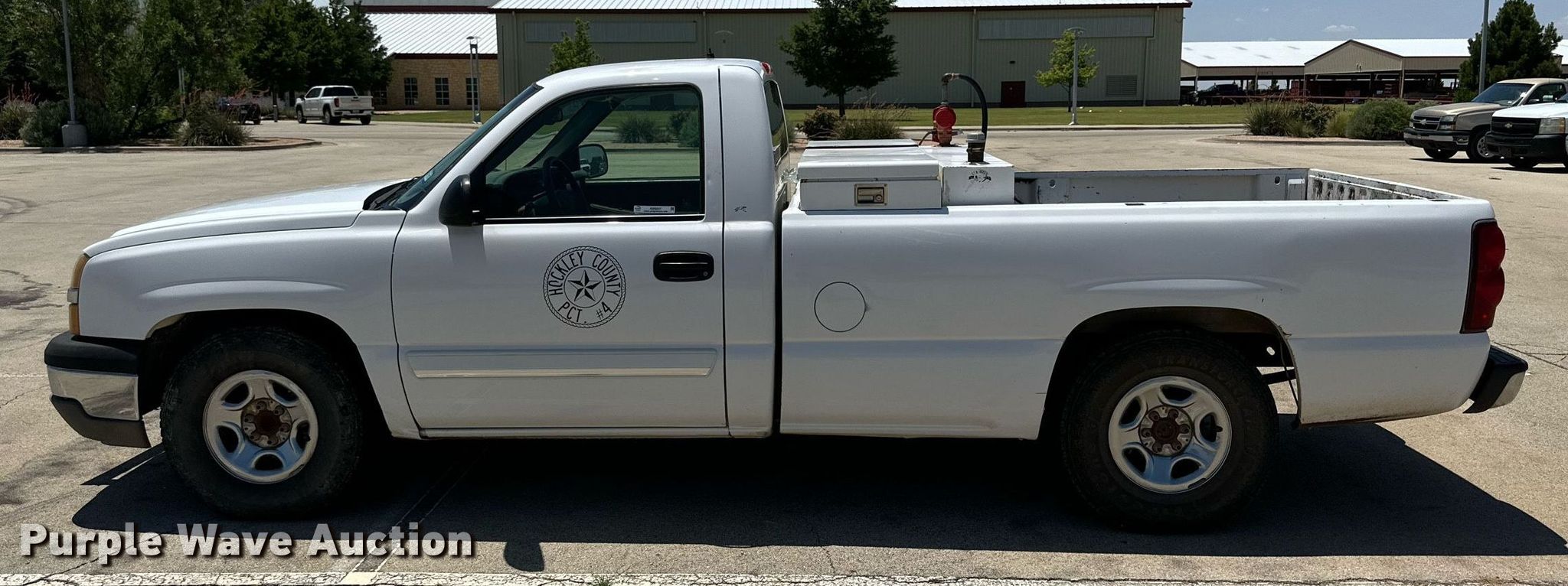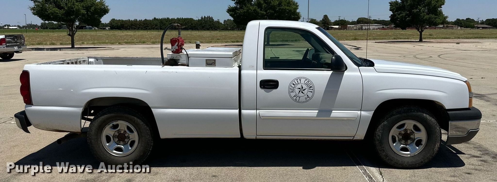2003 Chevrolet Silverado 1500 pickup truck. Miles: 186,378 on odometer, VIN: 1GCEC14V33Z216952. Engine Displacement: 4.8L V8 OHV, Cylinders: 8, Fuel type: Gas. Transmission Automatic. Interior AC, Heat, Power windows, Power locks. Features Auxiliary fuel tank , Fill Rite pump. Tires Size: 235/85R16. Notes Tailgate handle broken, Dash warning indicator: Check engine, ABS. Texas title. Title distribution may be delayed up to 14 days from verification of funds. Hockley County, TX. 2320 U.S. 385. Levelland, TX 79336