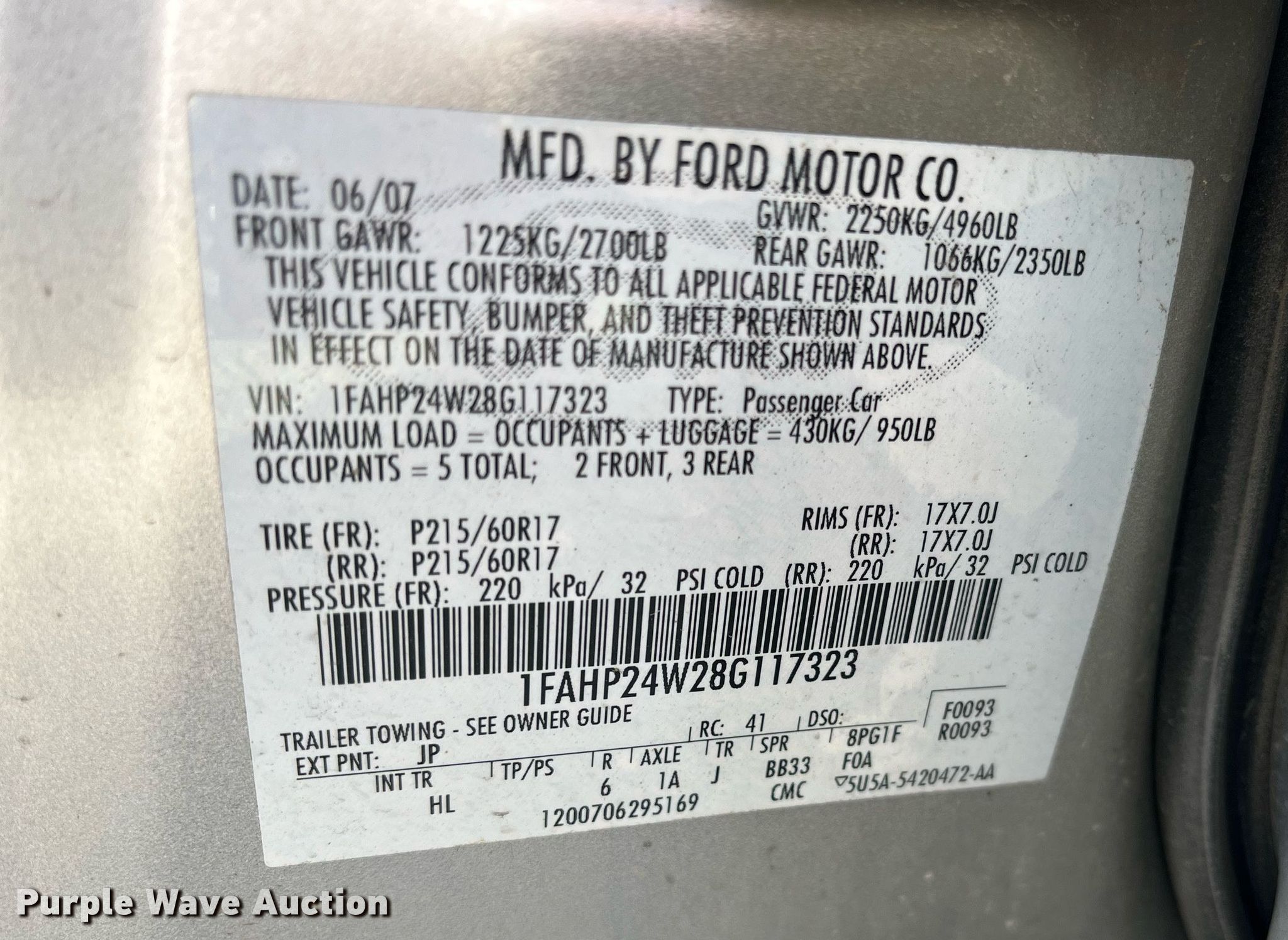 • VIN: 1FAHP24W28G117323