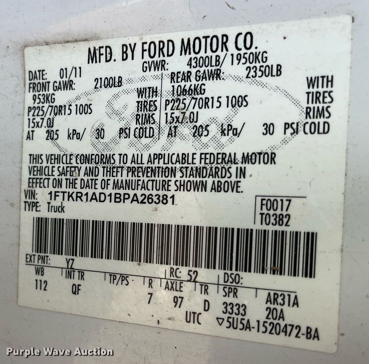 Purple Wave is selling a used Compact Pickup or Van in Oklahoma. This item is a 2011 Ford Ranger pickup truck with the following: Miles: 65,020 on odometer, VIN: 1FTKR1AD1BPA26381, Unit #: 709