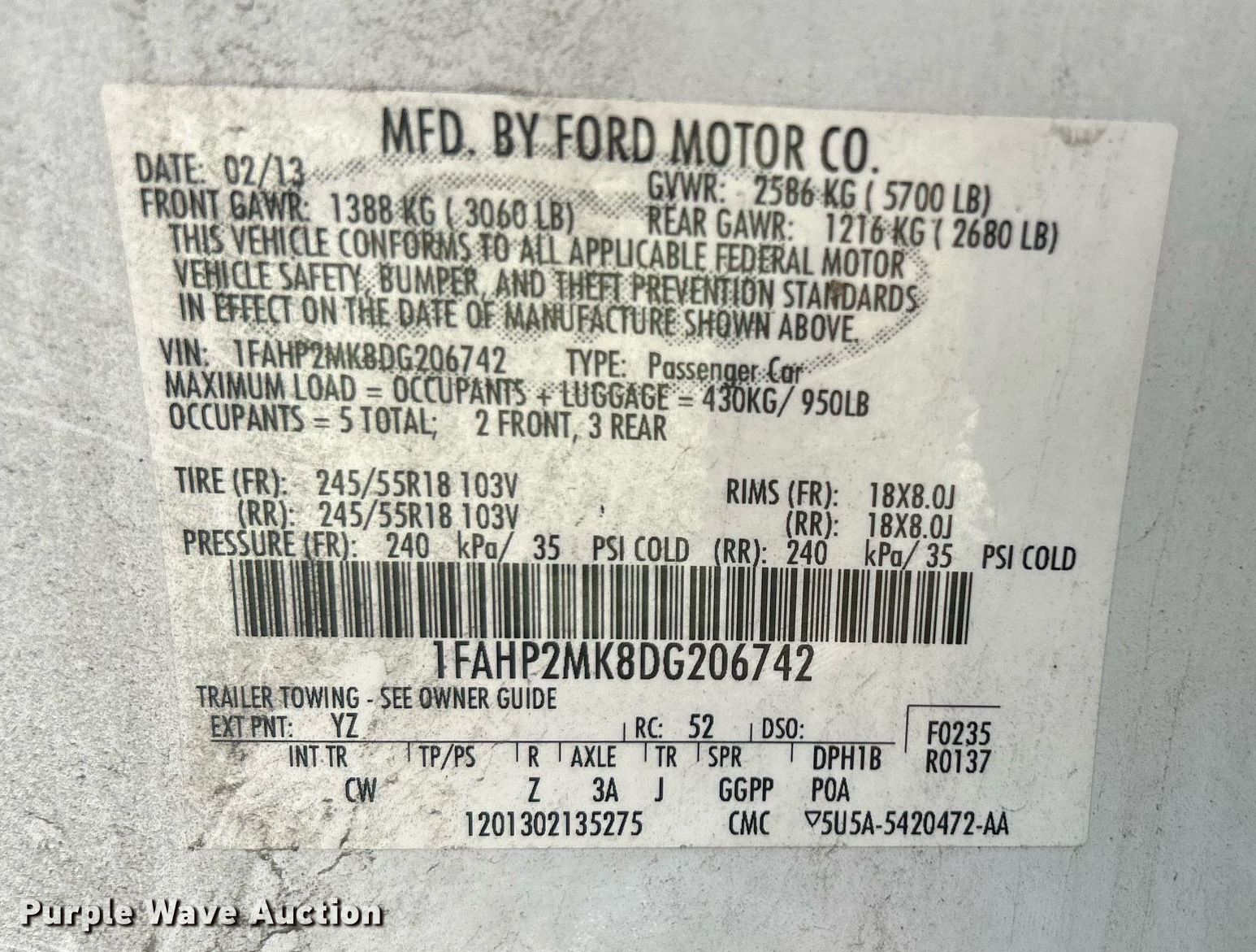2013 Ford Taurus Police Interceptor. Miles: 137,732 on odometer, VIN: 1FAHP2MK8DG206742, Unit #: 736. Engine Displacement: 3.7L V6 DOHC, Cylinders: 6, Fuel type: Gas. Transmission Automatic. Interior AC, Heat, Seat: Power driver, Power windows, Power locks, Cruise control. Tires Size: 245/55R18. Notes Dead battery, Center console missing, No key fob. Oklahoma title. Seller is a government entity who will be assigning and distributing the title. Please contact the seller for distribution questions.. Title distribution may be delayed up to 30 days from verification of funds. City of Tulsa. 108 N Trenton Ave. Tulsa, OK 74120