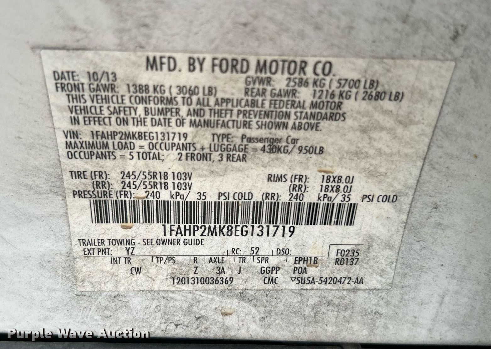 2014 Ford Taurus Police Interceptor. Miles: 123,838 on odometer, VIN: 1FAHP2MK8EG131719, Unit #: 735. Engine Displacement: 3.7L V6 DOHC, Cylinders: 6, Fuel type: Gas. Transmission Automatic. Interior AC, Heat, Seat: Power driver, Power windows, Power locks, Cruise control. Tires Size: 245.55R18. Notes Dead battery, Center console missing. Oklahoma title. Seller is a government entity who will be assigning and distributing the title. Please contact the seller for distribution questions.. Title distribution may be delayed up to 30 days from verification of funds. City of Tulsa. 108 N Trenton Ave. Tulsa, OK 74120