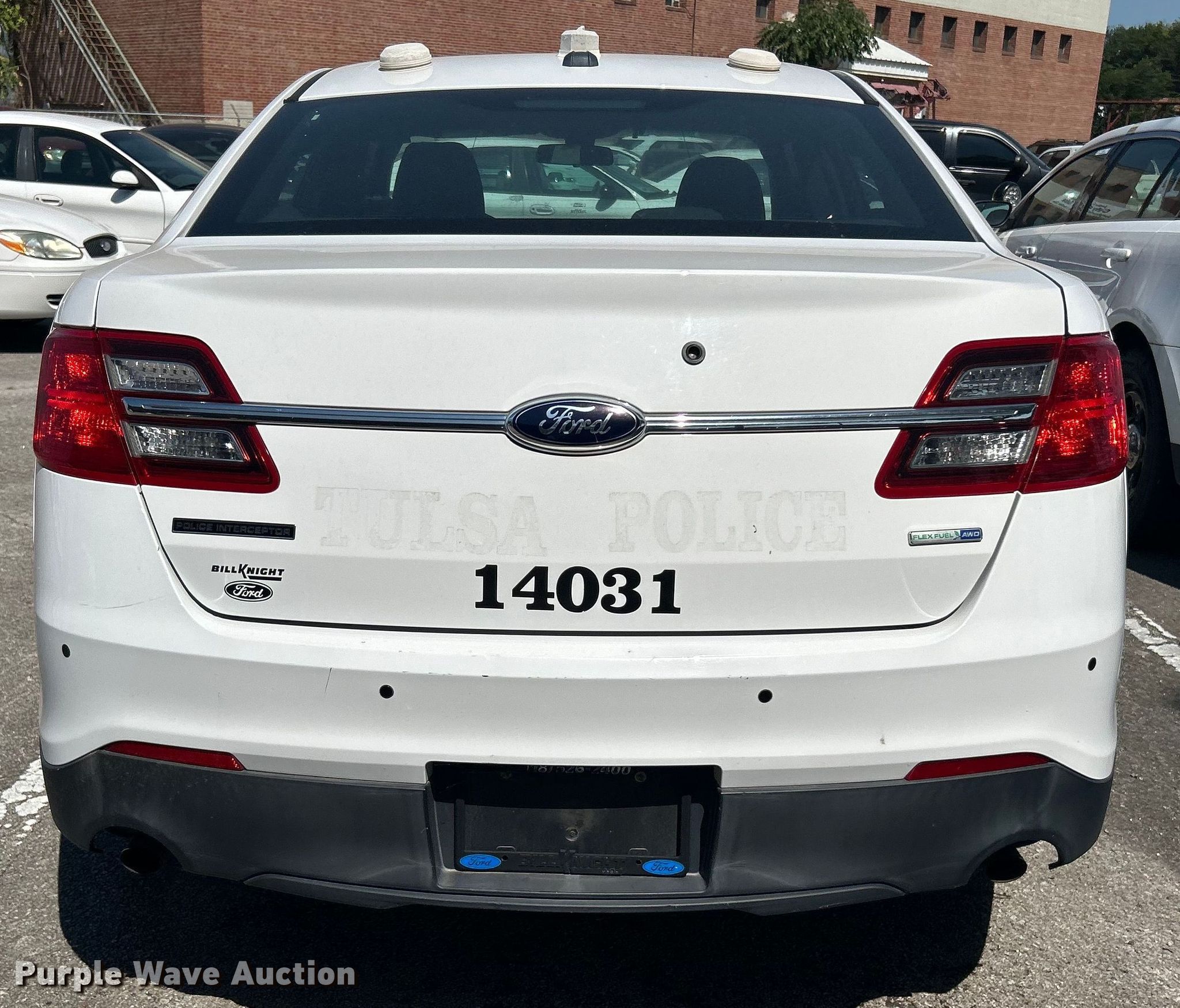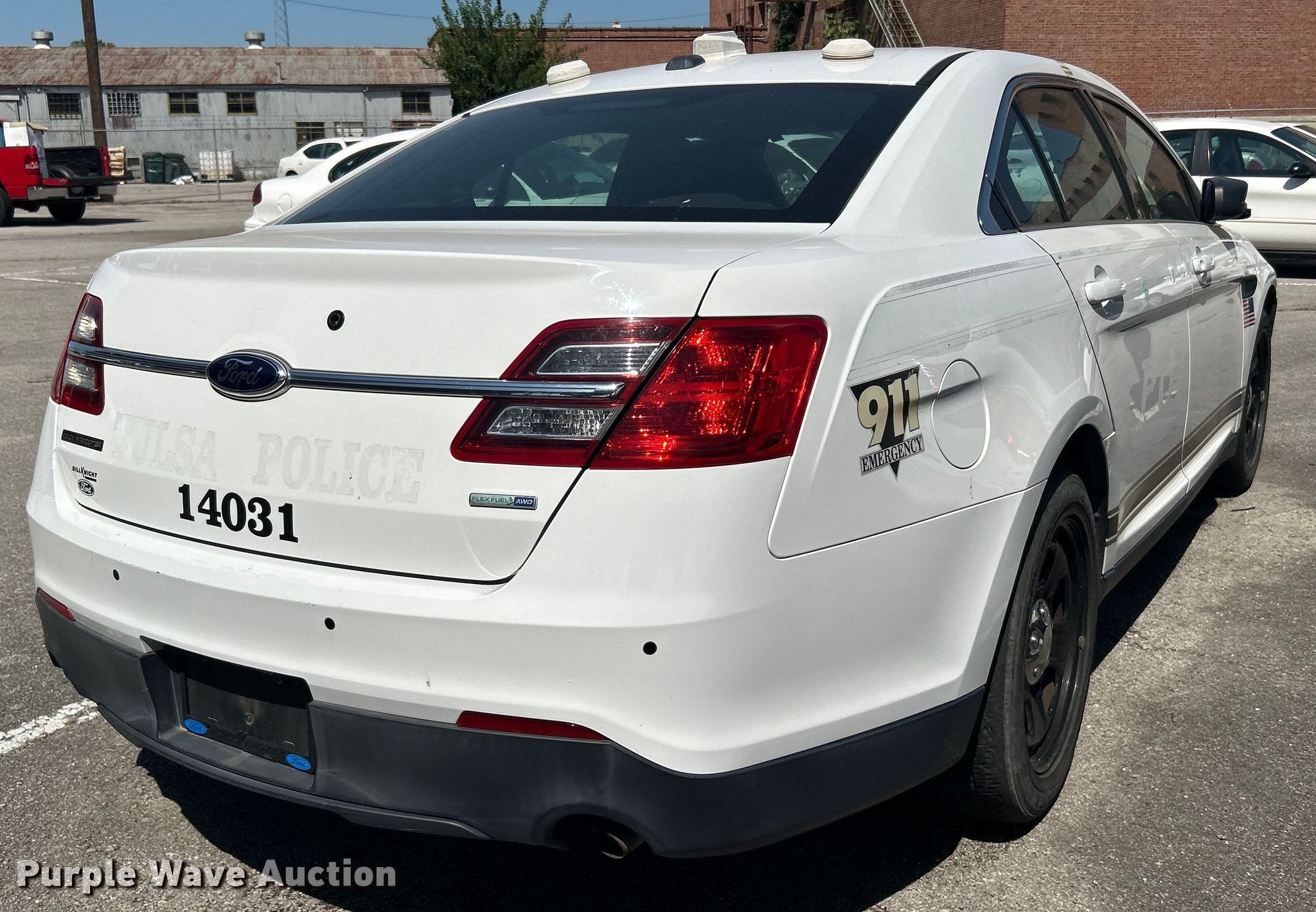 2014 Ford Taurus Police Interceptor. Miles: 132,154 on odometer, VIN: 1FAHP2MKXEG131754, Unit #: 732. Engine Displacement: 3.7L V6 DOHC, Cylinders: 6, Fuel type: Gas. Transmission Automatic. Interior AC, Heat, Seat: Power driver, Power windows, Power locks, Cruise control. Tires Size: 235/55R18. Notes Dead battery. Oklahoma title. Seller is a government entity who will be assigning and distributing the title. Please contact the seller for distribution questions.. Title distribution may be delayed up to 30 days from verification of funds. City of Tulsa. 108 N Trenton Ave. Tulsa, OK 74120