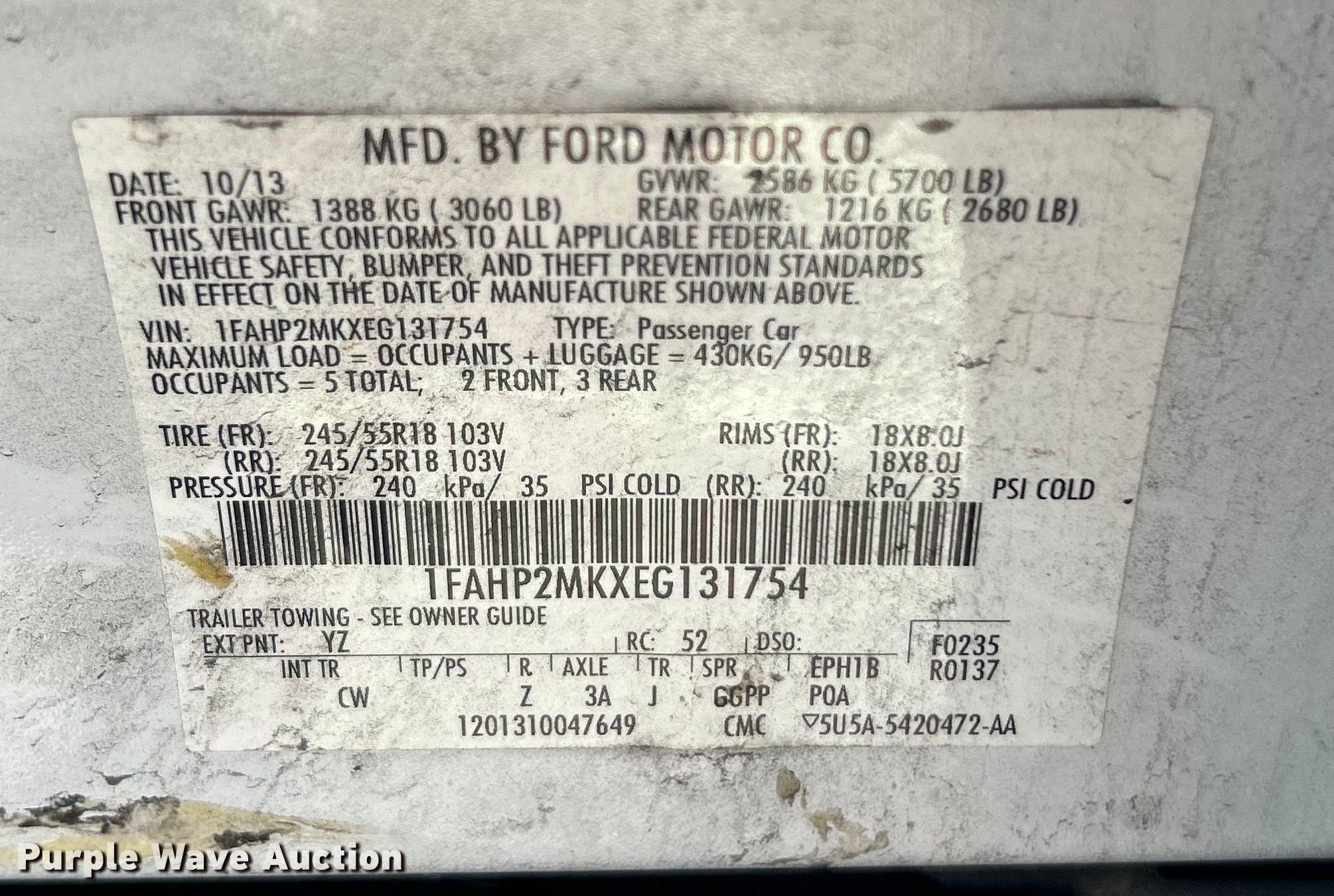 • VIN: 1FAHP2MKXEG131754