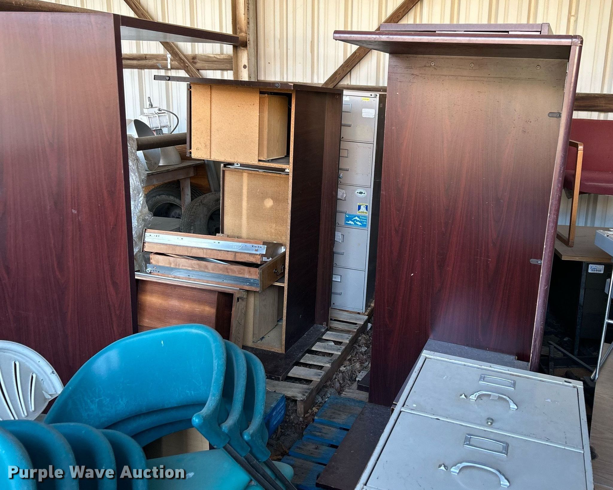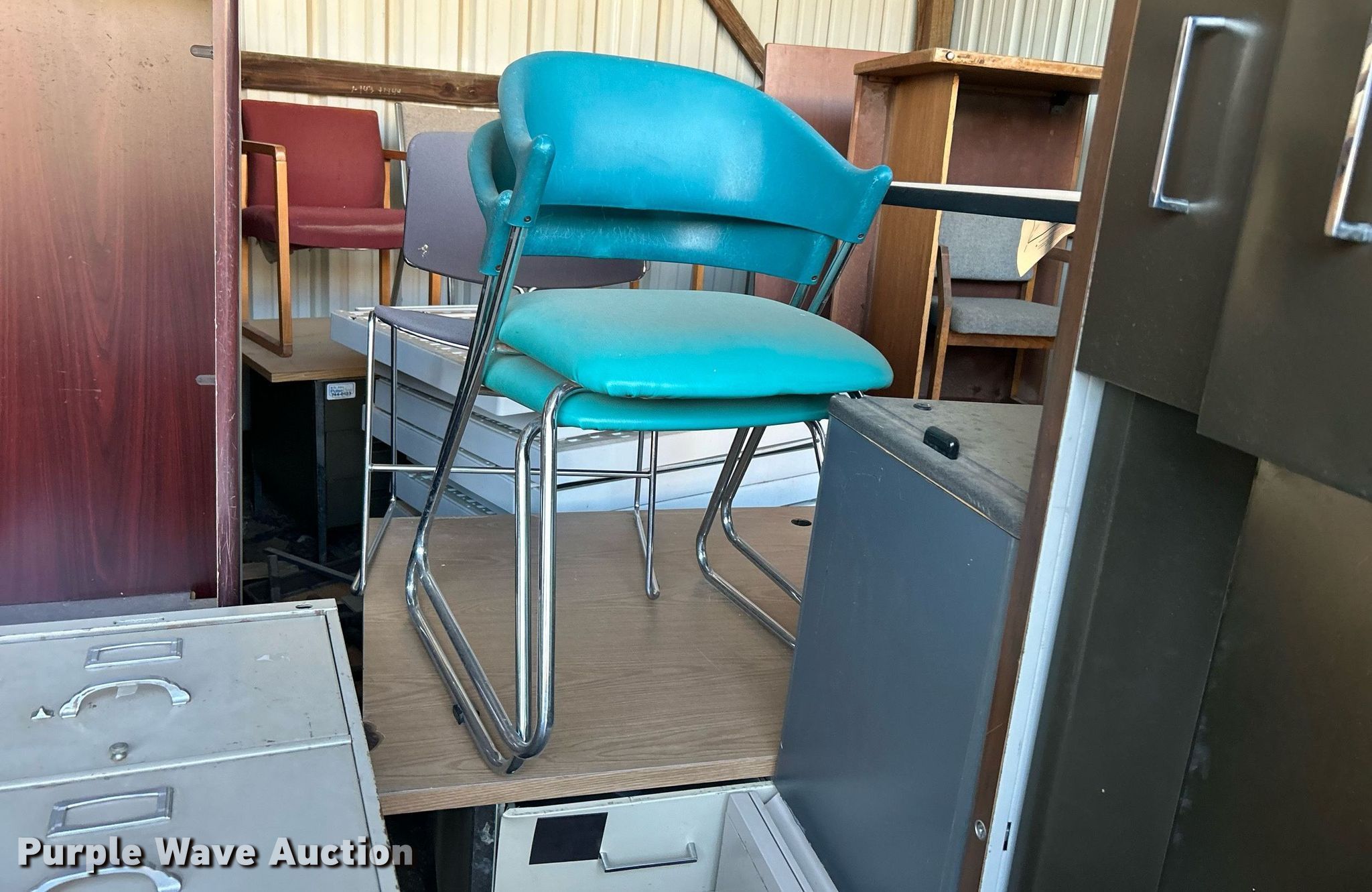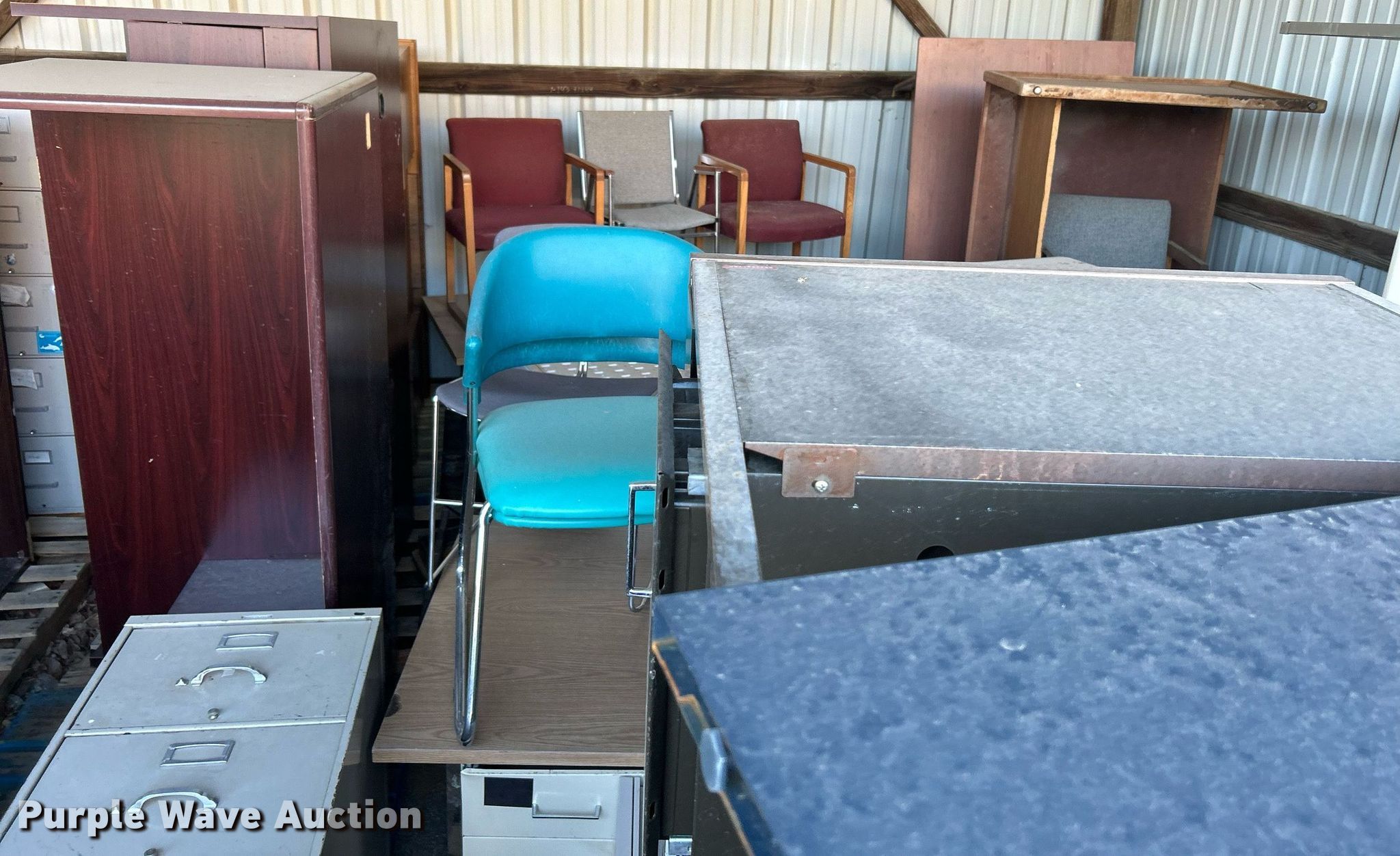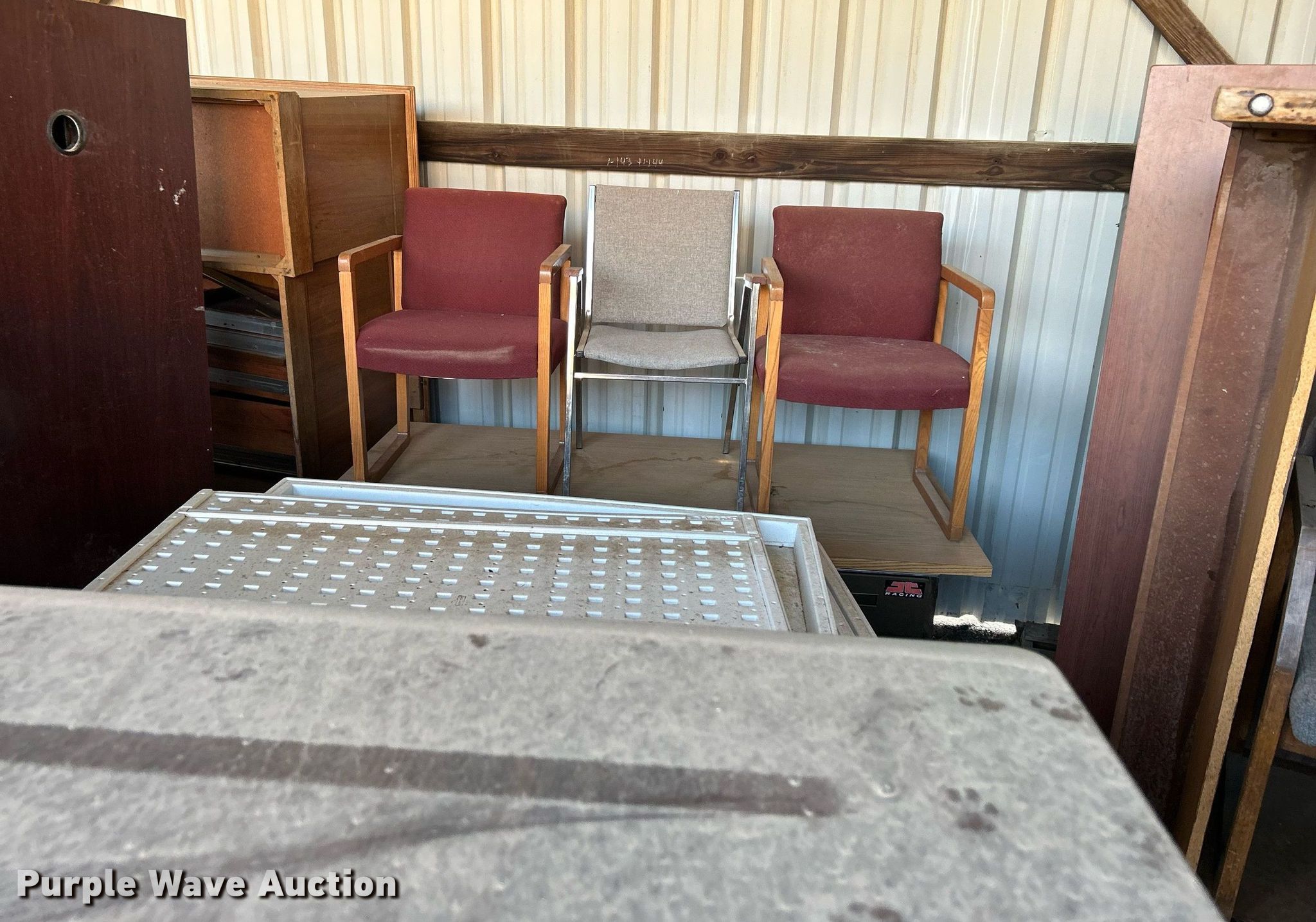 Purple Wave is selling a used Furniture in Oklahoma. This item is a Furniture with the following: Unit #: 200, Desks, Folding tables, Shelves, Chairs
