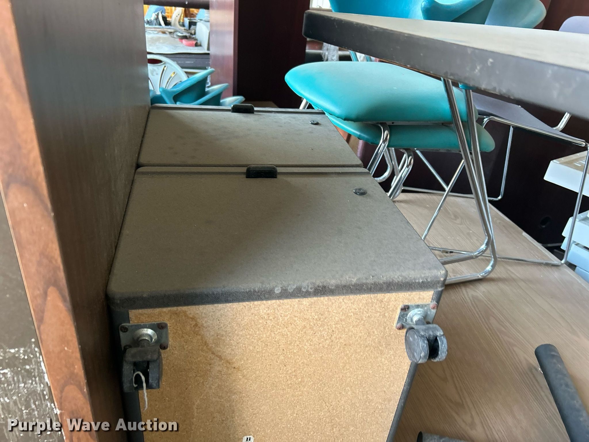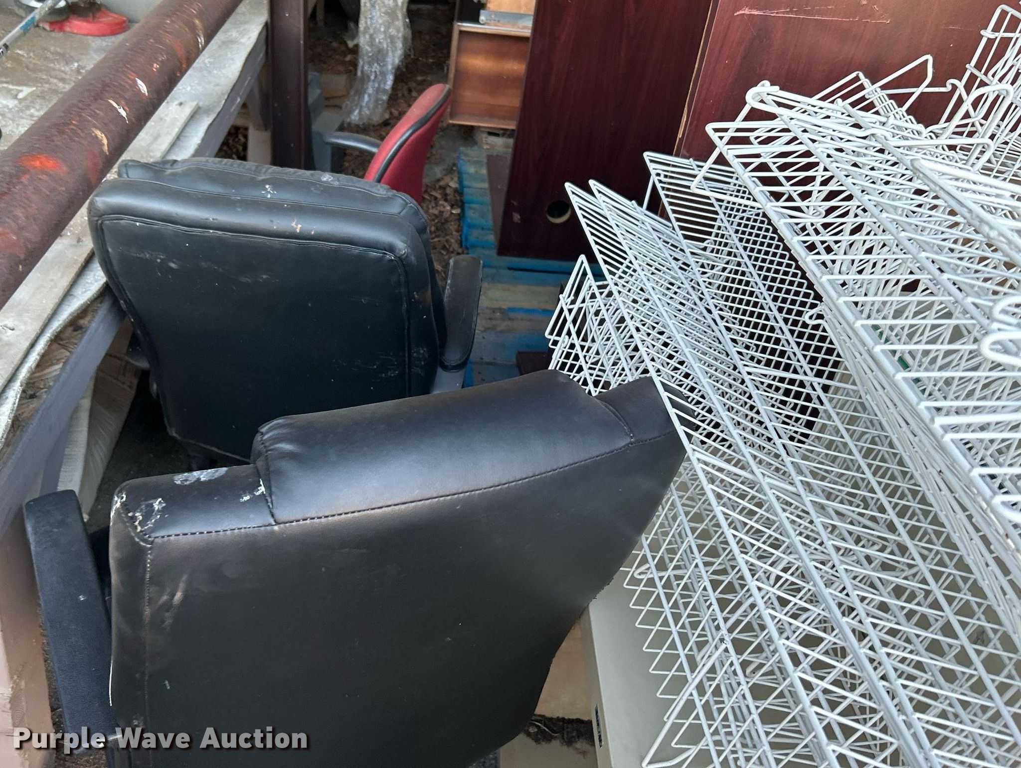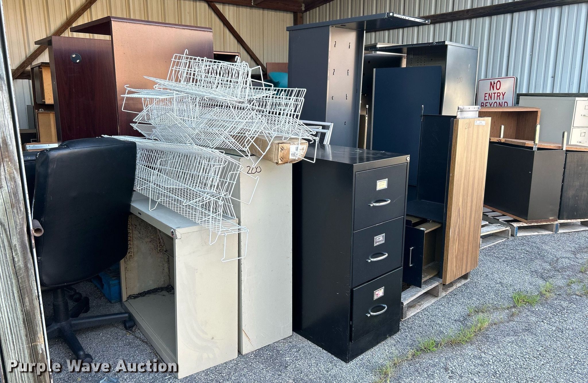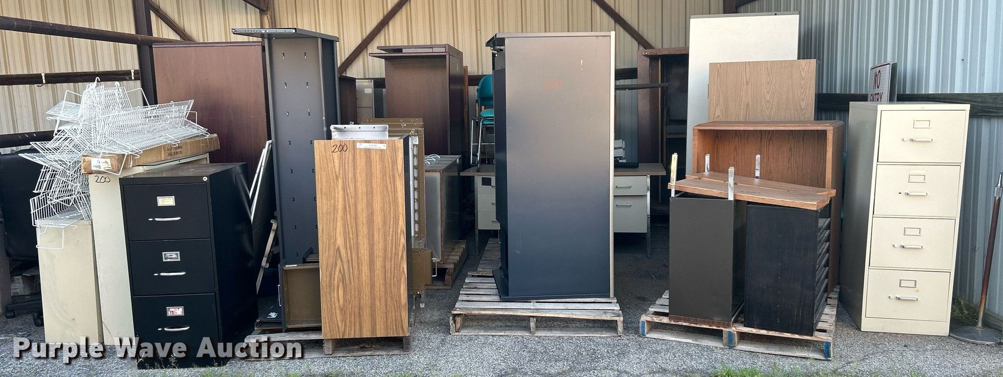 Purple Wave is selling a used Furniture in Oklahoma. This item is a Furniture with the following: Unit #: 200, Desks, Folding tables, Shelves, Chairs