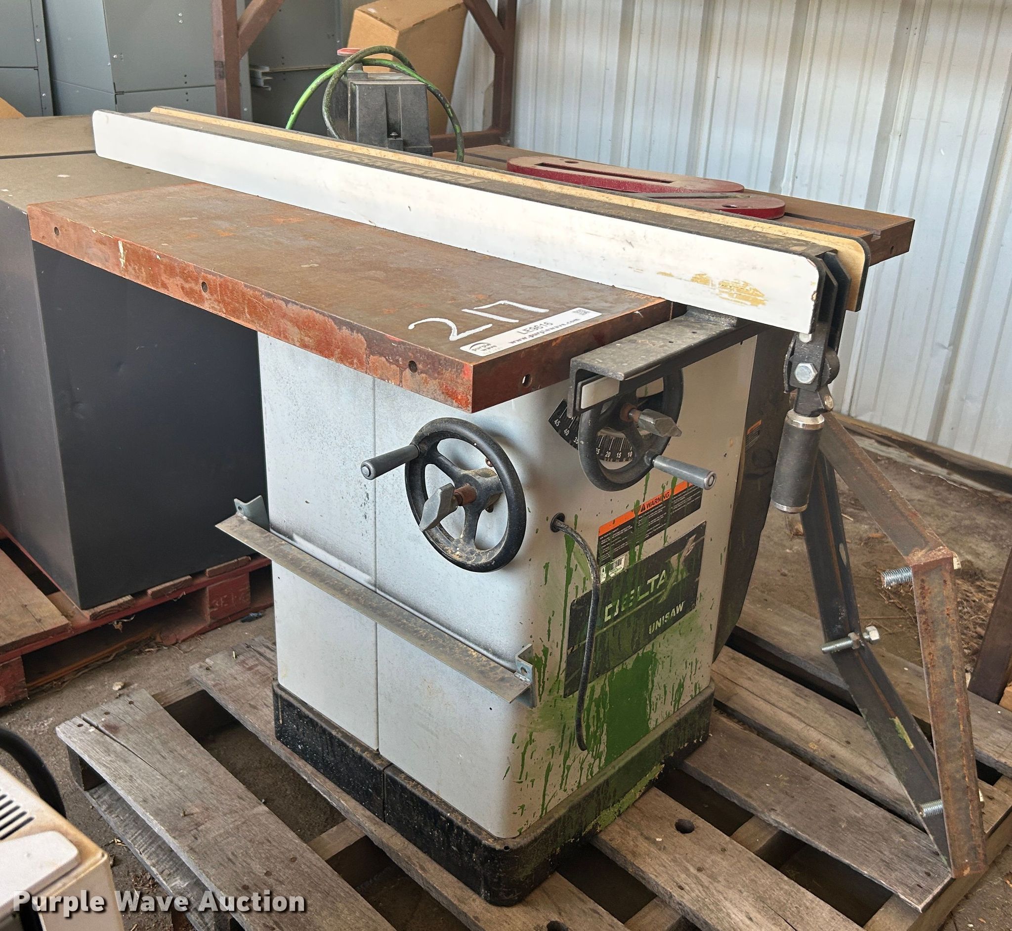 Purple Wave is selling a used Tools in Oklahoma. This item is a Delta unisaw with the following: Unit #: 217