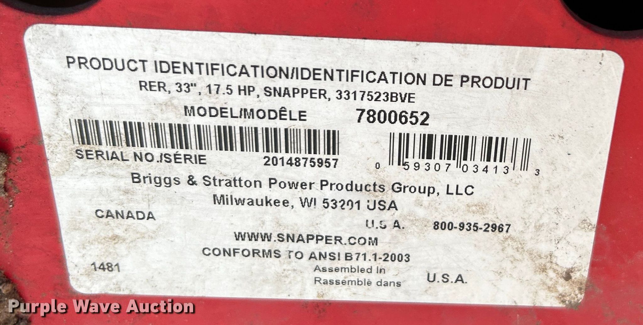 Purple Wave is selling a used Lawn Mower in Oklahoma. This item is a (3) Snapper lawn mowers with the following: Unit #: 209, Cutting widths:, (2) 33", 30"