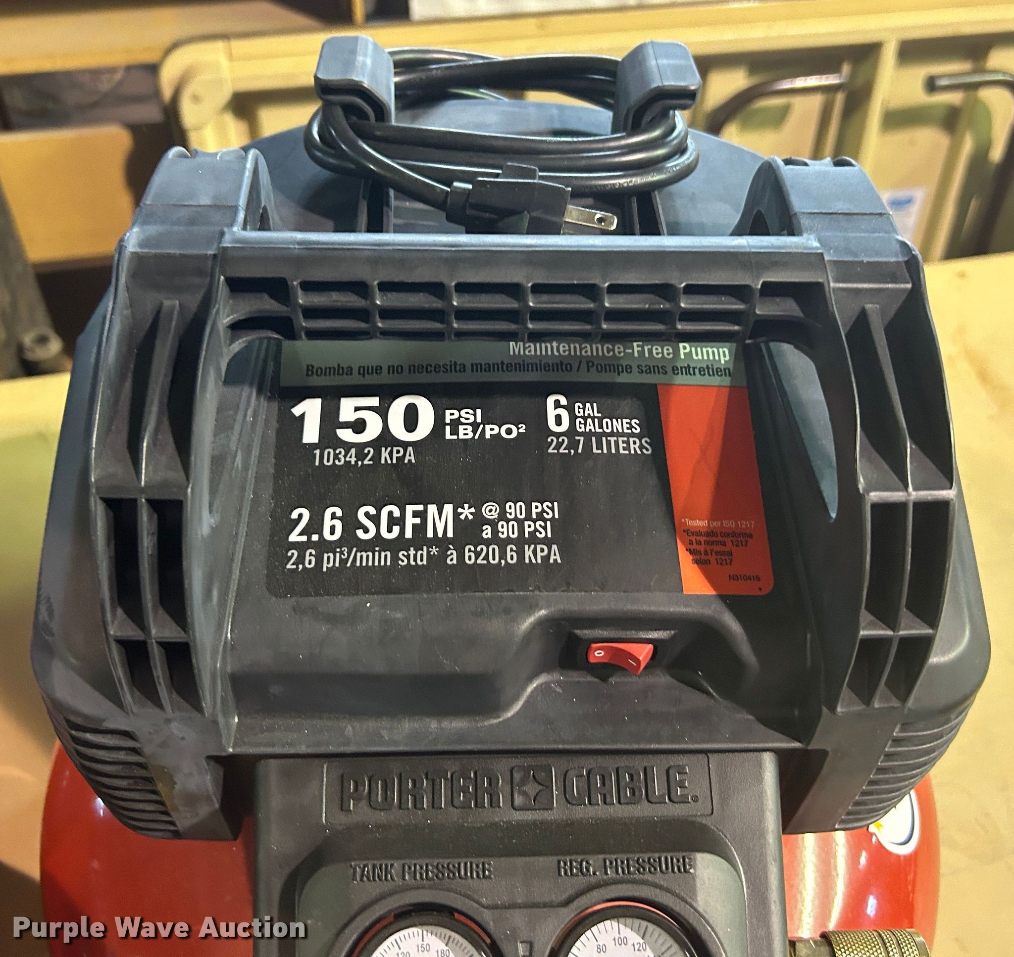 (2) Porter-Cable air compressors. Unit #: 2031. Electric motor. Features Air compressor PSI: 150, Tank capacity: 6 gallons. City of Tulsa. 108 N Trenton Ave. Tulsa, OK 74120