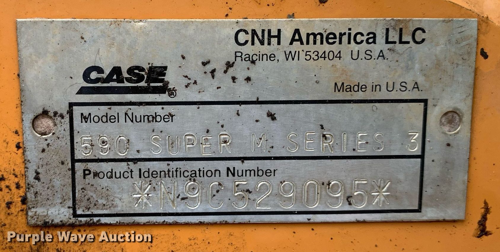 Purple Wave is selling a used Tractor Loader Backhoe in Texas. This item is a 2009 Case 590 Super M Series III backhoe with the following: Hours: 3,908 on meter, Serial: N9C529095