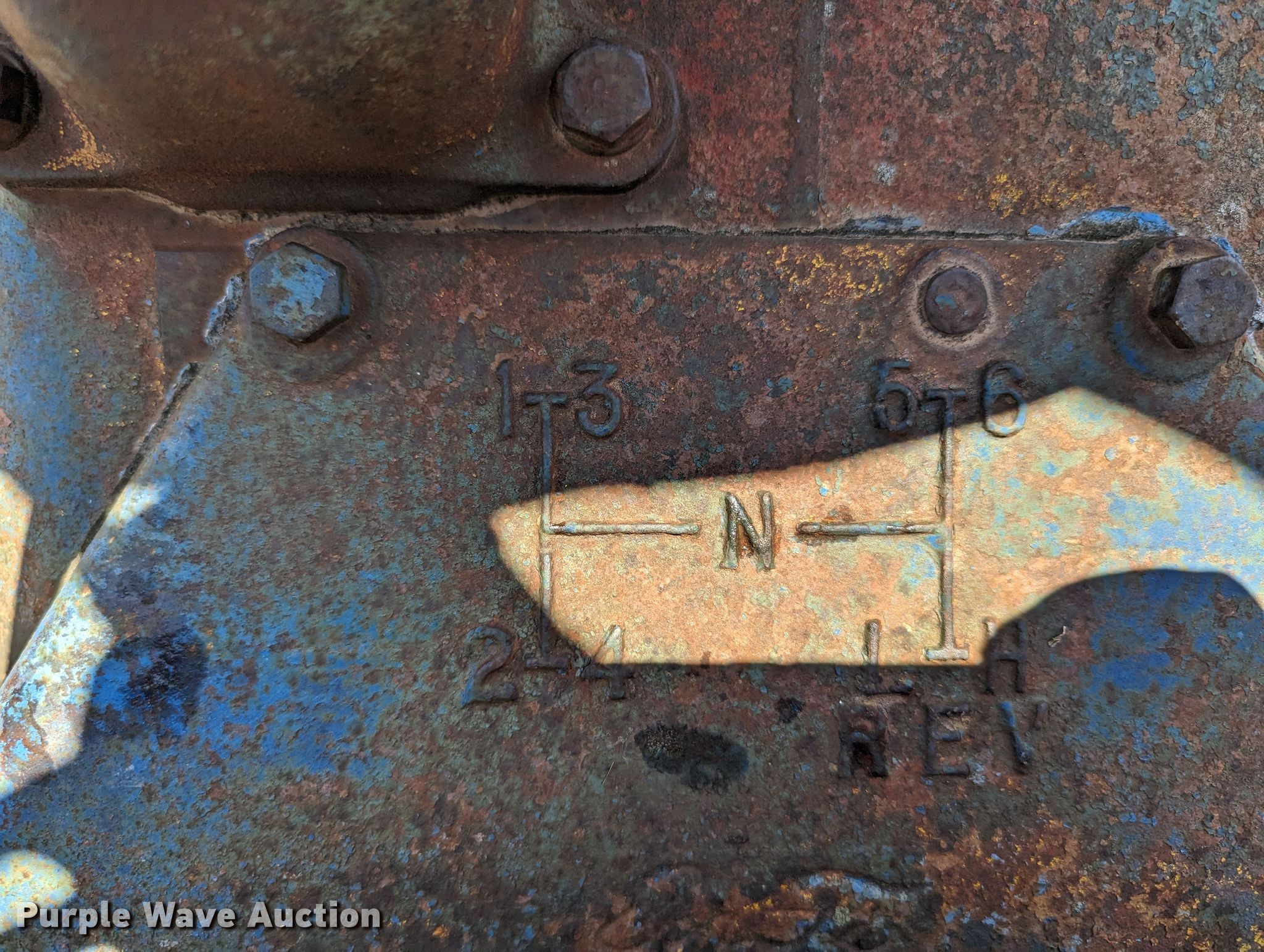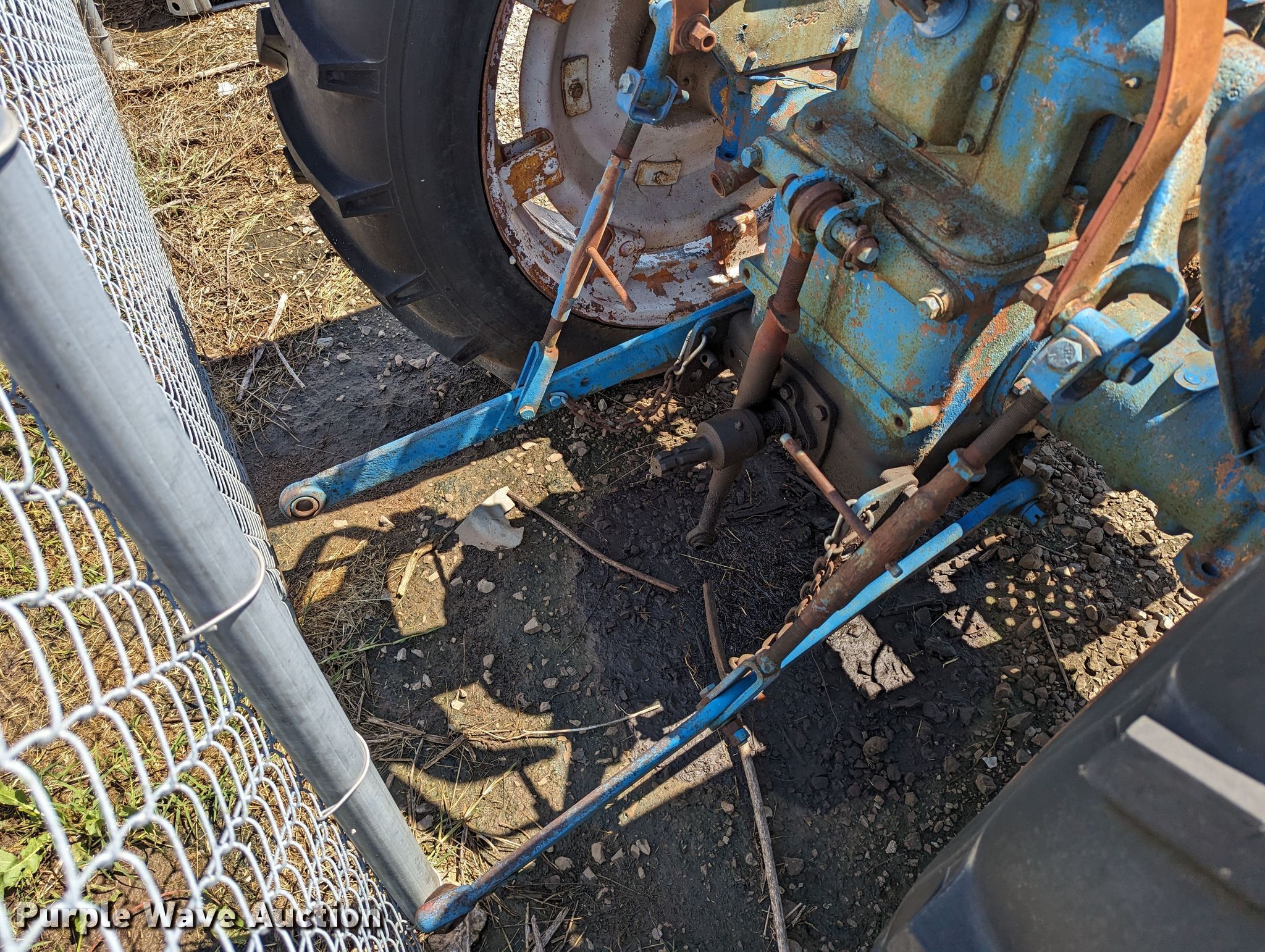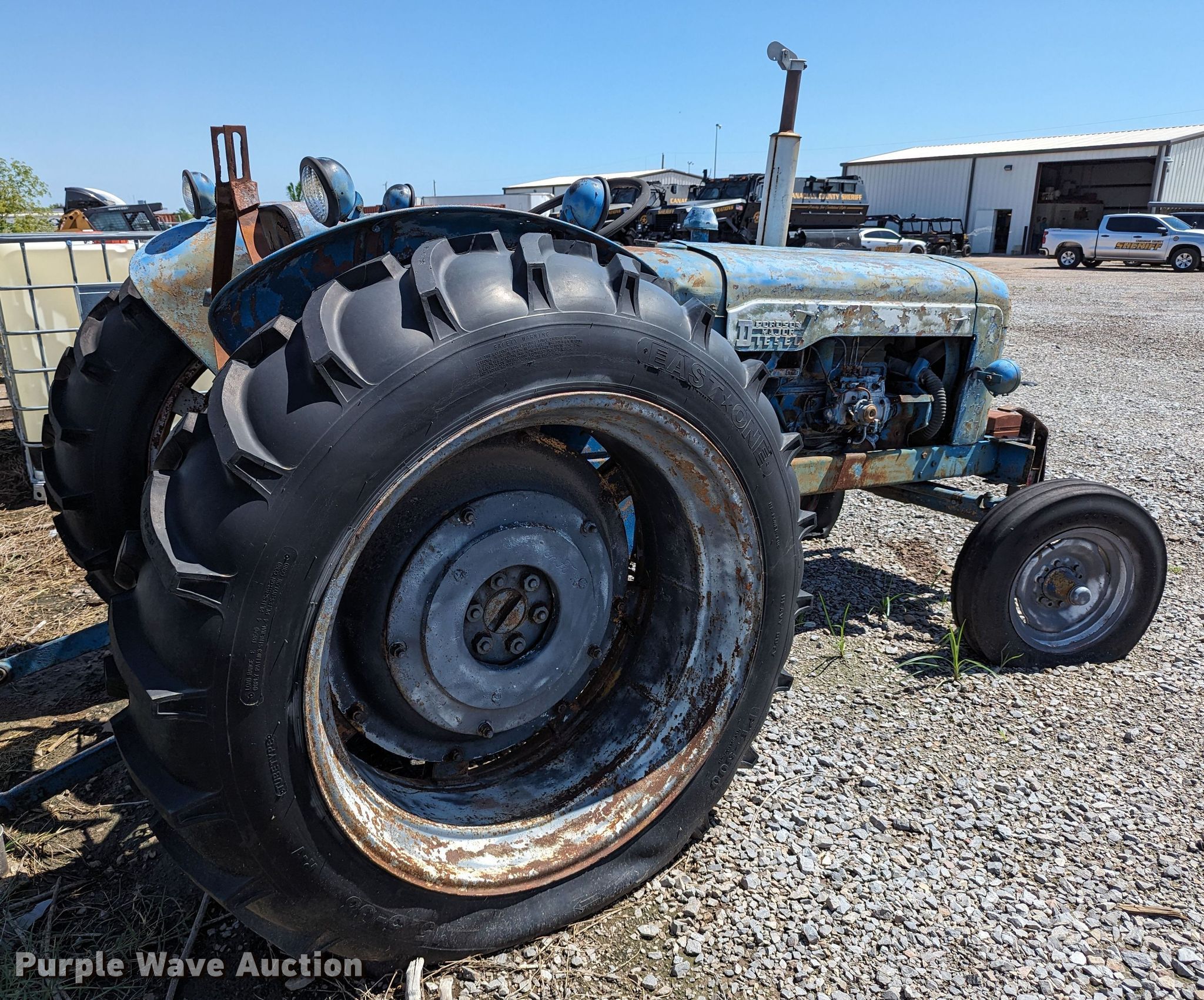 Fordson Major tractor. Serial: 1285775. Engine Cylinders: 4, Fuel type: Diesel. Transmission Manual, 6F - 2R. Features PTO: 540, Three point Top link, Hydraulic remote sets Rear: 1. Tires Front: 6.00-16, Rear: 15.5-38, Wheelbase: 80". Notes Unknown operating condition. Canadian County Sheriff's Office. 3850 Tl Moore Parkway. El Reno, OK 73036