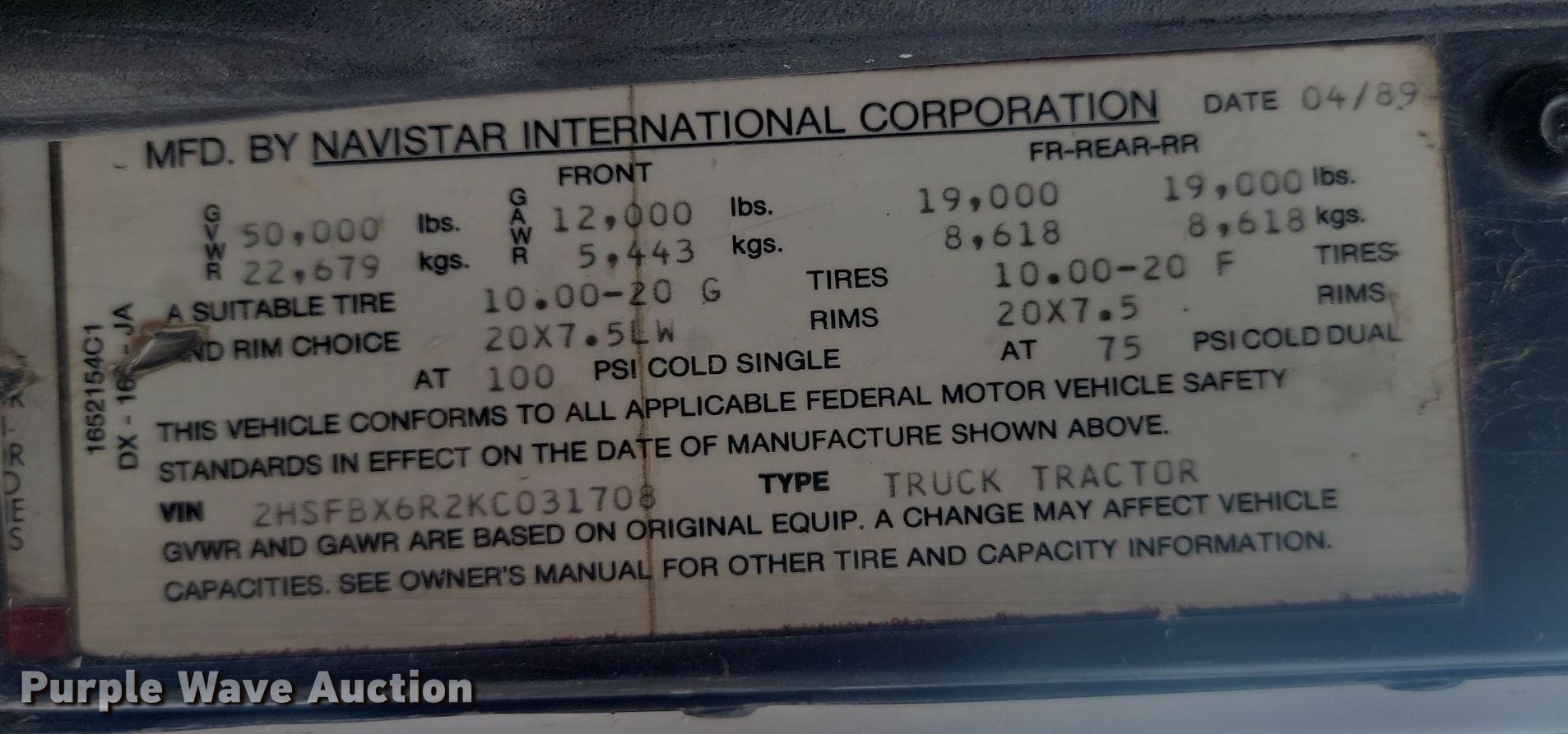 Purple Wave is selling a used Truck Tractor in Nebraska. This item is a 1989 International 9300 semi truck with the following: Miles: 231,677 on odometer, Actual mileage unknown, VIN: 2HSFBX6R2KC031708
