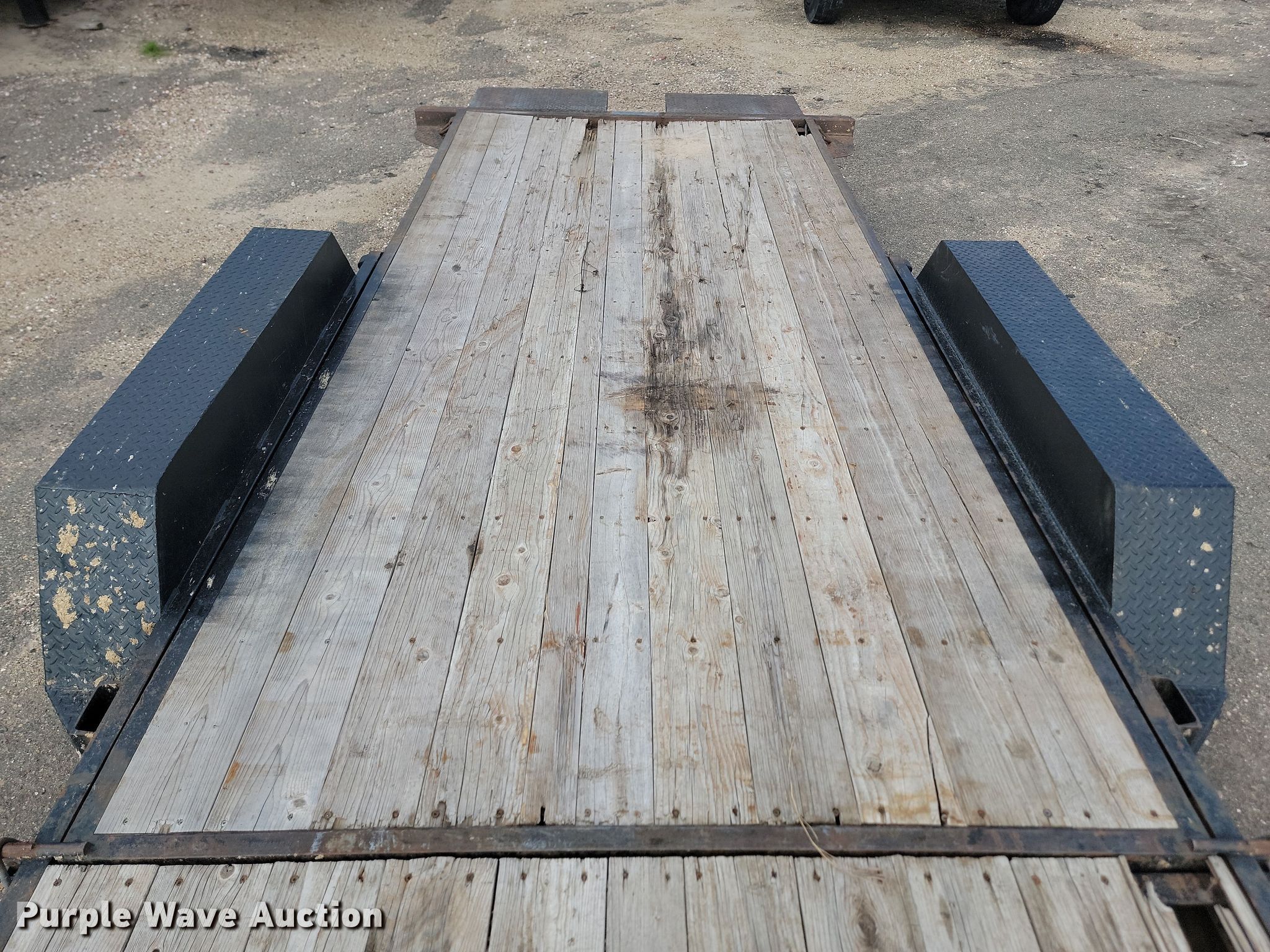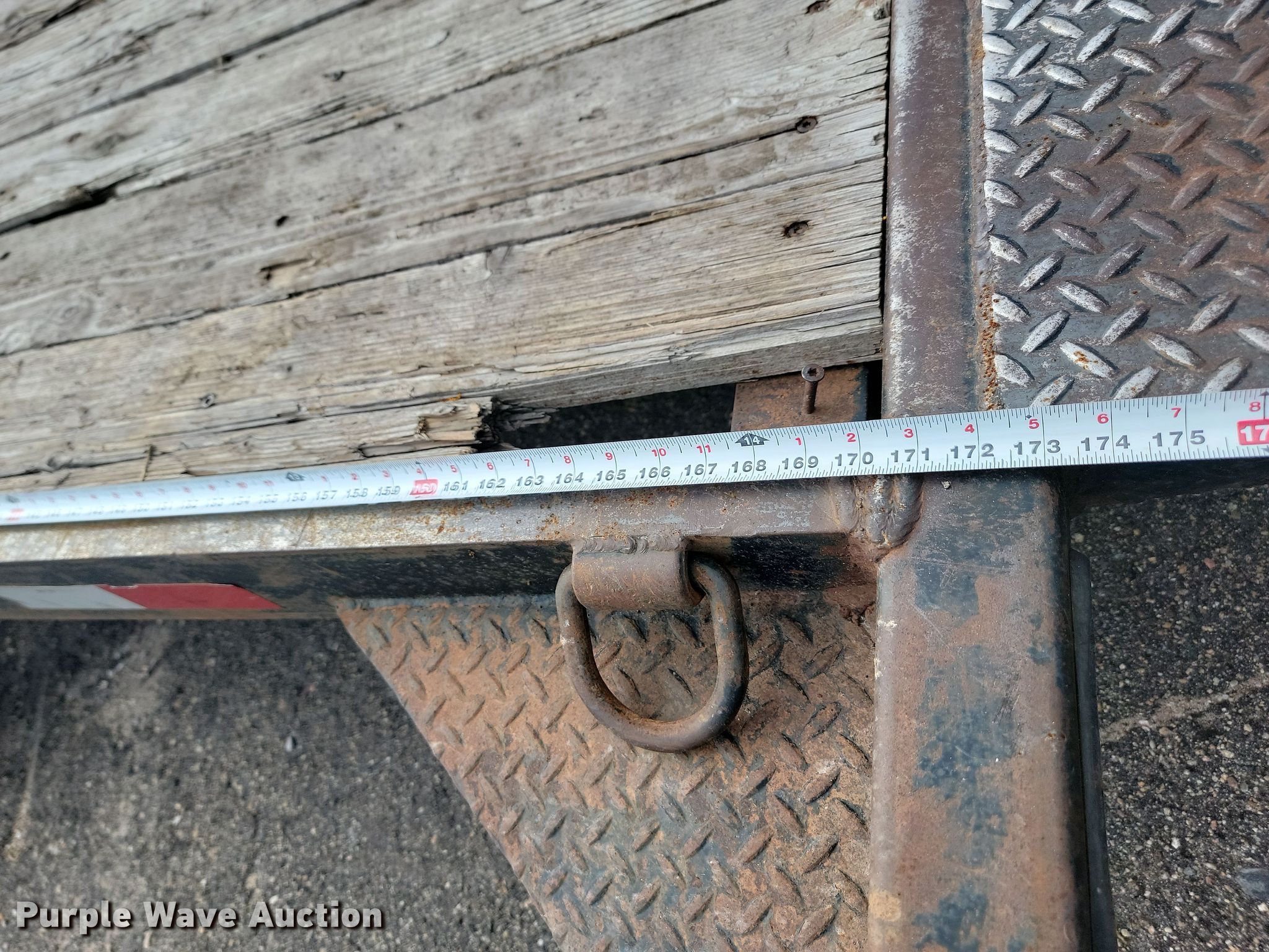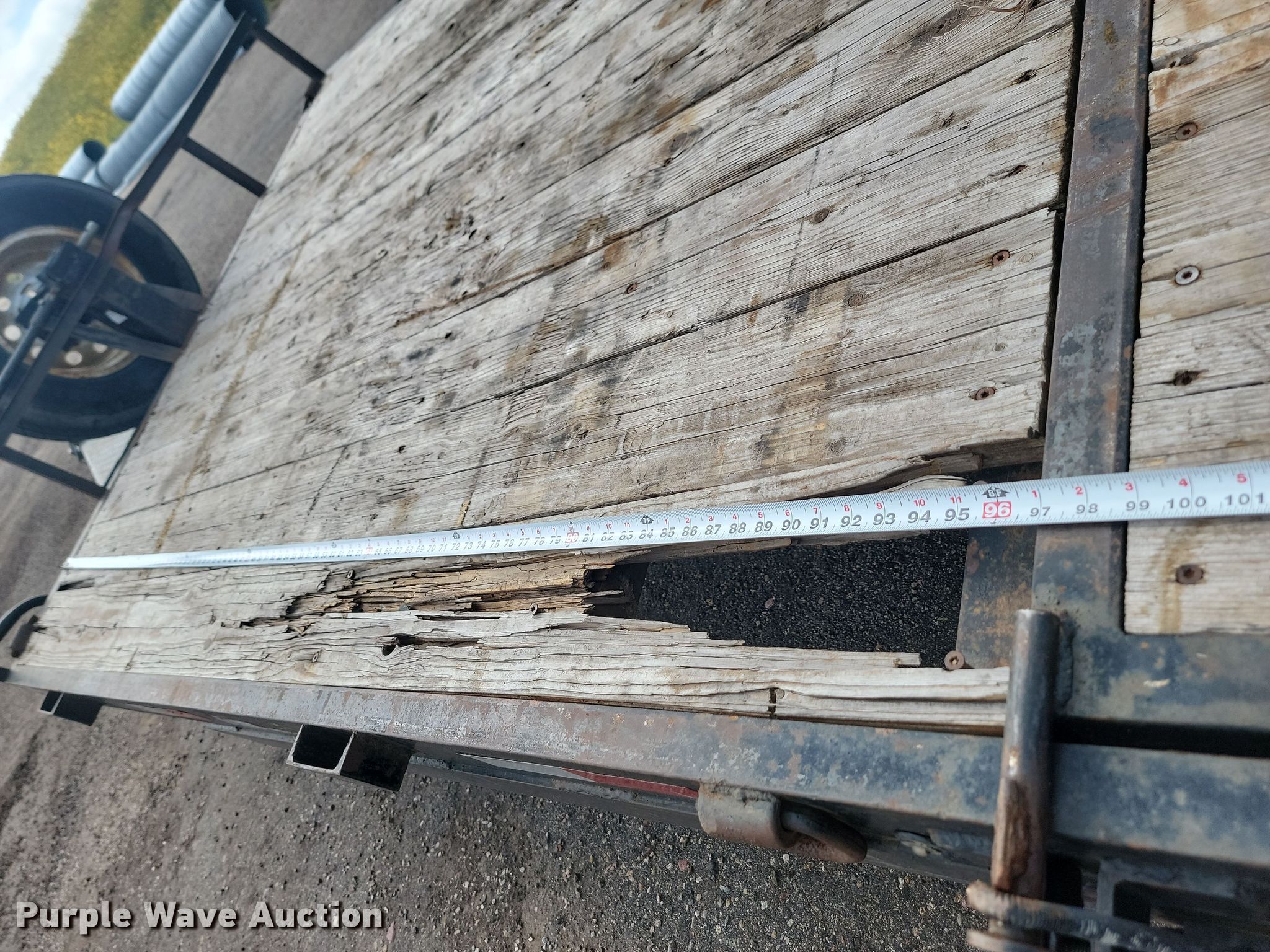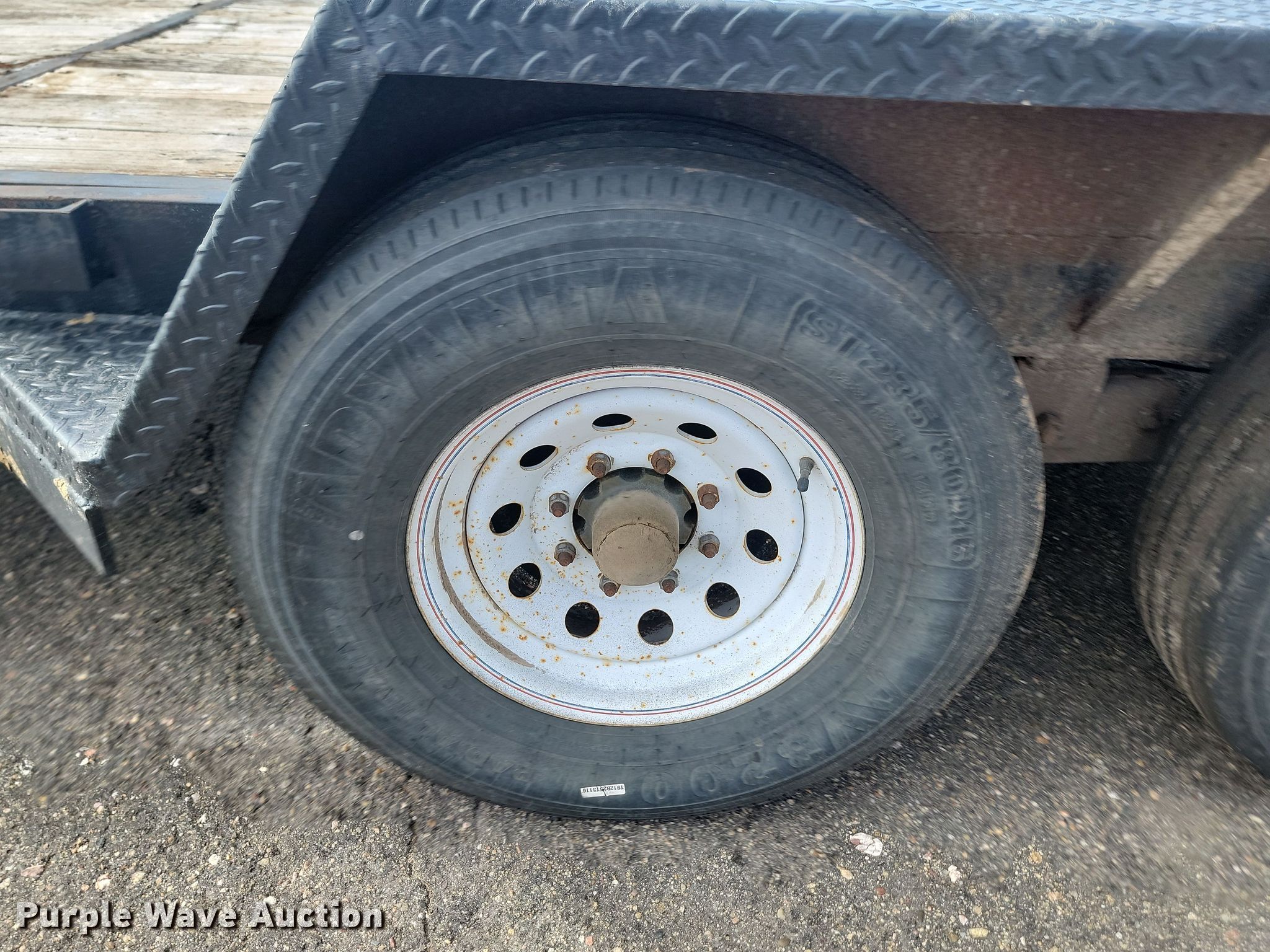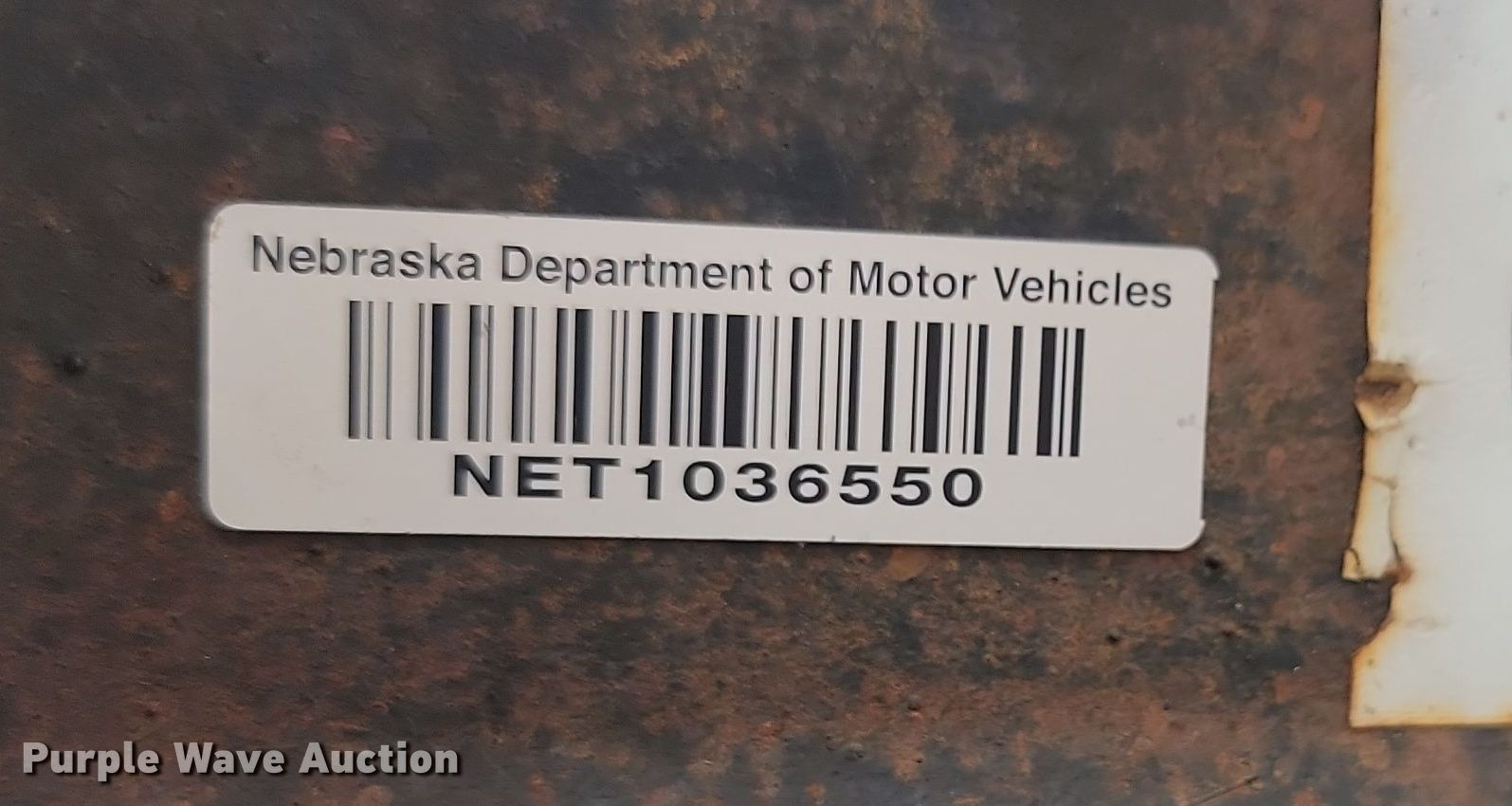 2016 Shop built tilt deck equipment trailer. VIN: NET1036550. Dimensions Overall: 30' L x 102" W, Deck: 22' L x 85" W, Top deck length: 8', Rear deck length: 14' 6". Features Deck type: Wood. Chassis Landing gear: Single, Suspension: Spring, Brakes: Electric, Axles: Tandem. Tires Steel wheels, Size: ST235/80R16. Nebraska title. Title distribution may be delayed up to 14 days from verification of funds. Cherry County Road Dept.. 85001 Nebraska 97. Mullen, NE 69152