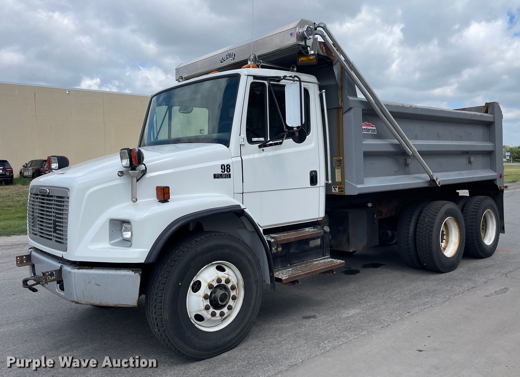 2003 Freightliner FL80 dump truck. Miles: 145,676 on odometer, Hours: 10,162 on meter, VIN: 1FVHBXBVX3HK77845. Engine Cummins ISB 245, Displacement: 5.9L, Cylinders: 6, Fuel type: Diesel. Transmission Automatic. Chassis Double frame, Axles: Tandem, Differential lock: Inter-axle, Suspension: Spring over walking beam, Brakes: Air, PTO, GVWR: 58,000 lbs FAWR: 18,000 lbs, IAWR: 20,000 lbs, RAWR: 20,000 lbs. Interior Heat, Cruise control. Features Dump bed Henderson 14x44xMKE, 14' L x 96" W, Side height: 44", Bed type: Steel, Roll tarp, Ram: Single , End gate: Air operated. Tires Front: 315/80R22.5, Rear: 11R22.5. Kansas title. Title distribution may be delayed up to 14 days from verification of funds. City of Hutchinson. Hutchinson, KS 67501