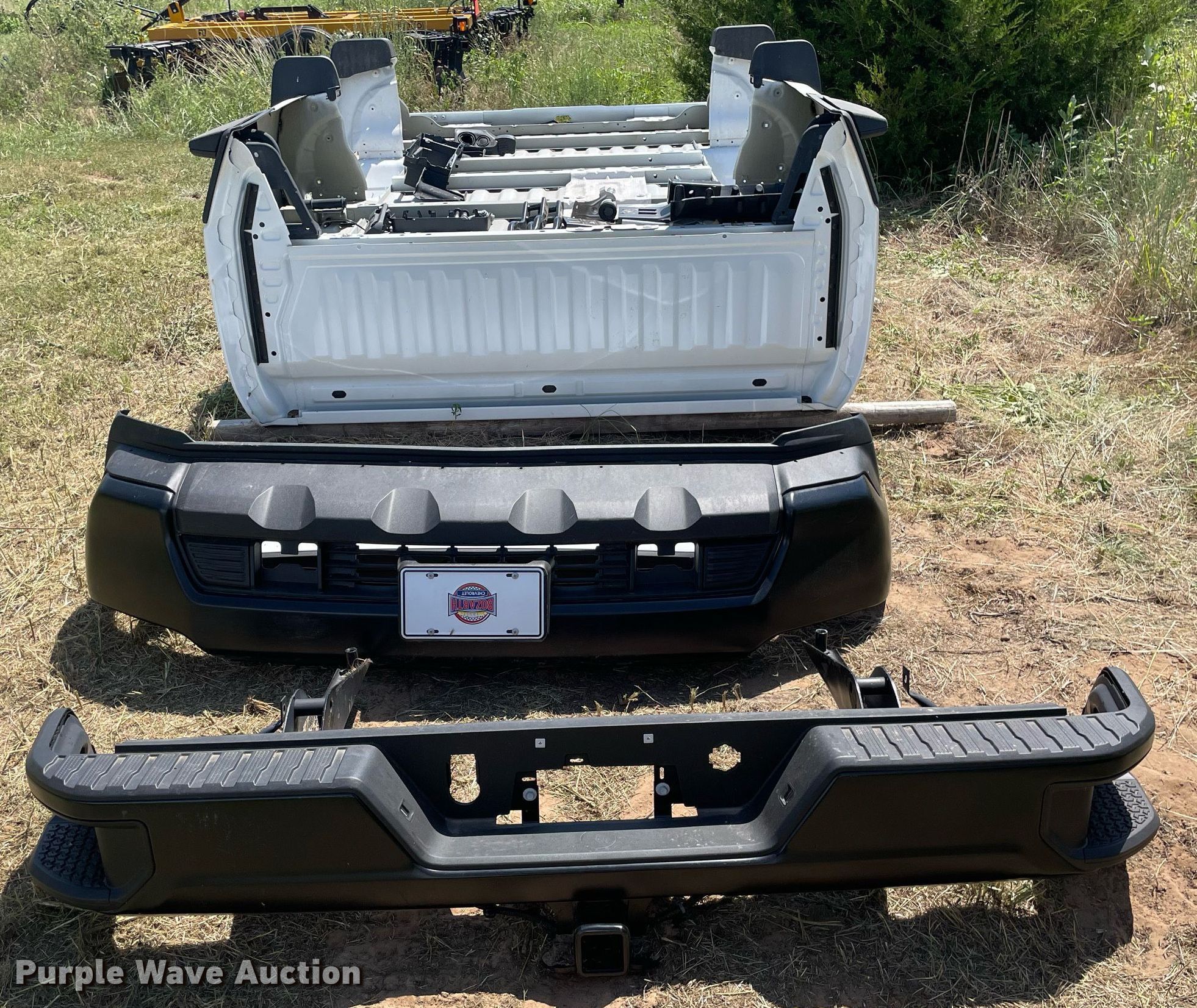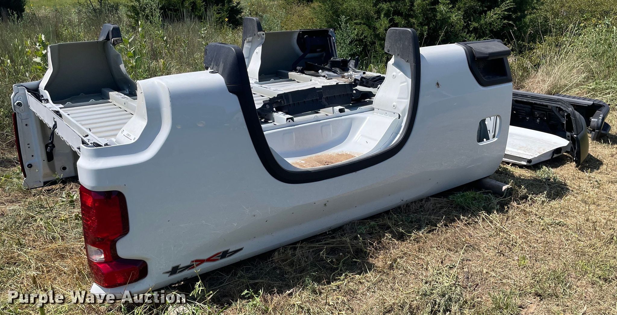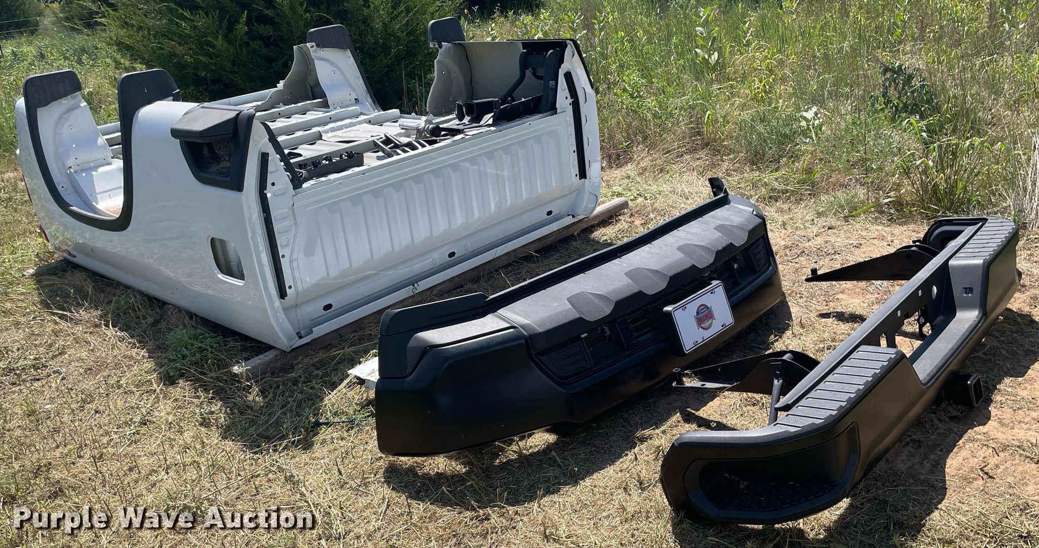Purple Wave is selling a used Automotive Parts or Acces. in Kansas. This item is a Chevrolet pickup truck bed with the following: Hardware, Tailgate, Rear bumper, Front bumper