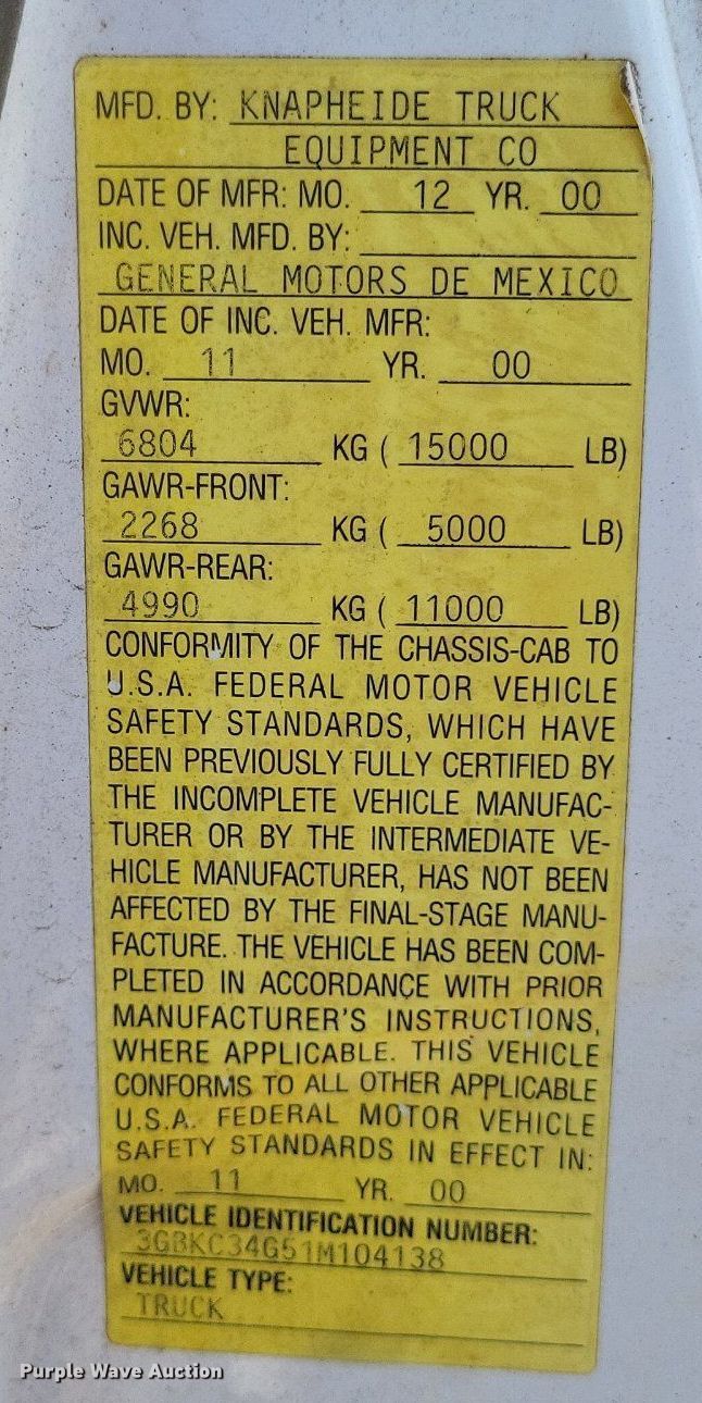 Purple Wave is selling a used 3/4 or 1 Ton Pickup or Van in Missouri. This item is a 2001 Chevrolet Silverado 3500HD dump bed pickup truck with the following: Miles: 57,530 on odometer, VIN: 3GBKC34G51M104138