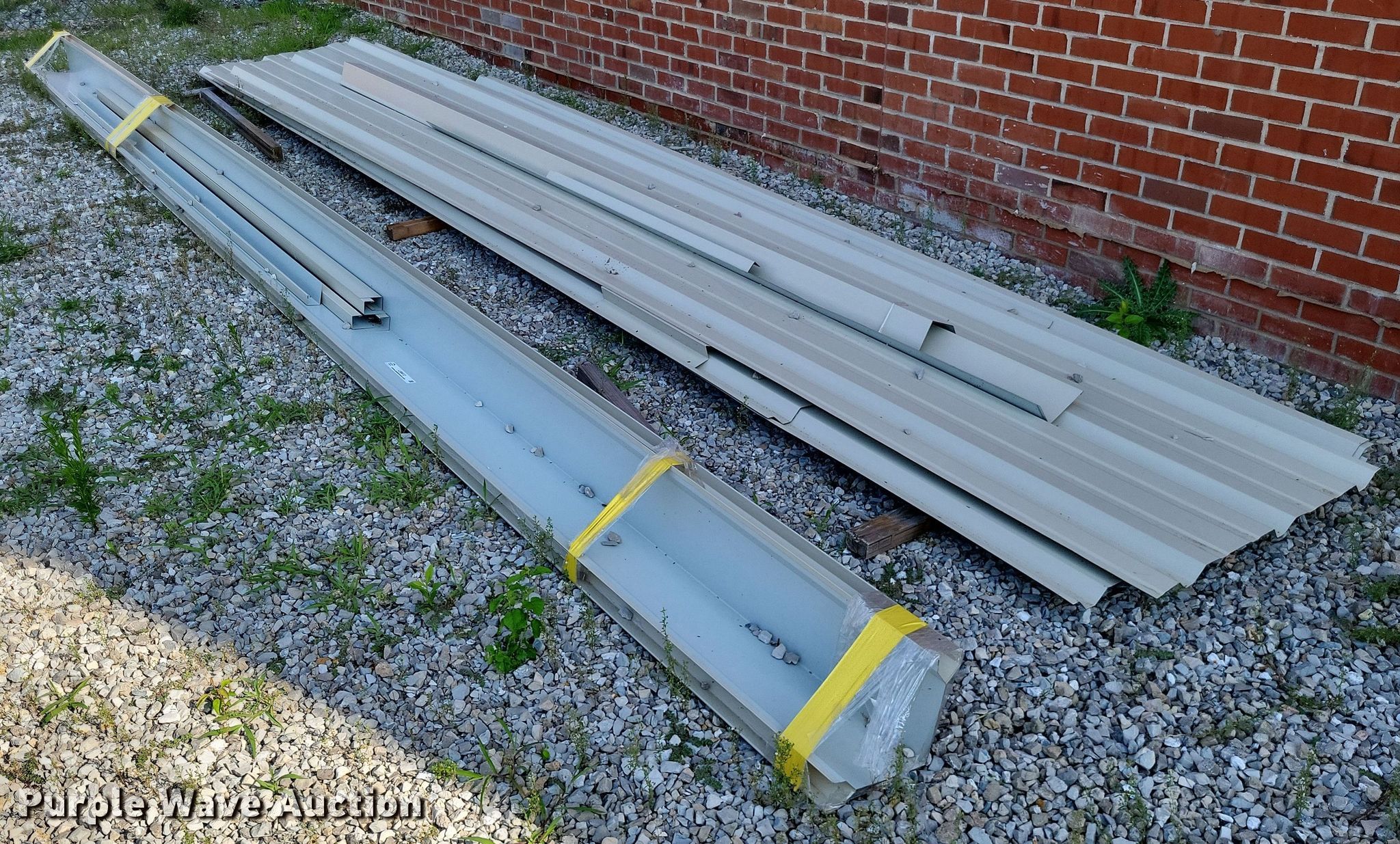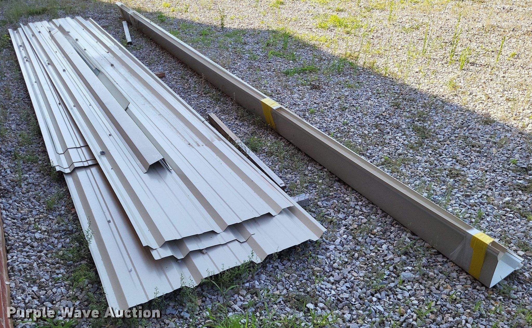 Purple Wave is selling a used Building Materials in Missouri. This item is a Approximately 6 sheets of metal siding/roofing with the following: Various lengths, Trim, Various lengths